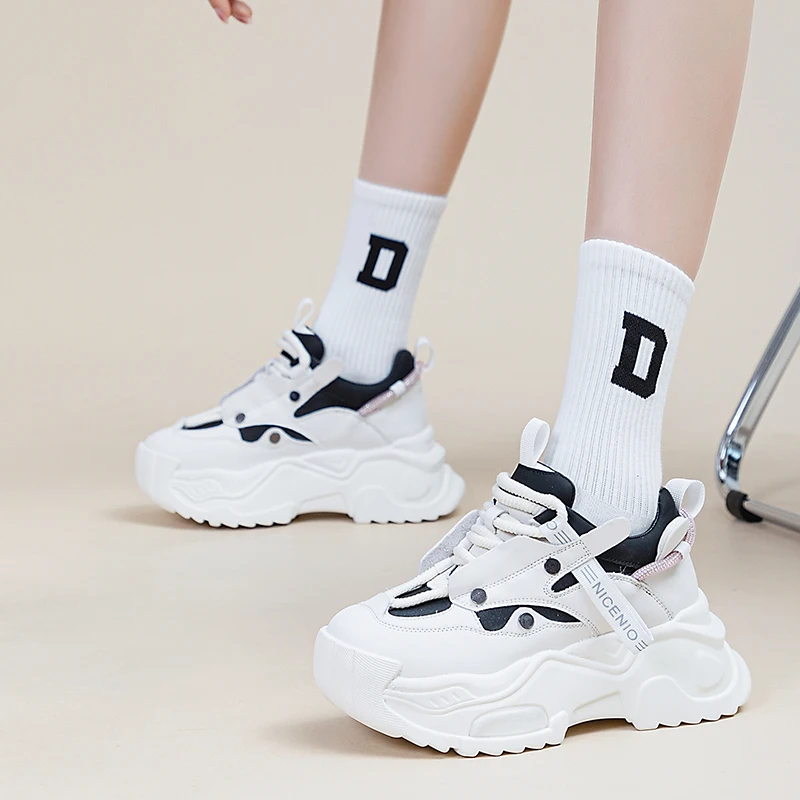 AUTUSPIN 6cm New Chunky Sneakers Shoes in Autumn Women Fashion Flats Platform Wedge Genuine Leather Fashion Vulcanized Shoes