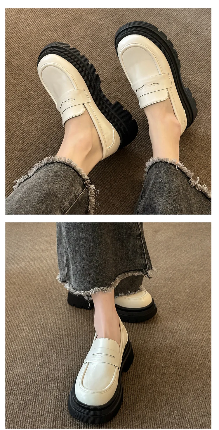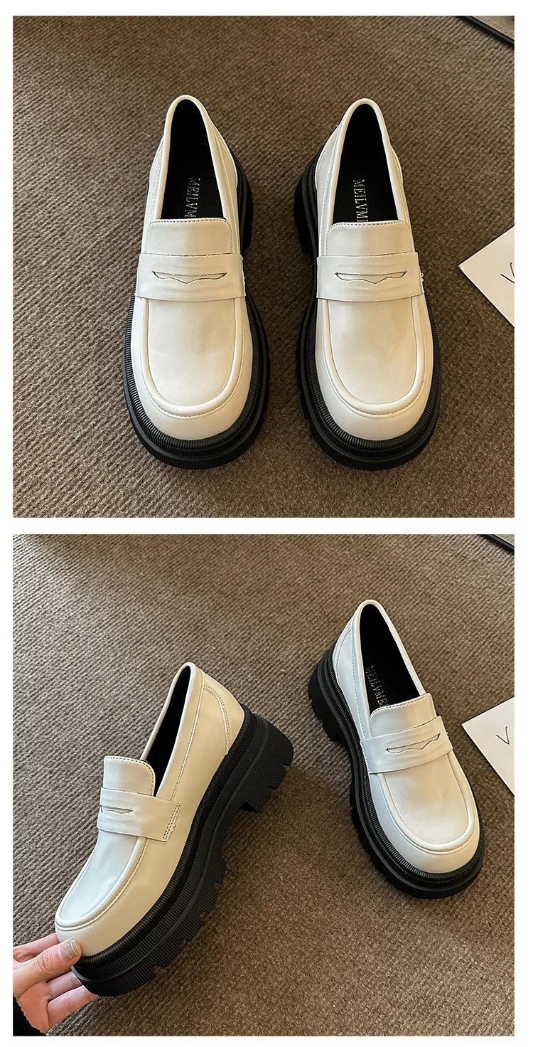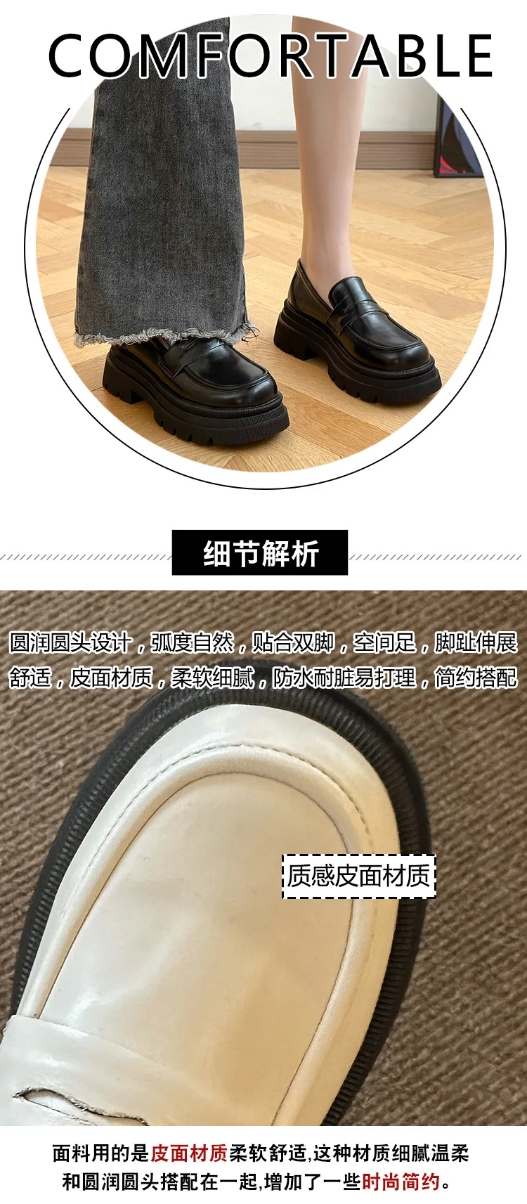 Black Shallow Mouth Casual Woman Shoe Slip-on Autumn Oxfords Female Footwear Loafers with Fur British Style Platform Round Toe
