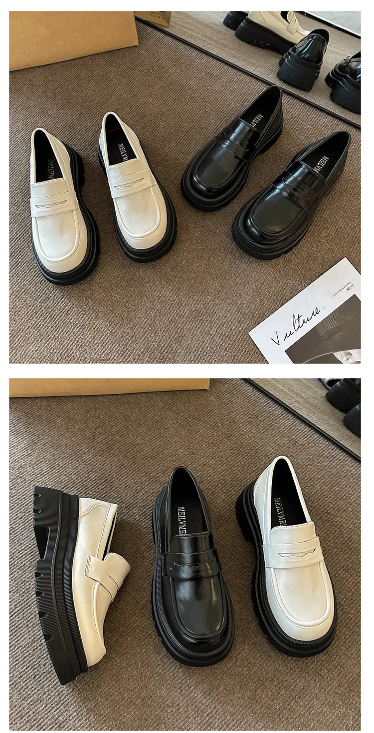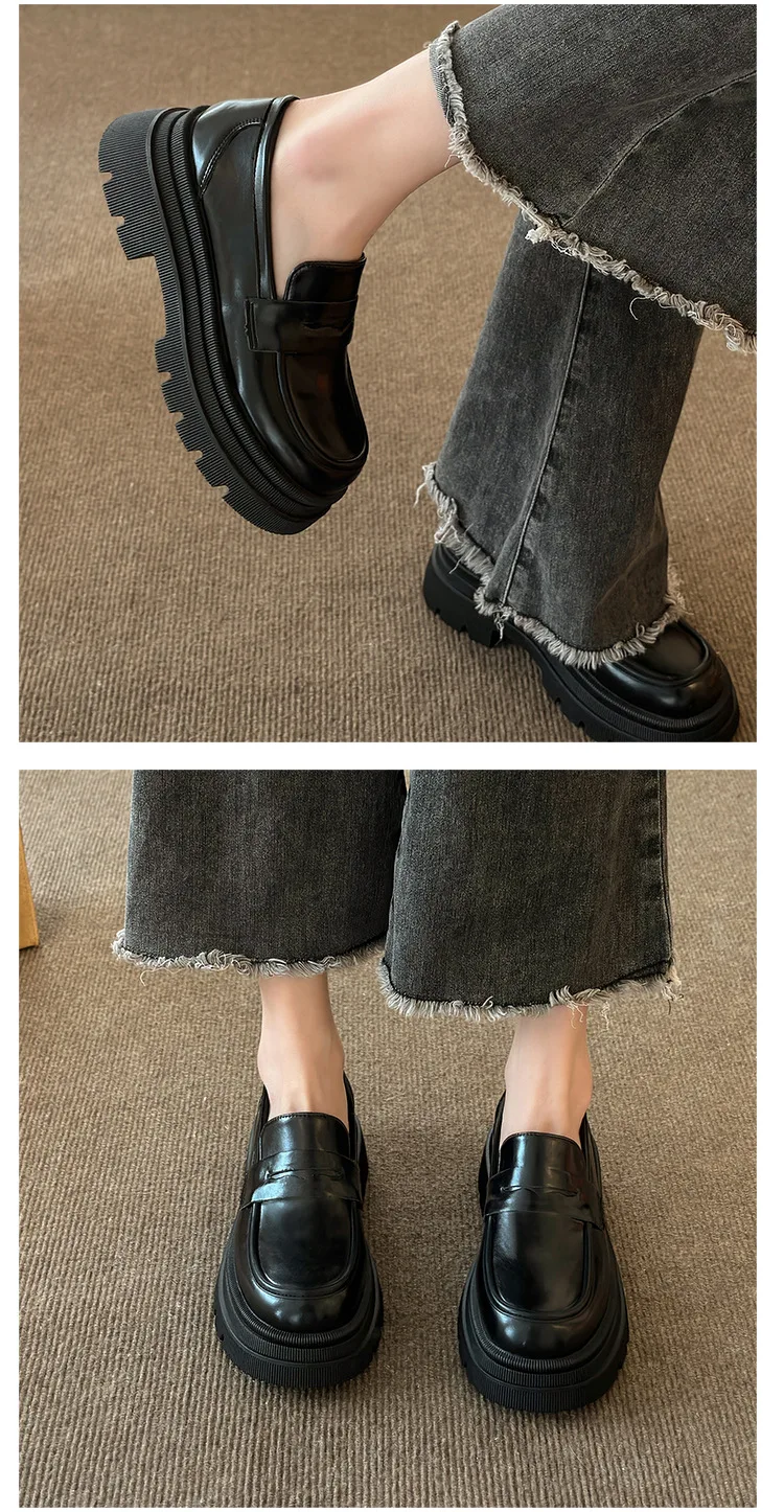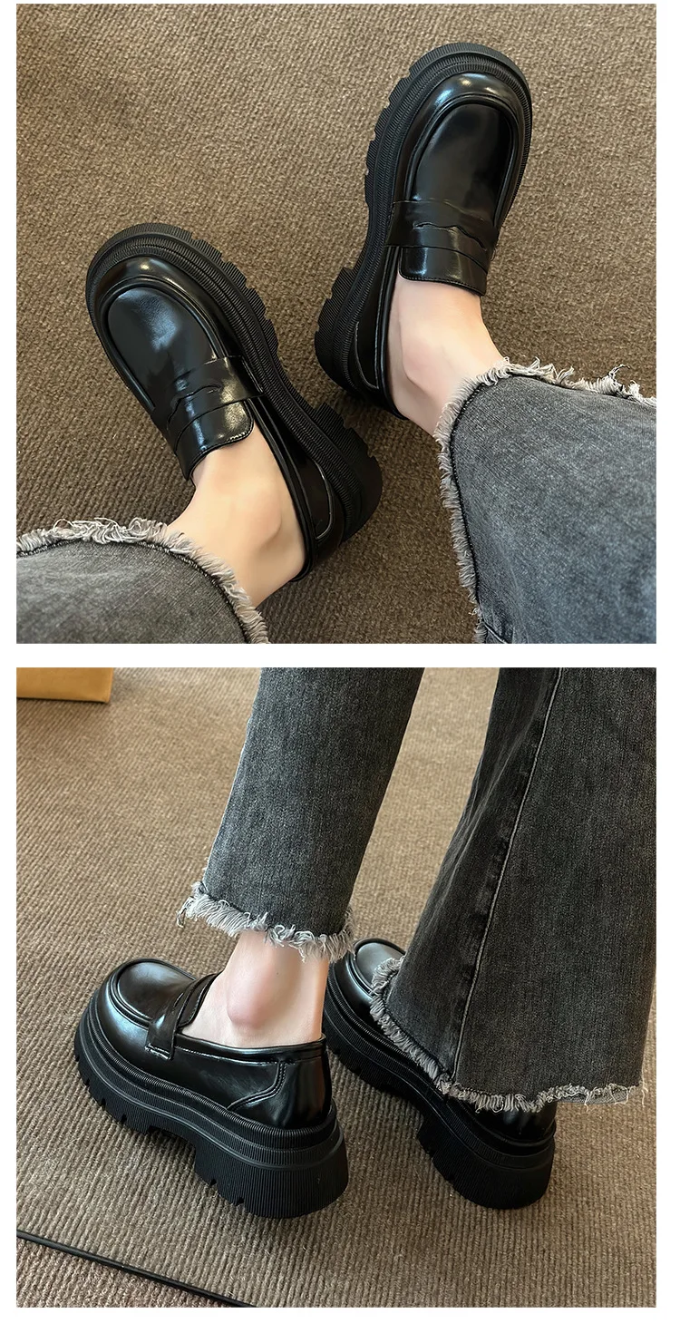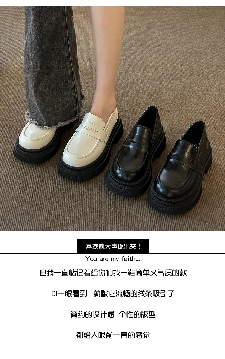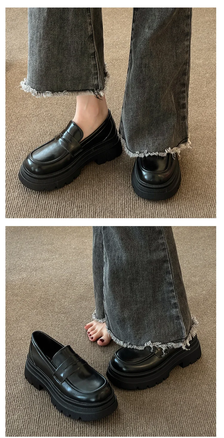 Black Shallow Mouth Casual Woman Shoe Slip-on Autumn Oxfords Female Footwear Loafers with Fur British Style Platform Round Toe