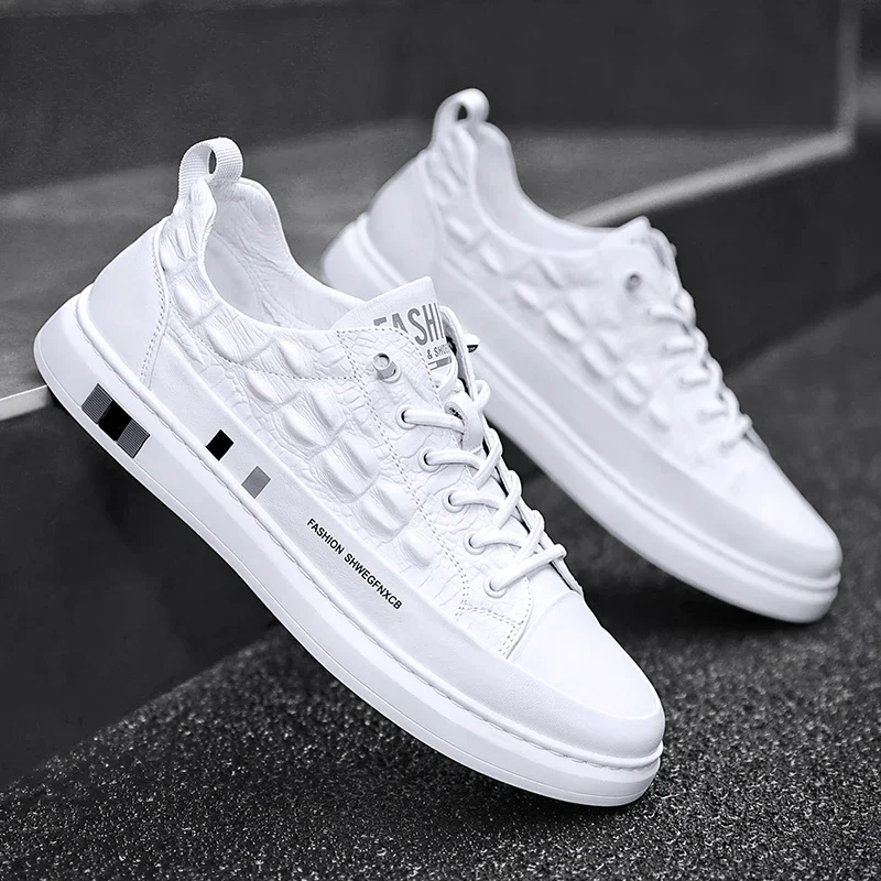 Board Shoes, Men's Crocodile Patterned Leather Shoes, Men's Casual Sports Shoes, Soft Soles, Soft Surfaces, Non Slip