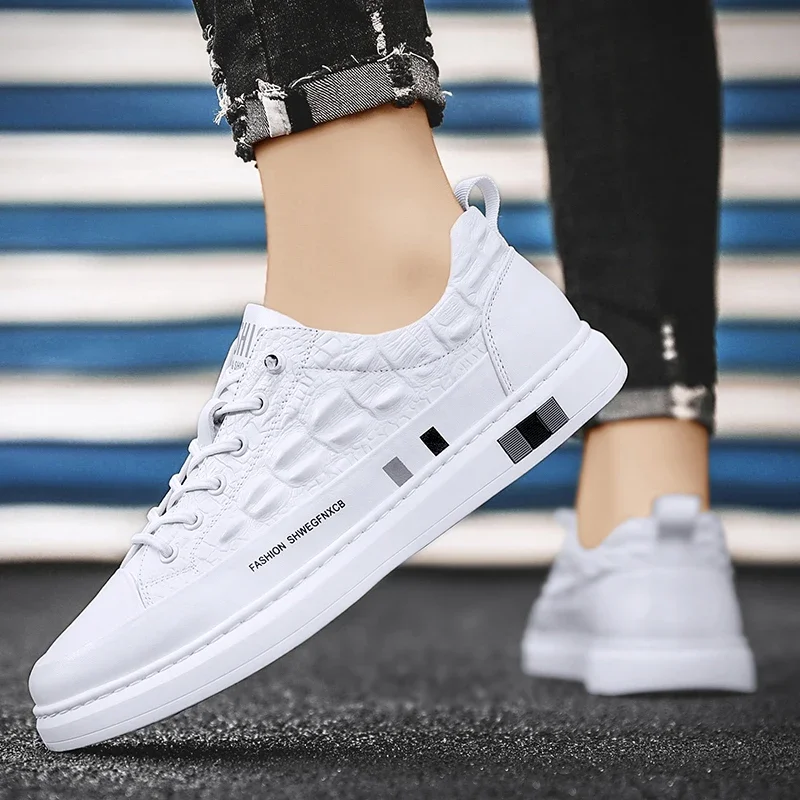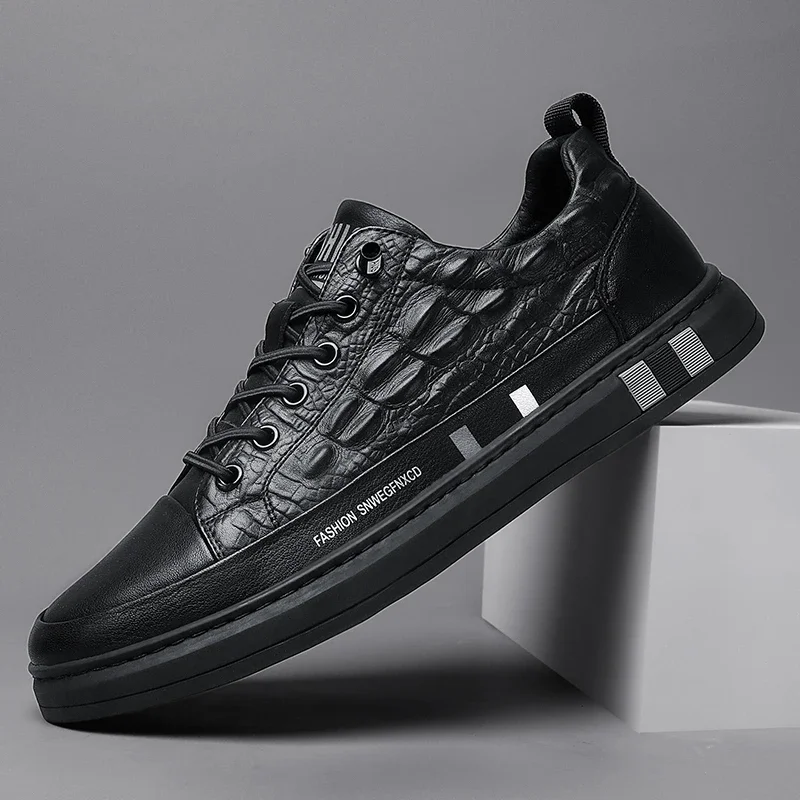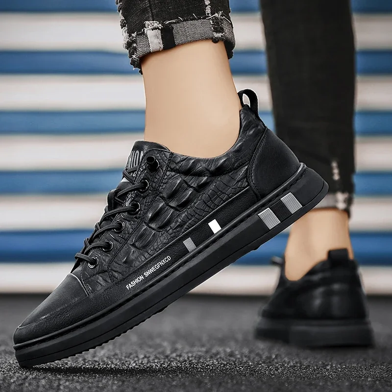 Board Shoes, Men's Crocodile Patterned Leather Shoes, Men's Casual Sports Shoes, Soft Soles, Soft Surfaces, Non Slip