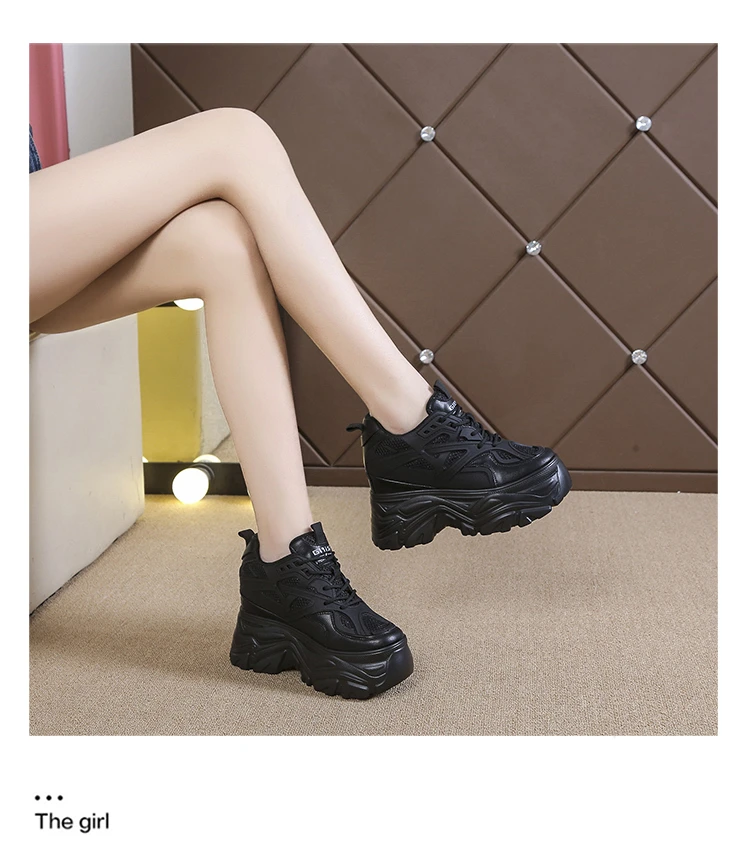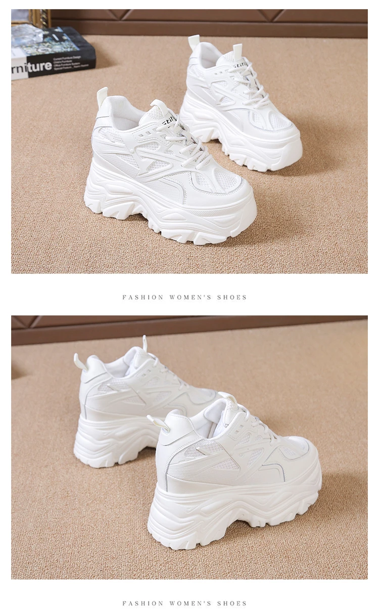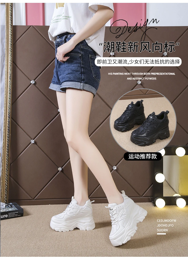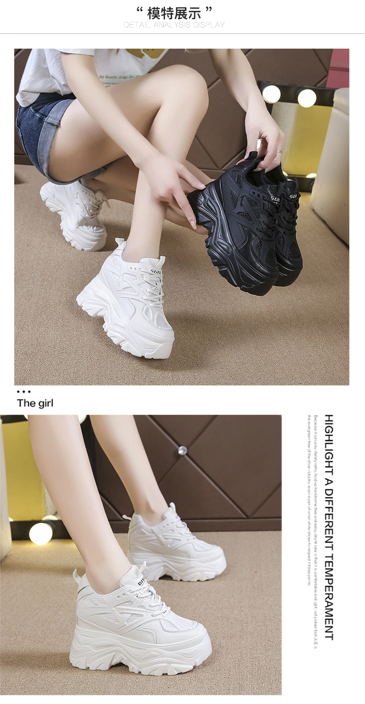 Brand 2022 Summer Breathable Mesh Sneakers Hidden Increasing Sport Shoes Woman Wedge Casual Chunky Shoes High Platform Shoes 9CM