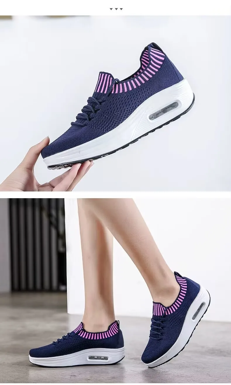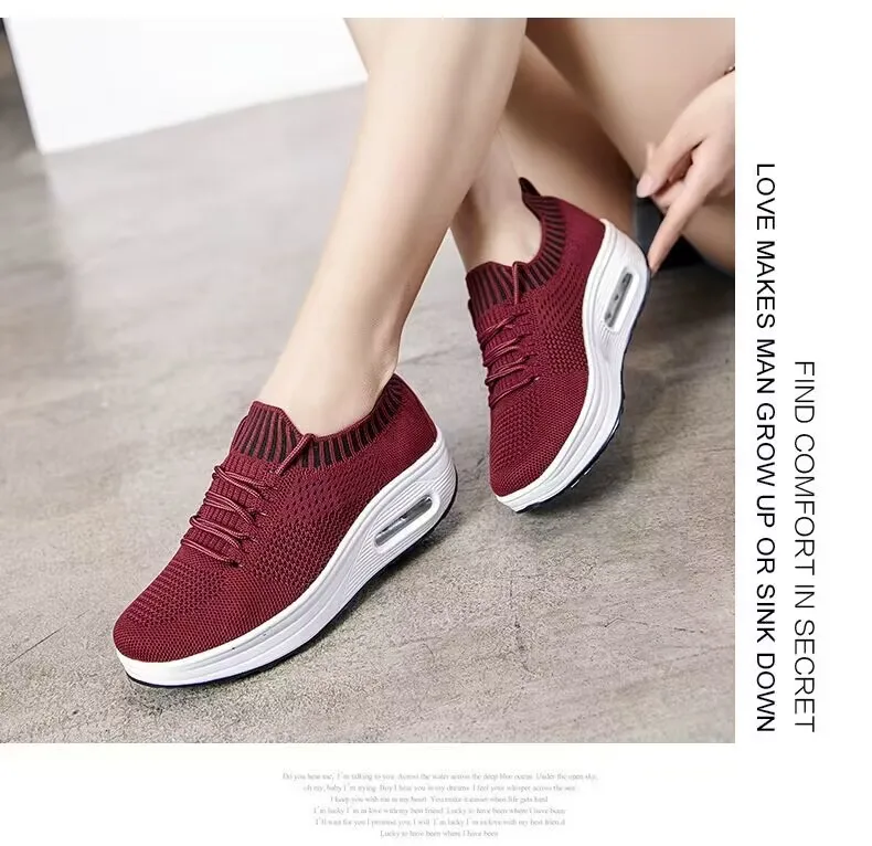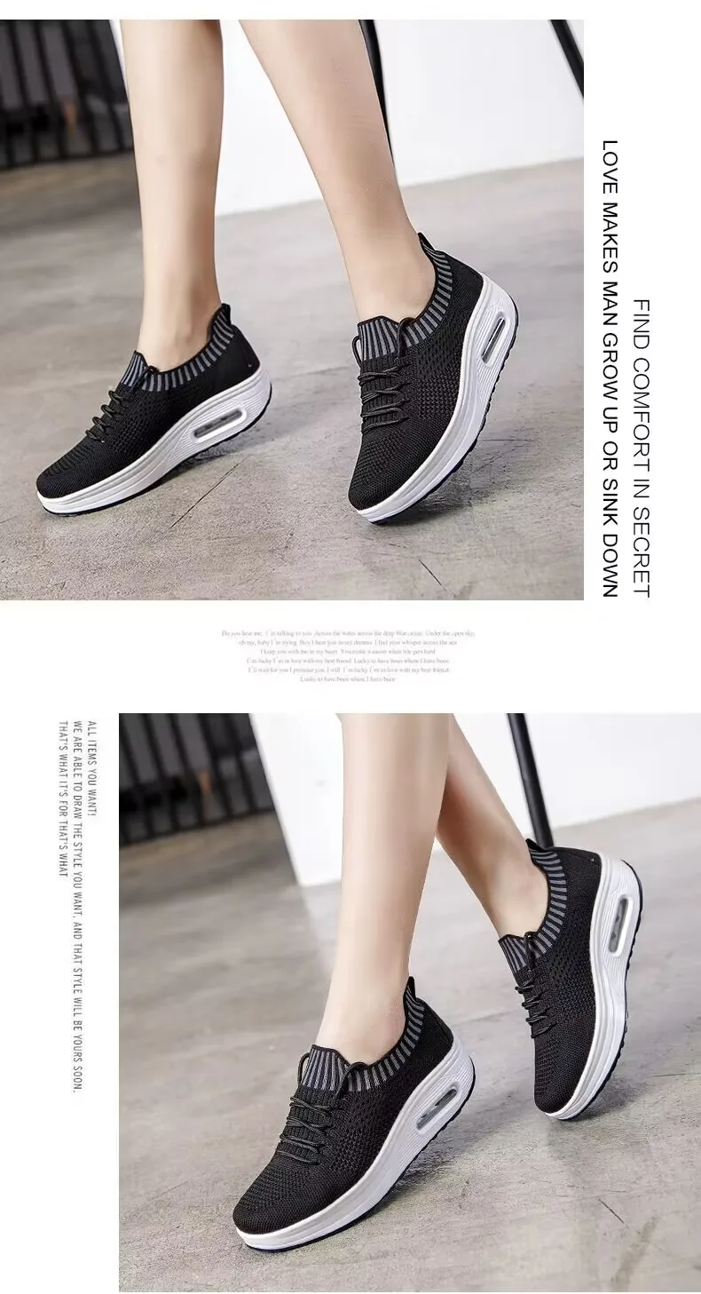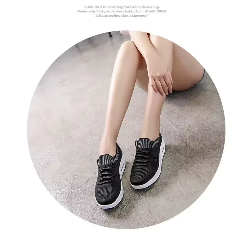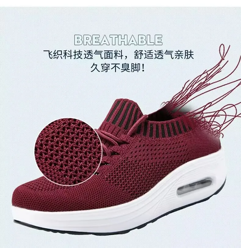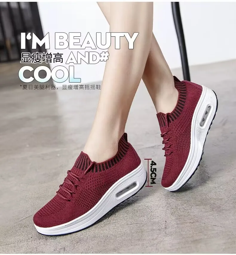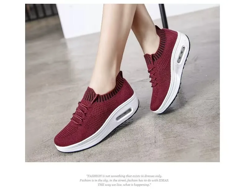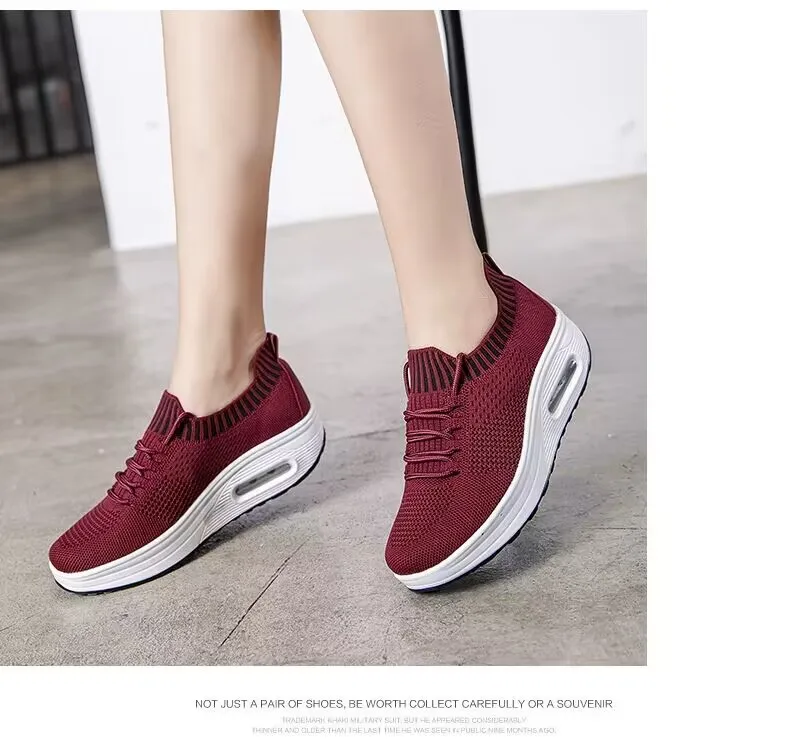 Breathable Knit Casual Shoes Women's Lace Up Platform Sneakers Slim Wedges Outdoor Walk Shoes Female Height Increase Swing Shoes