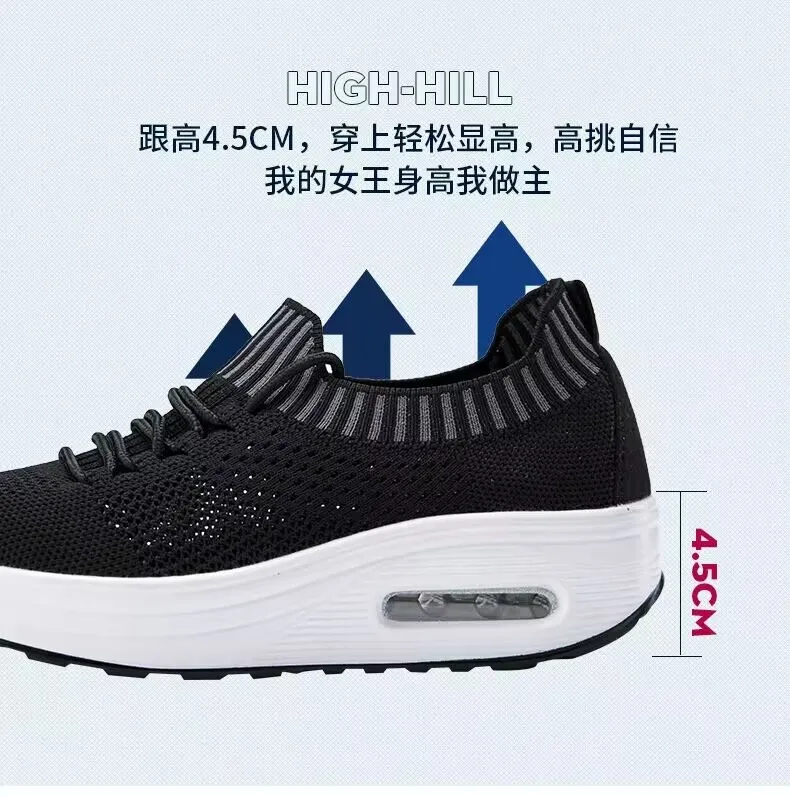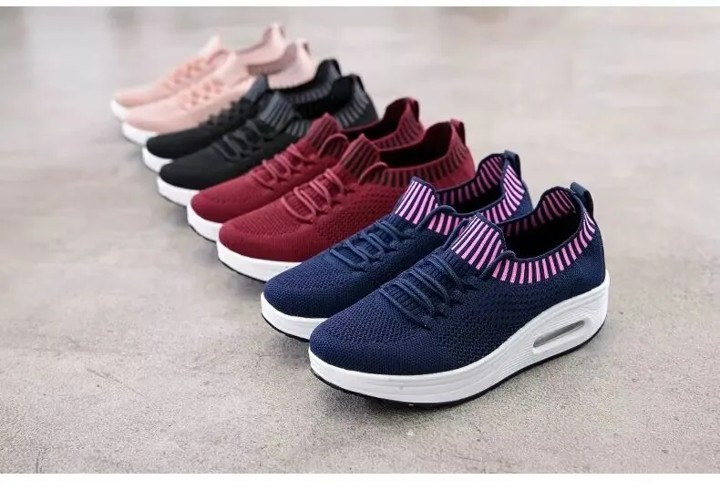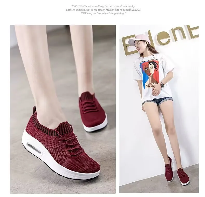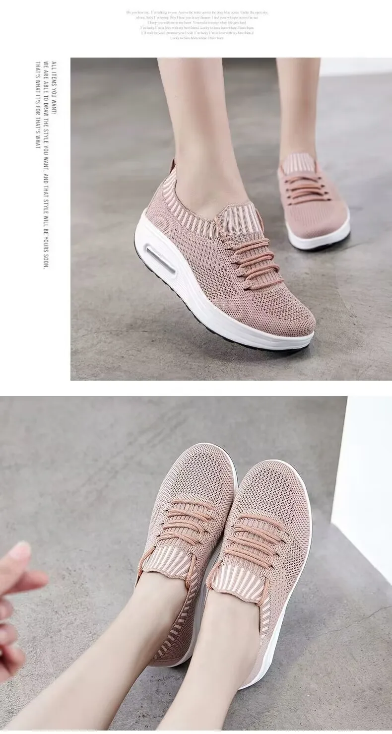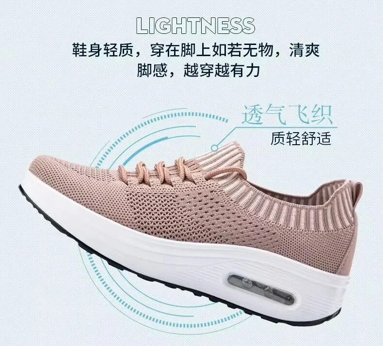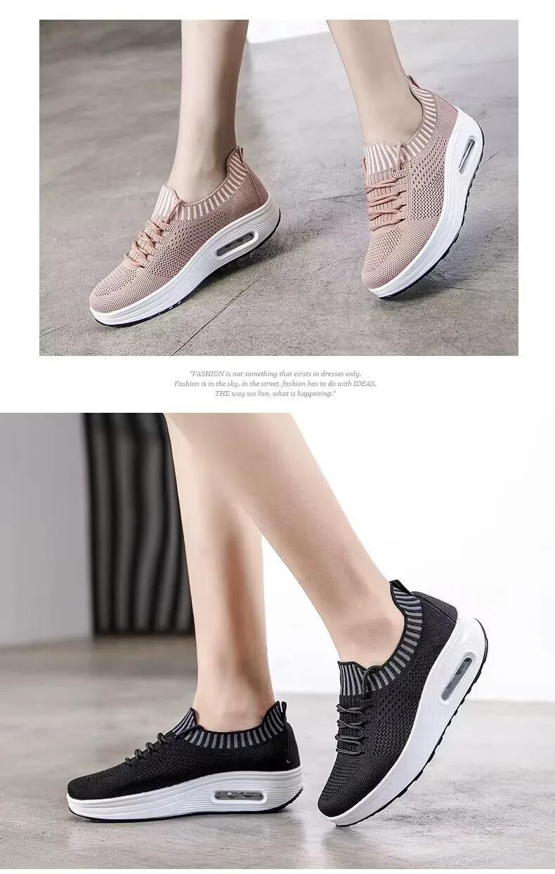 Breathable Knit Casual Shoes Women's Lace Up Platform Sneakers Slim Wedges Outdoor Walk Shoes Female Height Increase Swing Shoes
