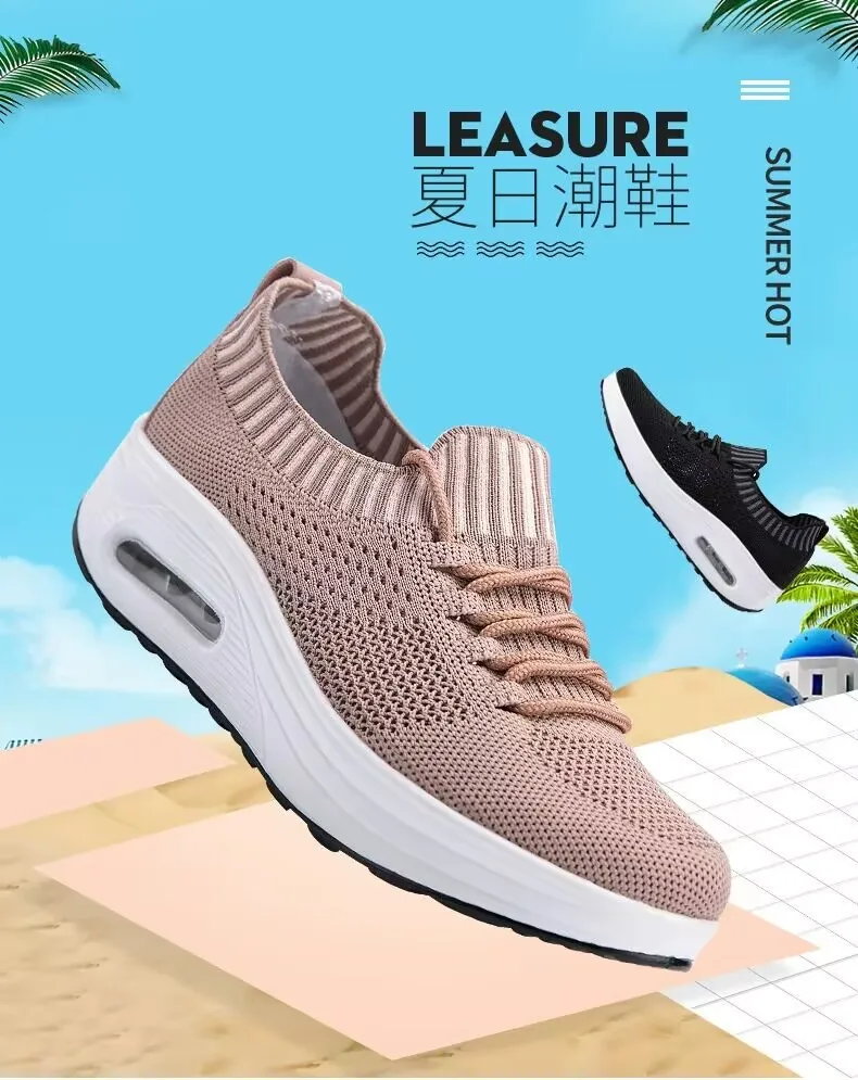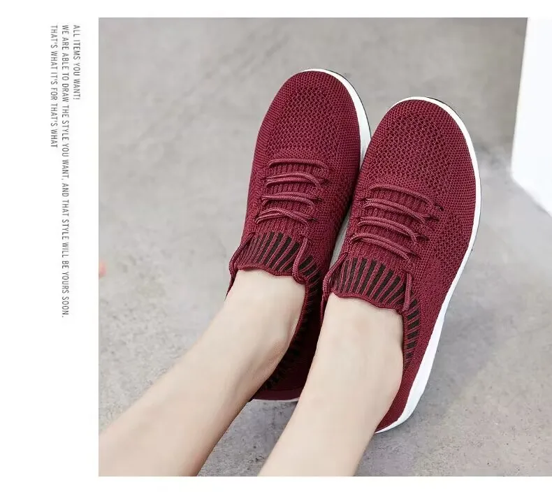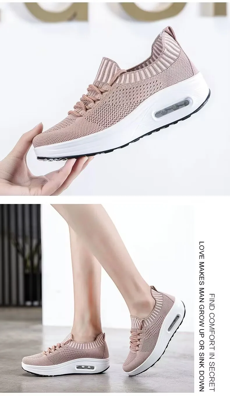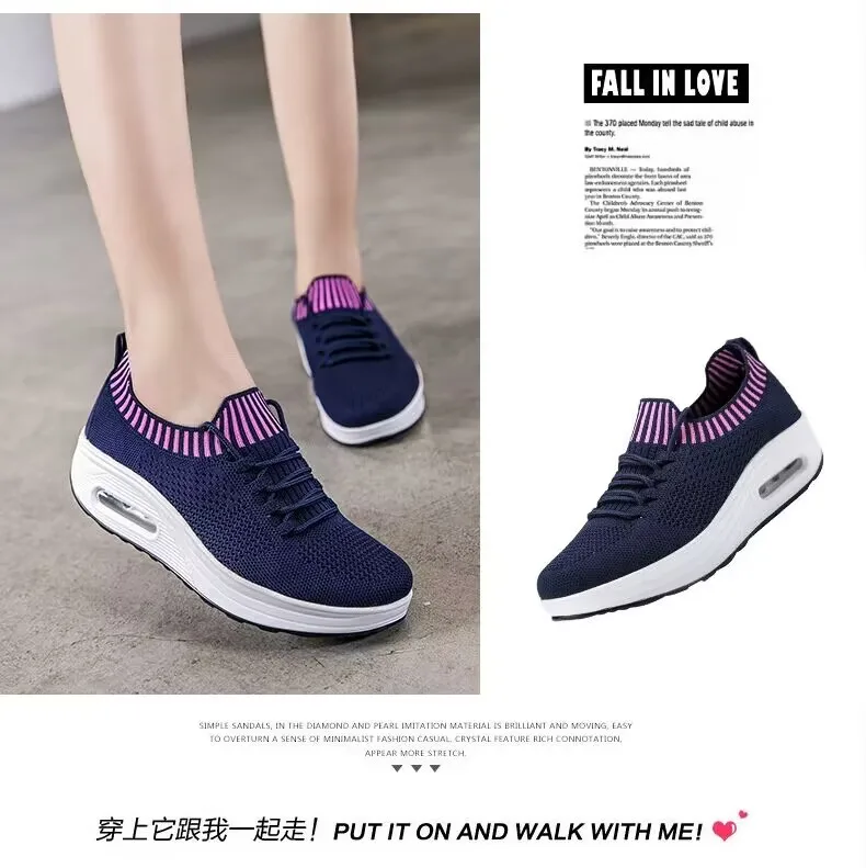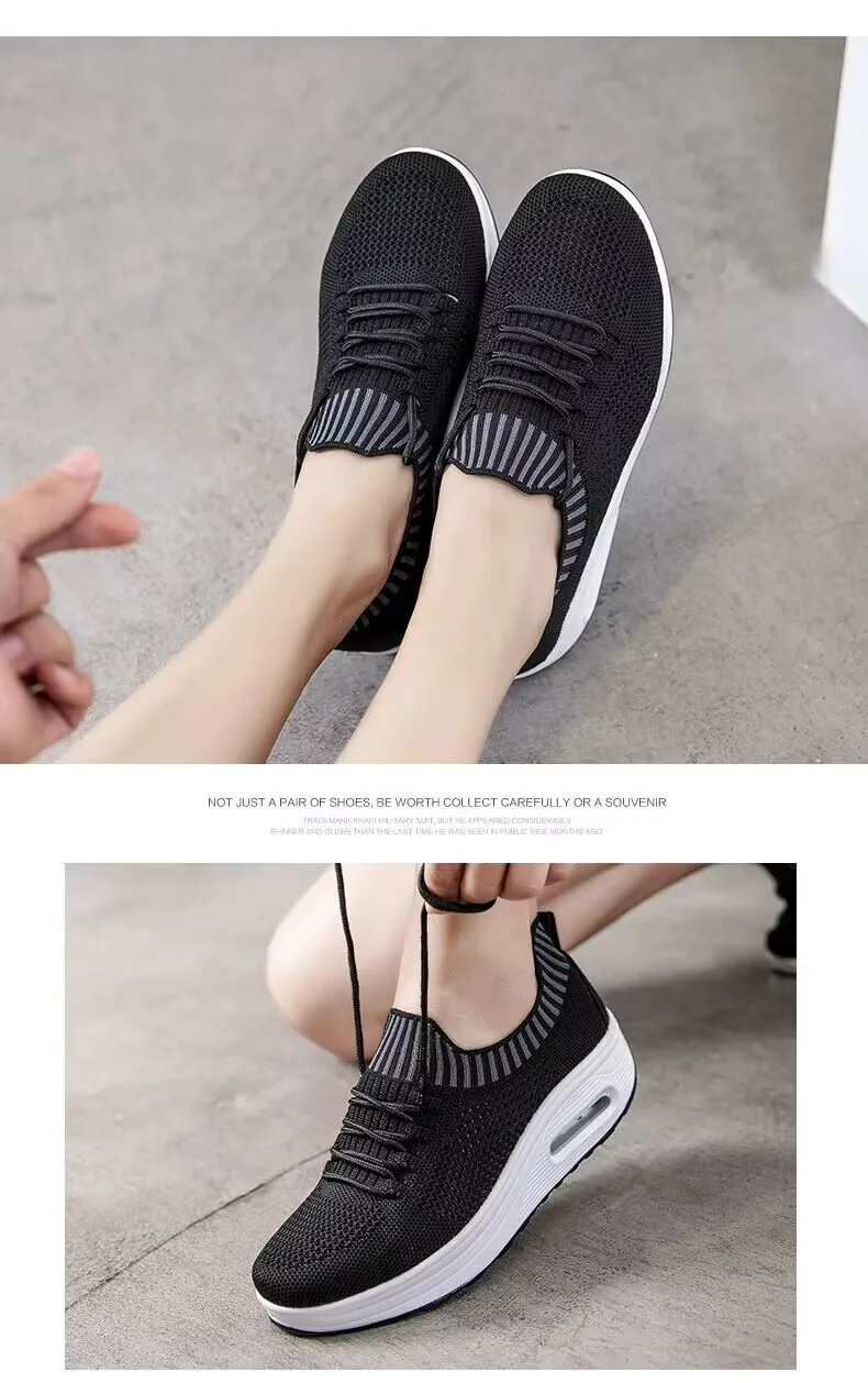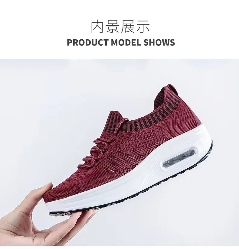 Breathable Knit Casual Shoes Women's Lace Up Platform Sneakers Slim Wedges Outdoor Walk Shoes Female Height Increase Swing Shoes