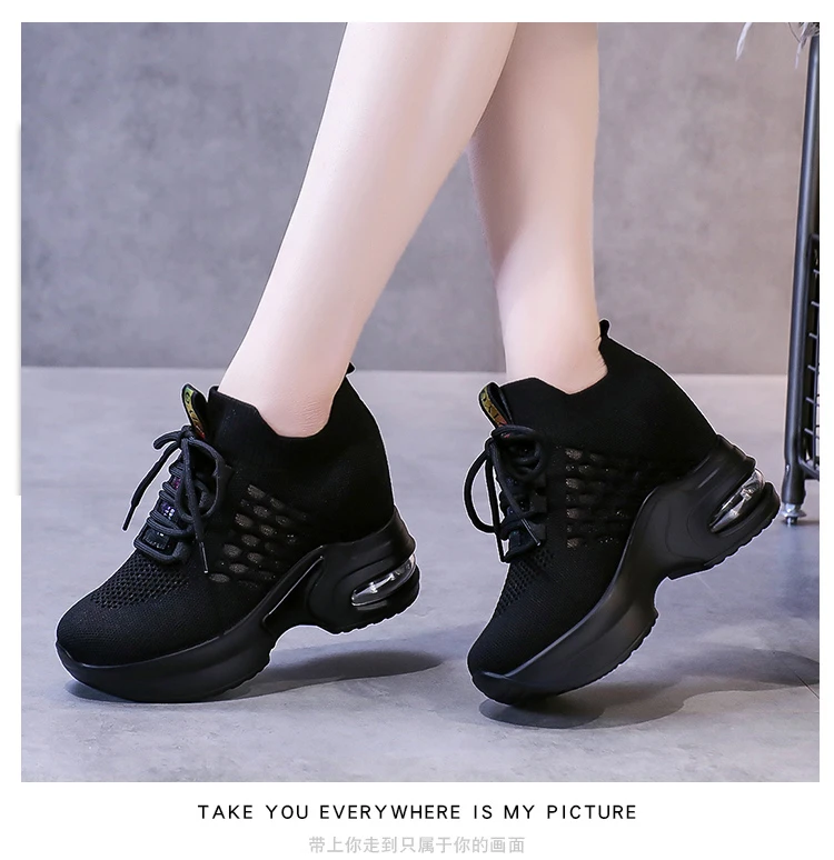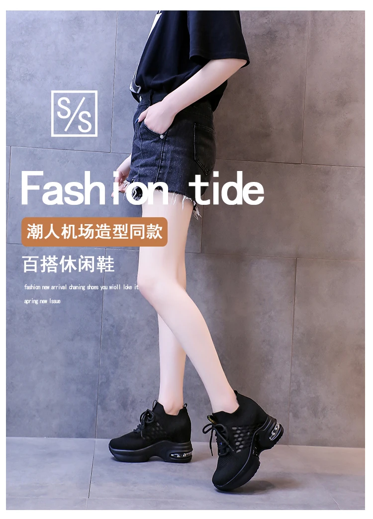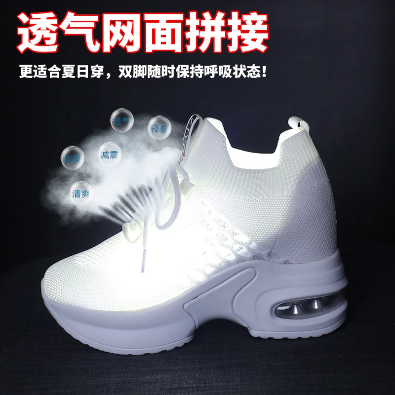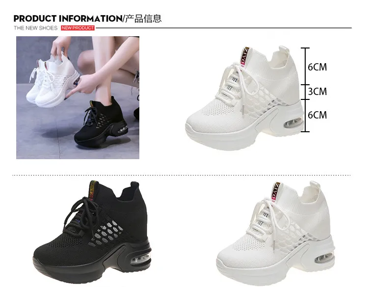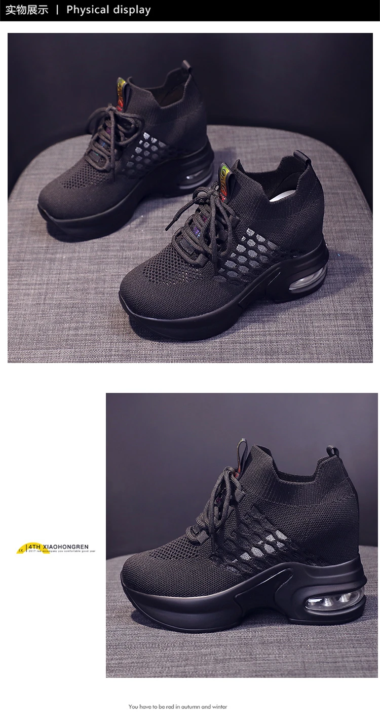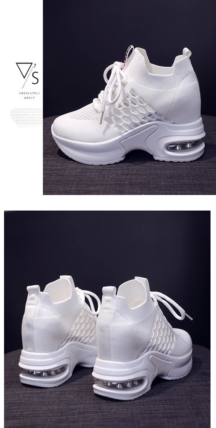 Breathable Mesh Sneakers Summer 9CM Hollow Out Sport White Shoes Woman Wedge Casual Chunky Shoes High Platform Dad Shoe Mujer