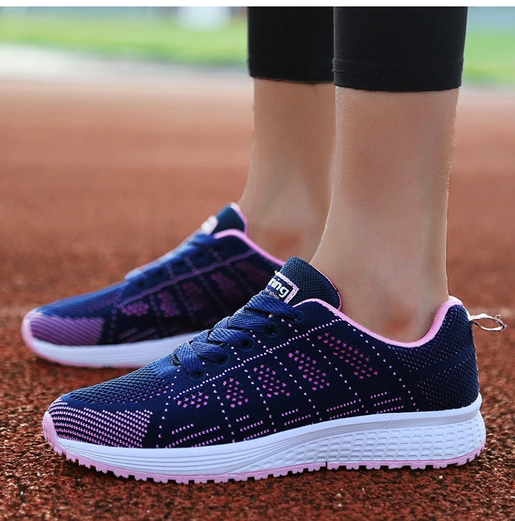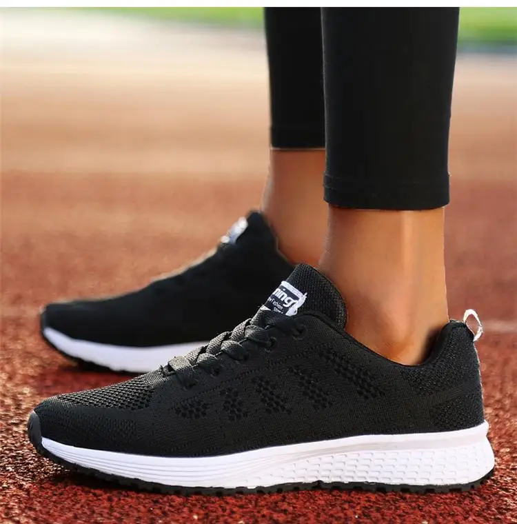 Breathable Sneakers For Women Fashion 2024 New Solid Color Flat Women Sneakers Mesh Fabric Lace Up Ladies Shoes Female Footwear