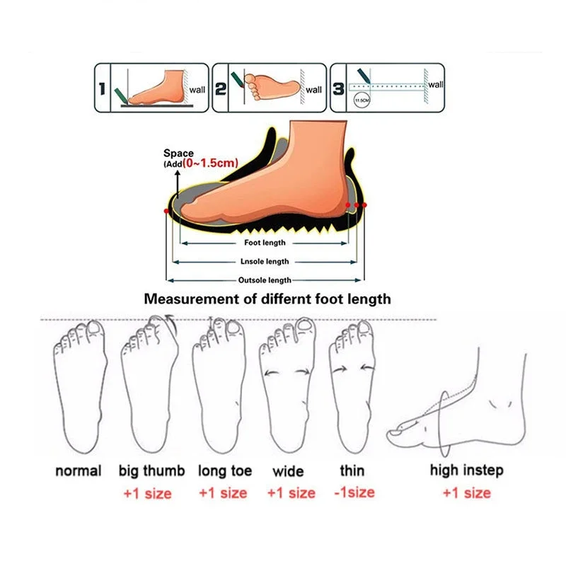 Please note 1. Choose the size according to your foot length (don't/don't choose the size according to the regular size in your country!!! 2. If your feet are a bit wide or the instep is a bit thick, it is better to choose a size