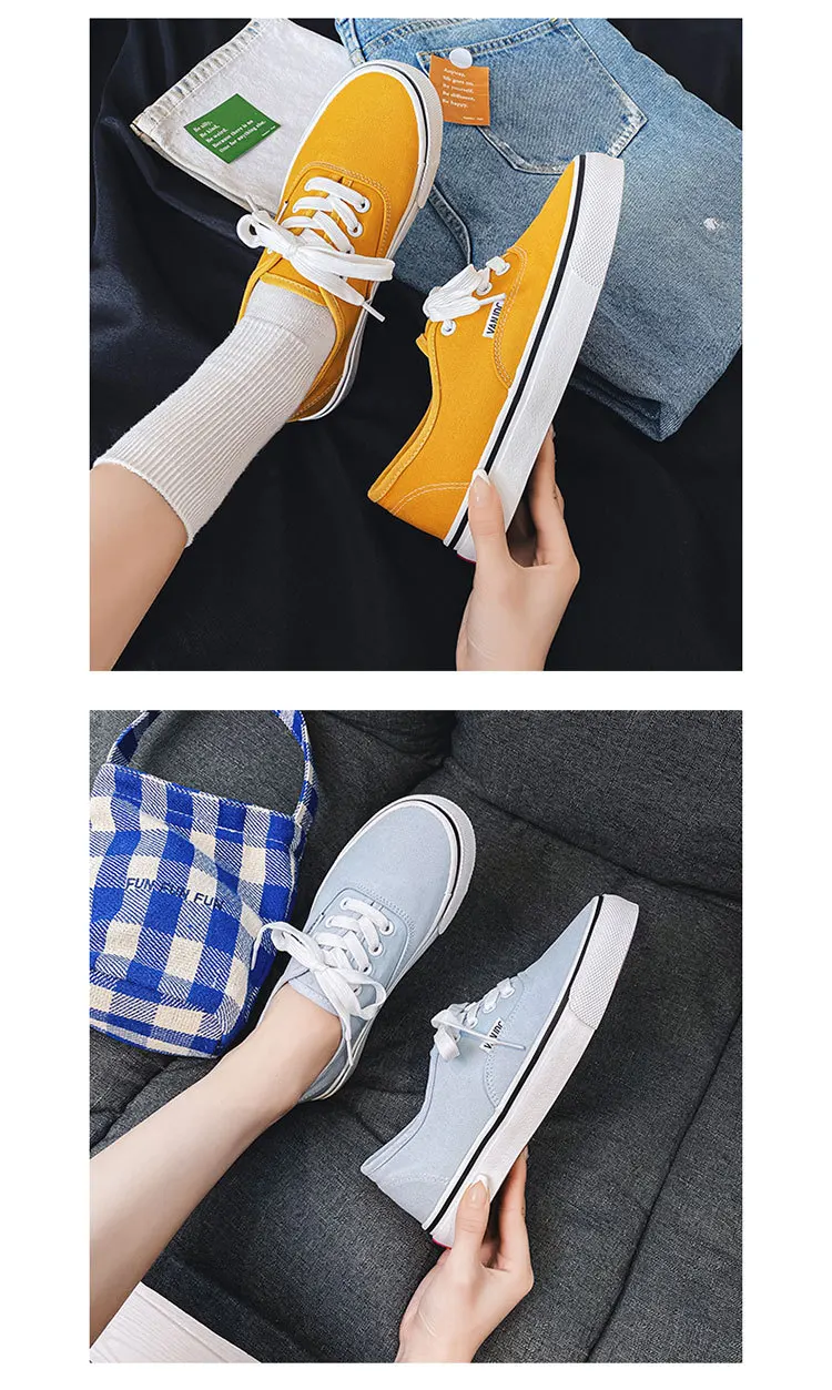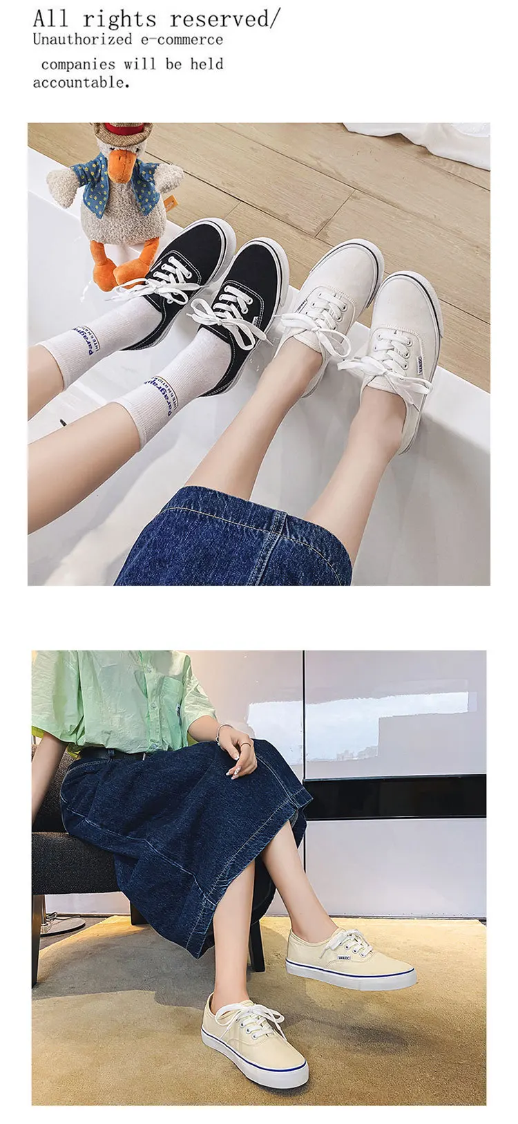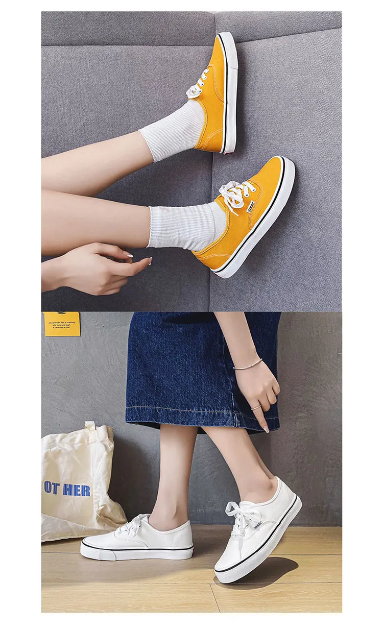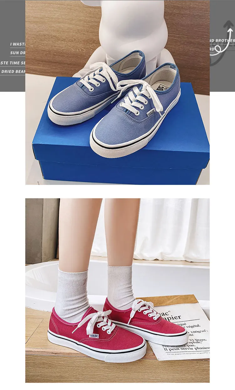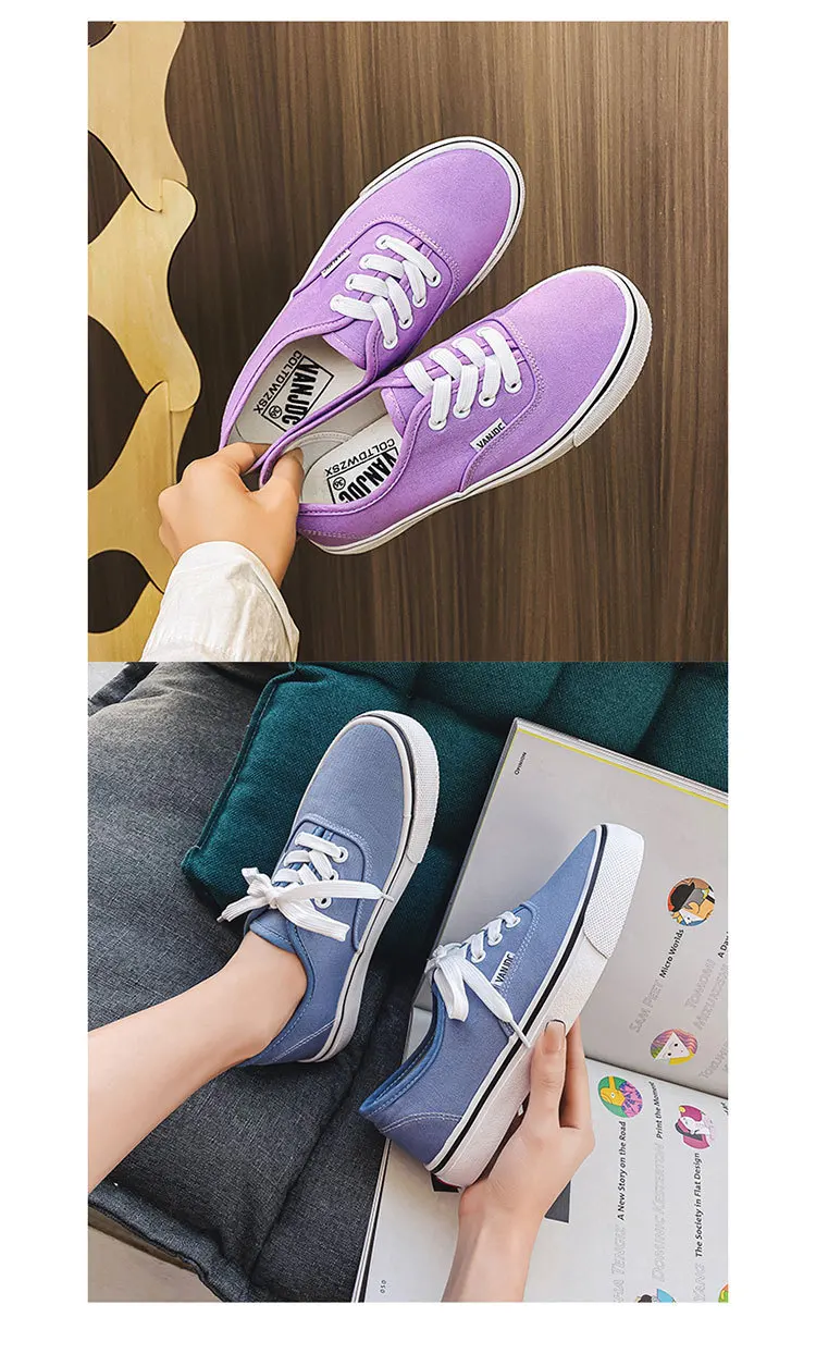 Casual Flats Canvas Sneakers Women Outdoor Solid Color Shallow Sports Shoes Tennis Female Streetwear Lace Up Vulcanize Shoes