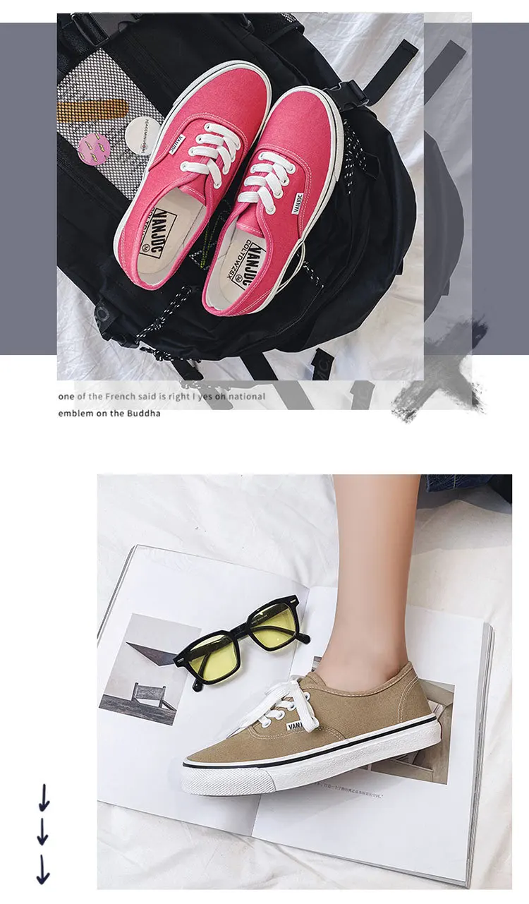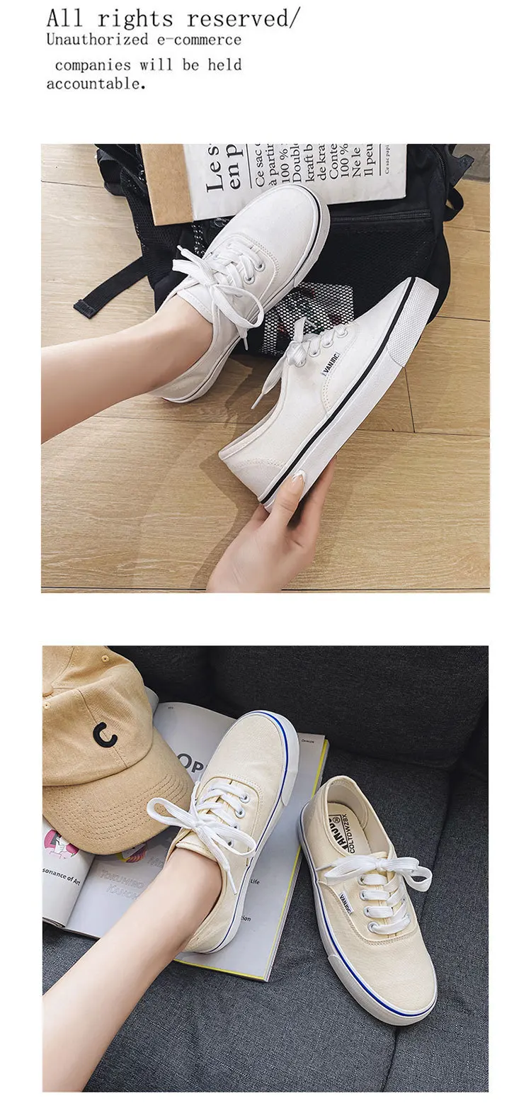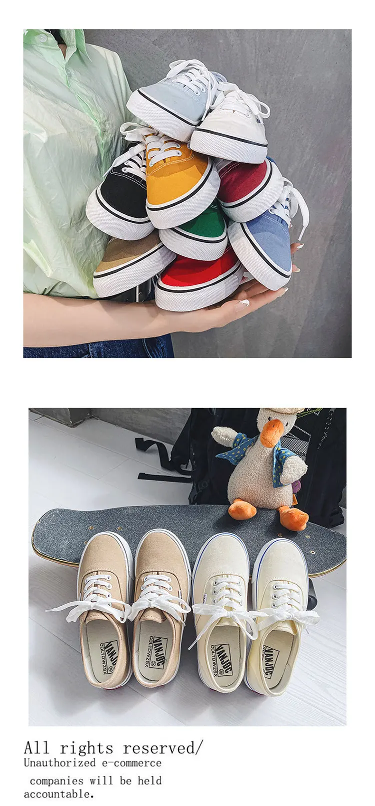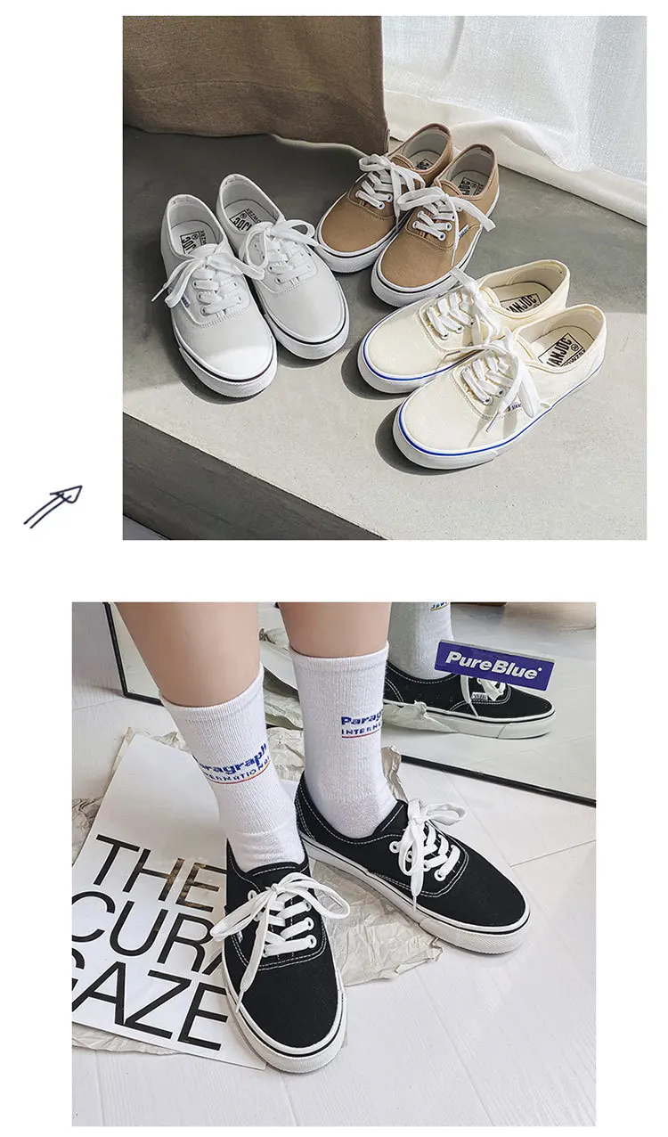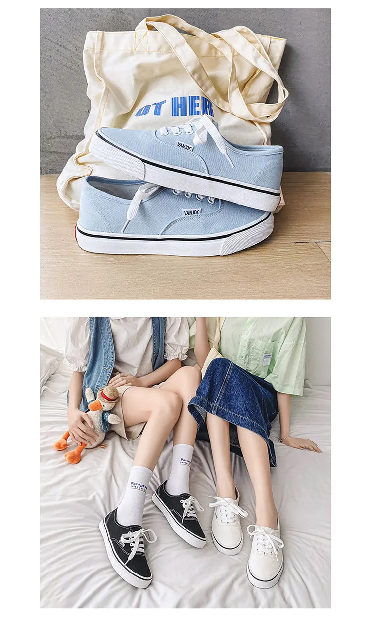 Casual Flats Canvas Sneakers Women Outdoor Solid Color Shallow Sports Shoes Tennis Female Streetwear Lace Up Vulcanize Shoes