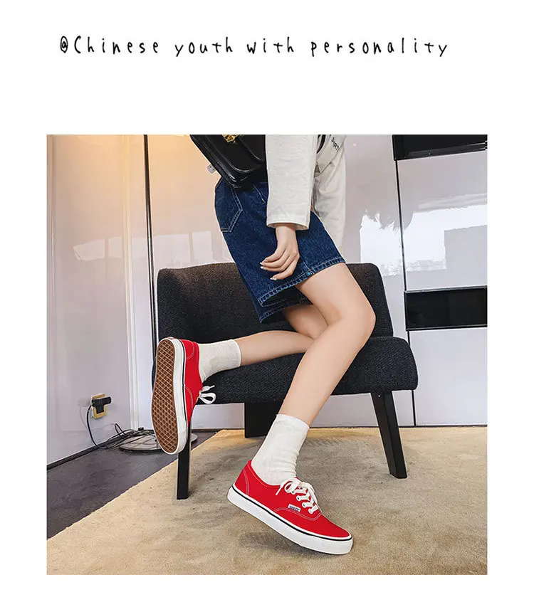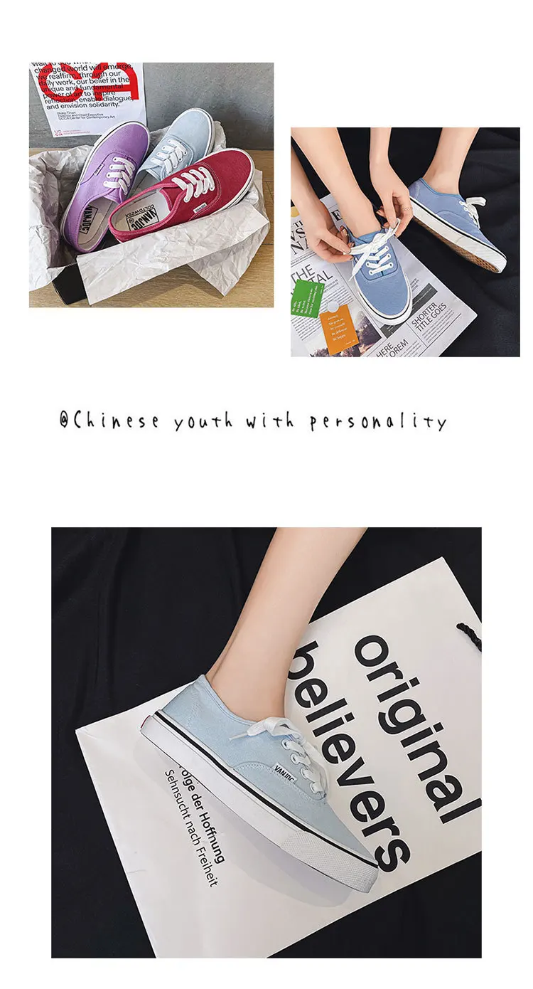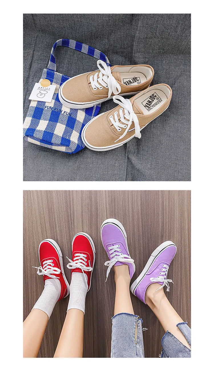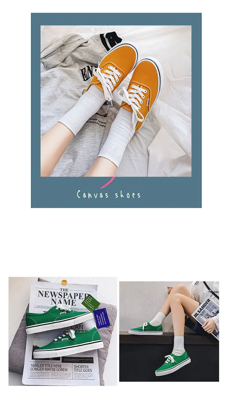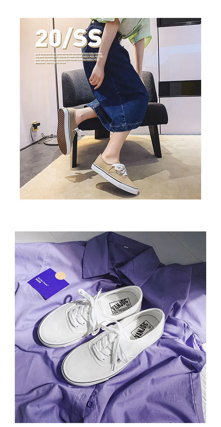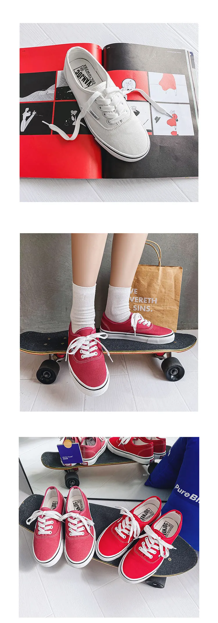 Casual Flats Canvas Sneakers Women Outdoor Solid Color Shallow Sports Shoes Tennis Female Streetwear Lace Up Vulcanize Shoes