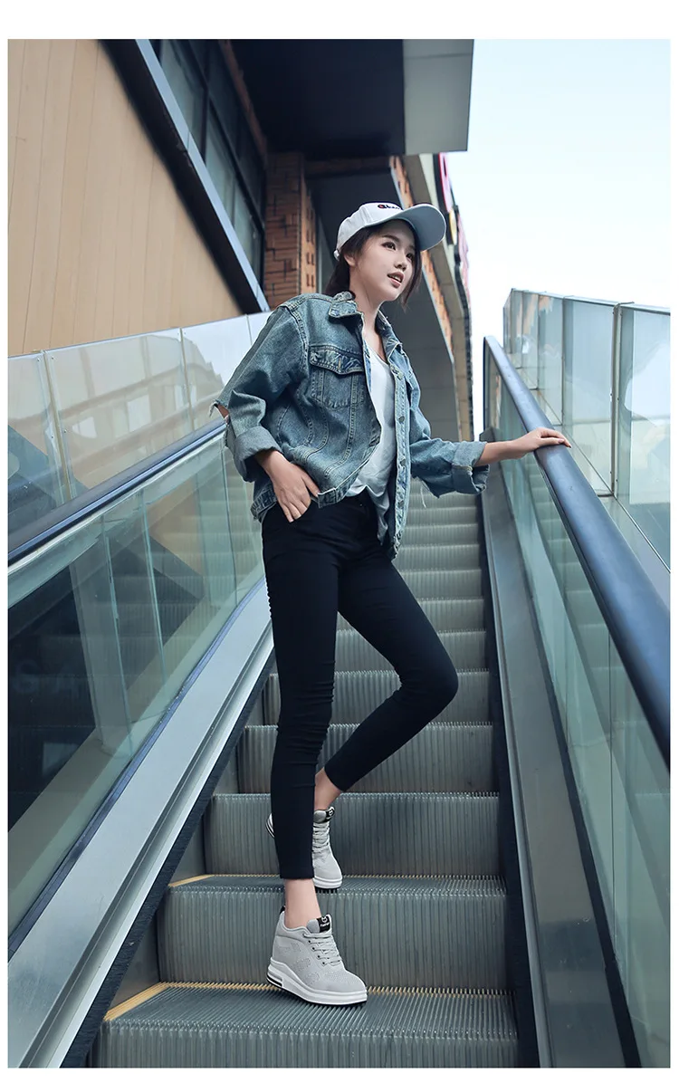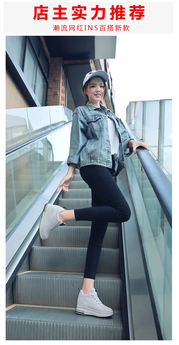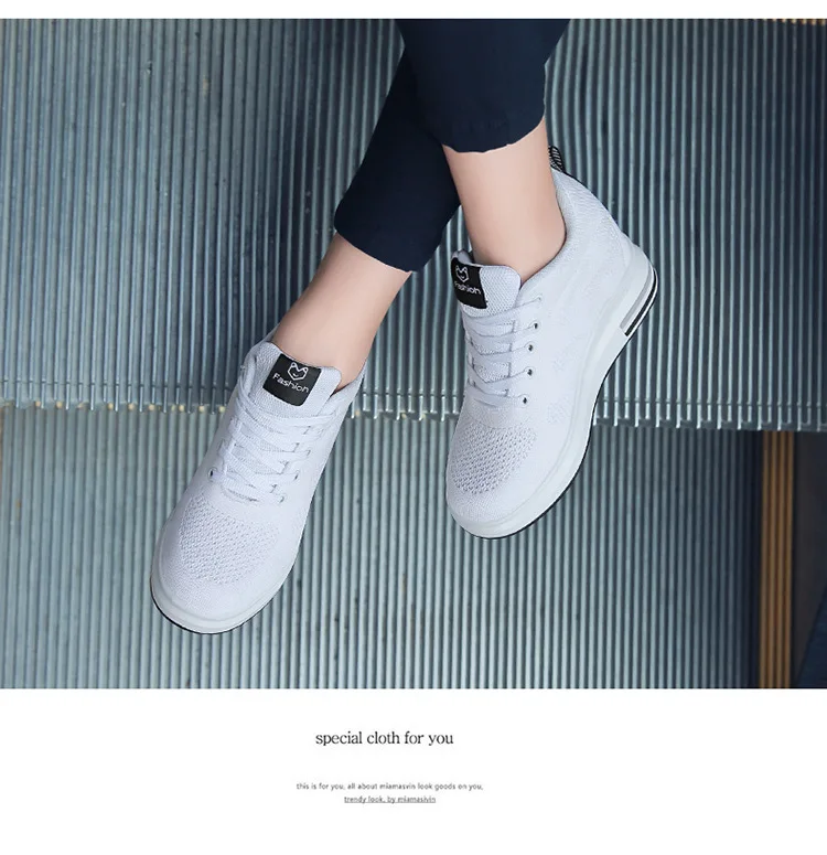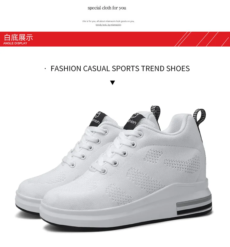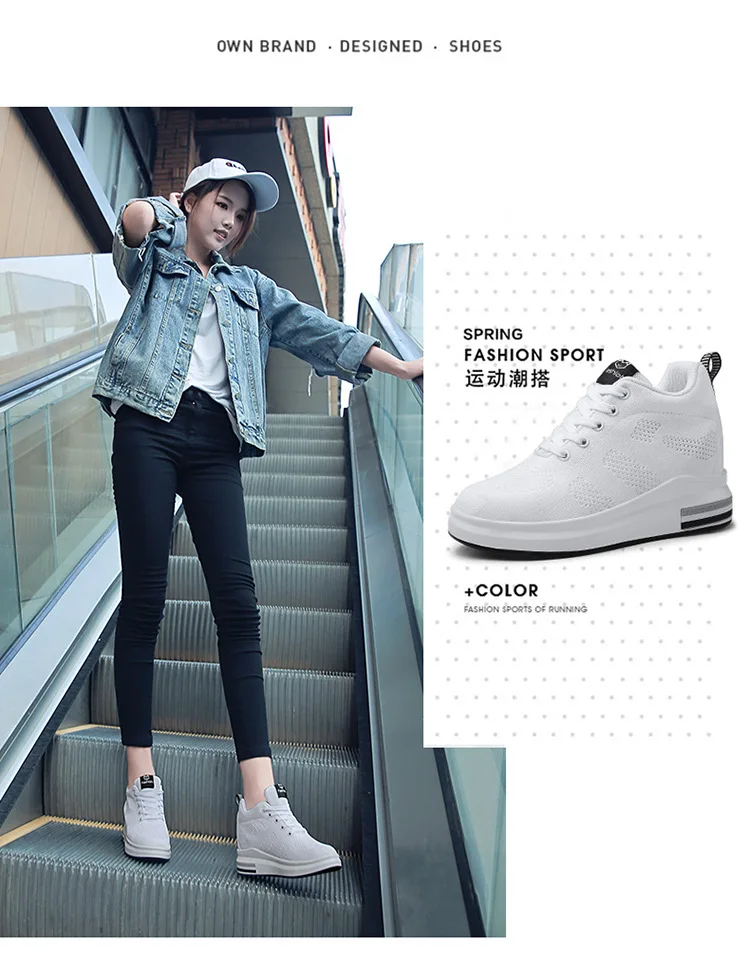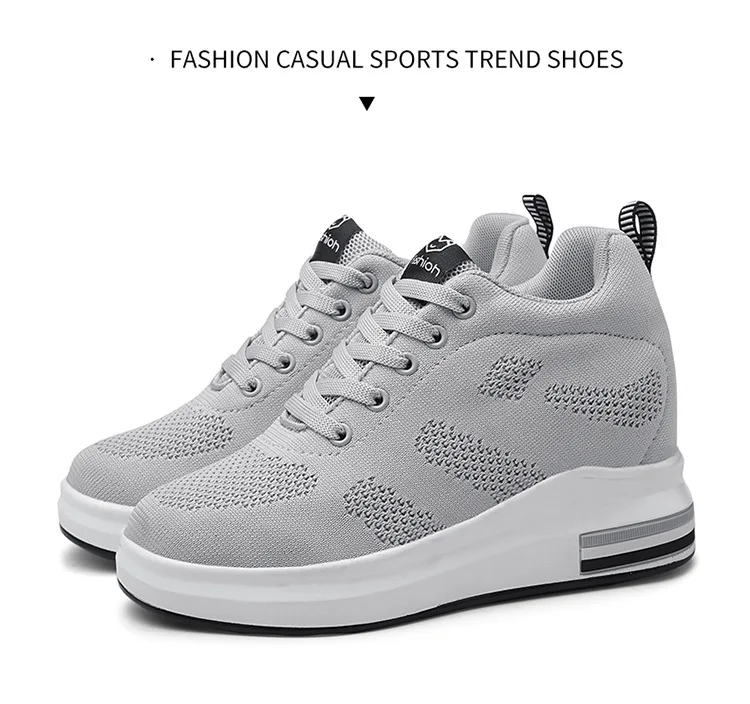 Casual Increase Women Shoes Mesh Comfortable Breathable Wedge Heels Fashion Contracted Lace Up Running Sneakers Tênis Branco