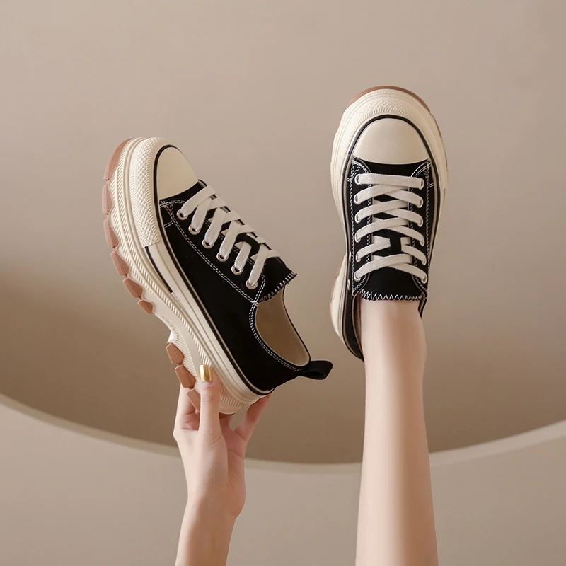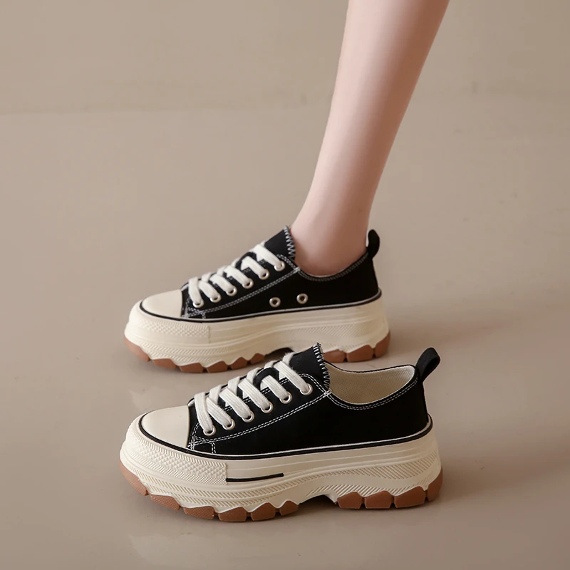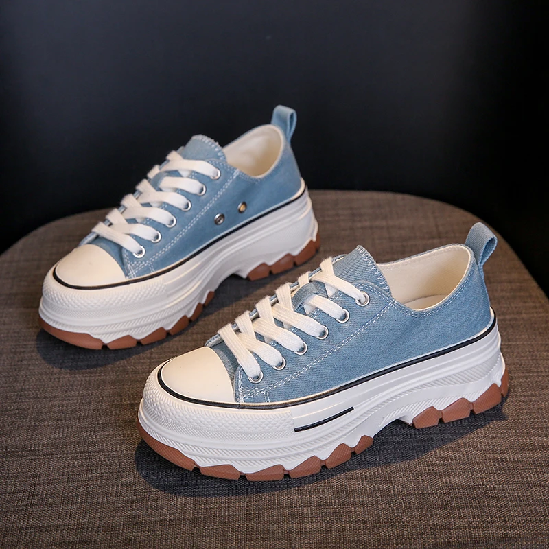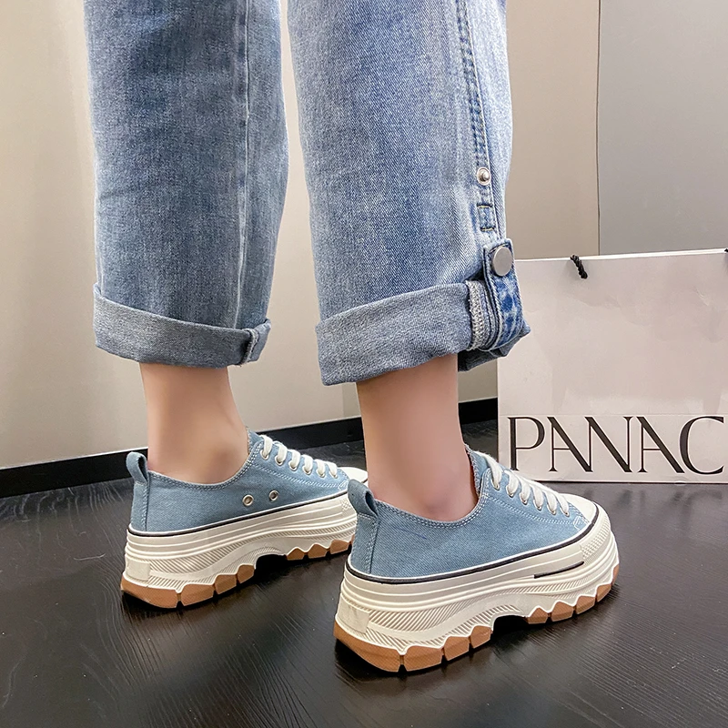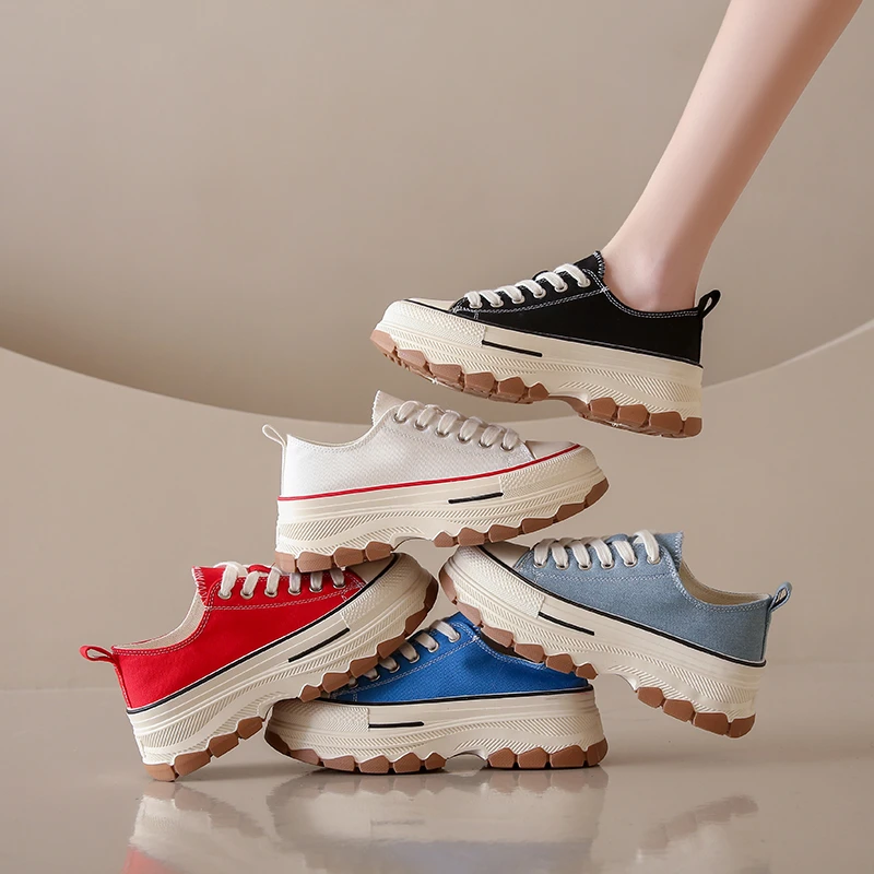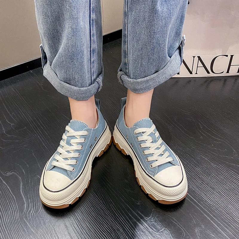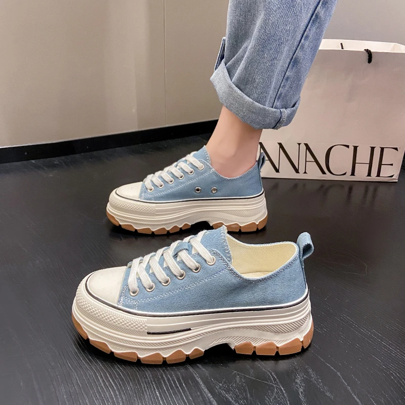 Casual Sports Running Round Toe Canvas Women Flats Platform Shoes Sneakers 2023 Summer Leisure Walking Shoes with Thick Soles