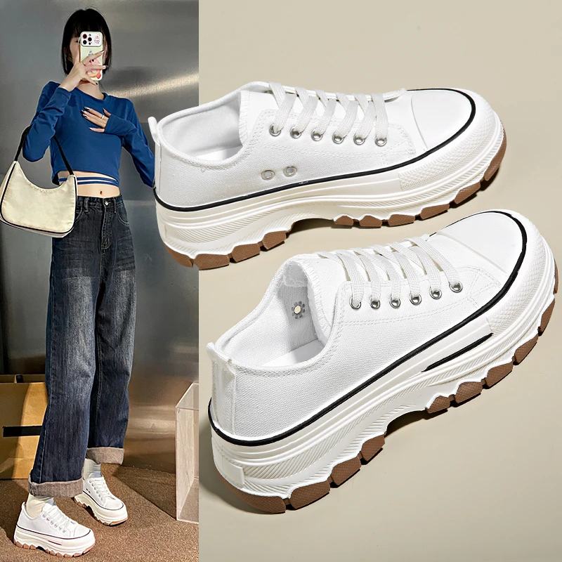 Classic canvas shoes for women spring and summer new fashion shoes Student Board Shoes Lace-up Leisure Sports Running