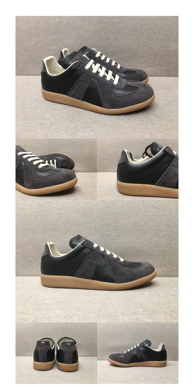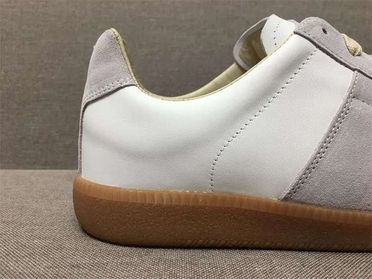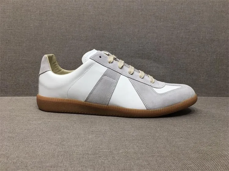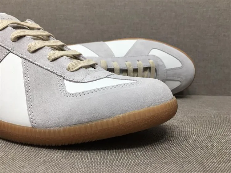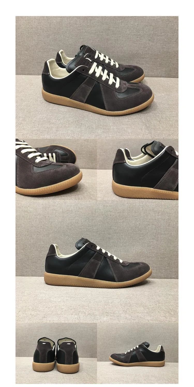 DONNAIN New Grey Flat Casual Couple Army Trainers Genuine Leather Lace Up Unisex Jogging Sneakers Men Women Handmade Shoes