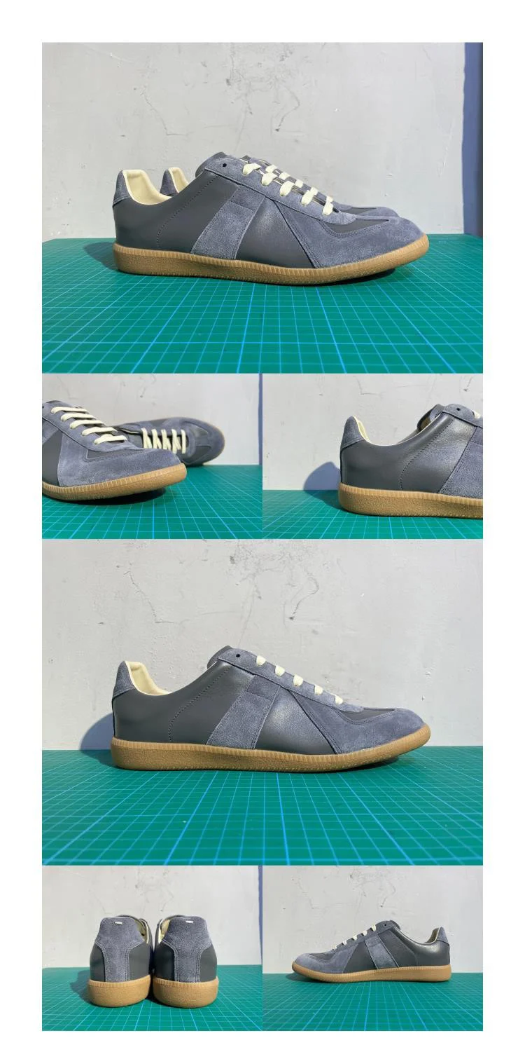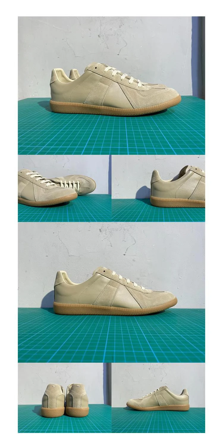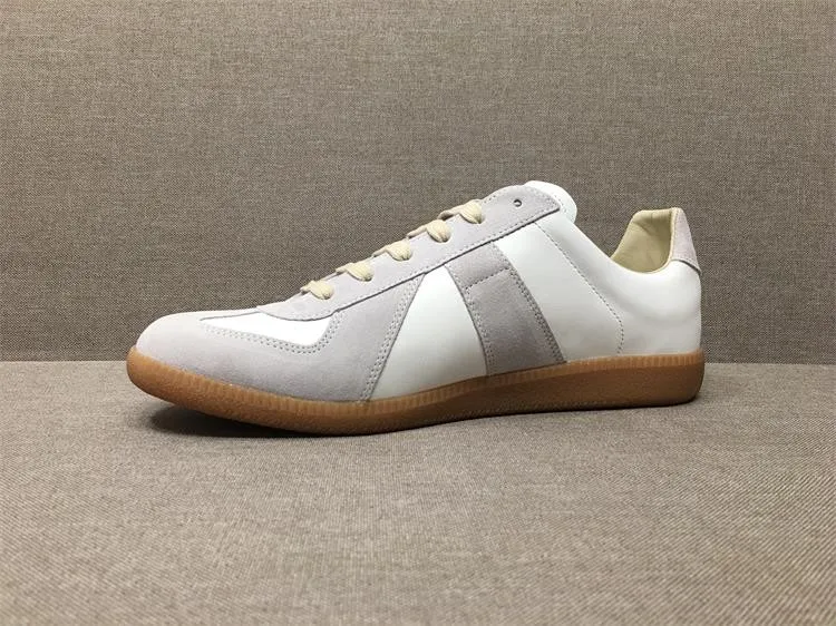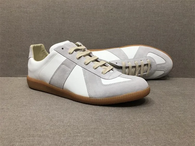 DONNAIN New Grey Flat Casual Couple Army Trainers Genuine Leather Lace Up Unisex Jogging Sneakers Men Women Handmade Shoes