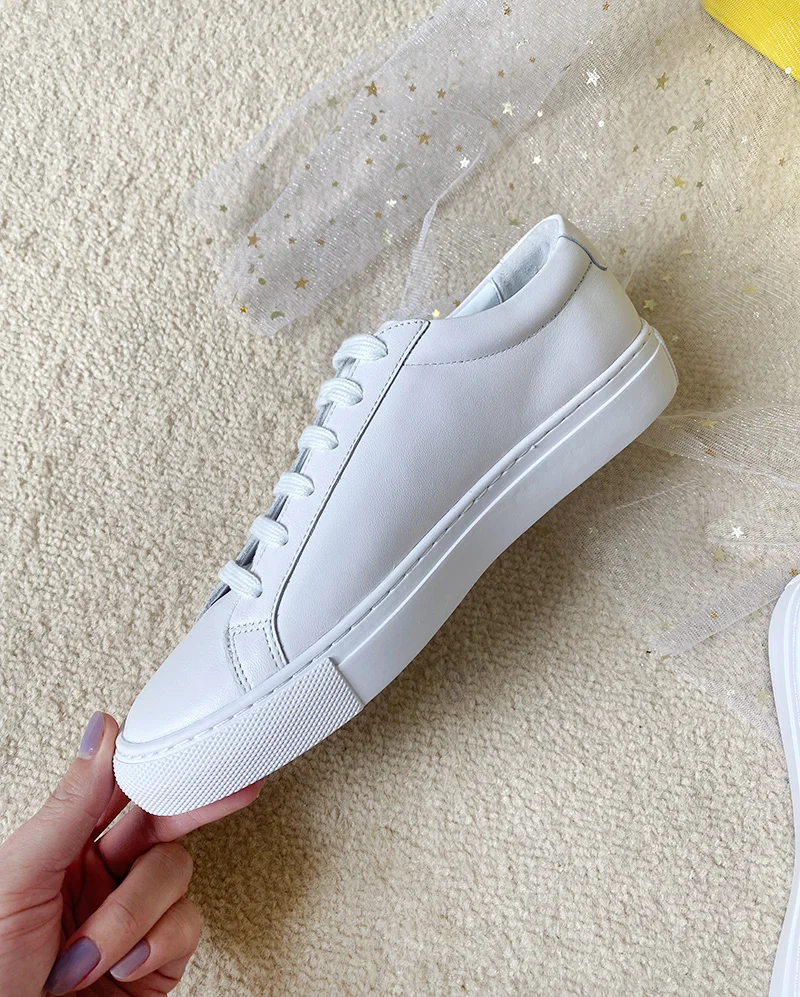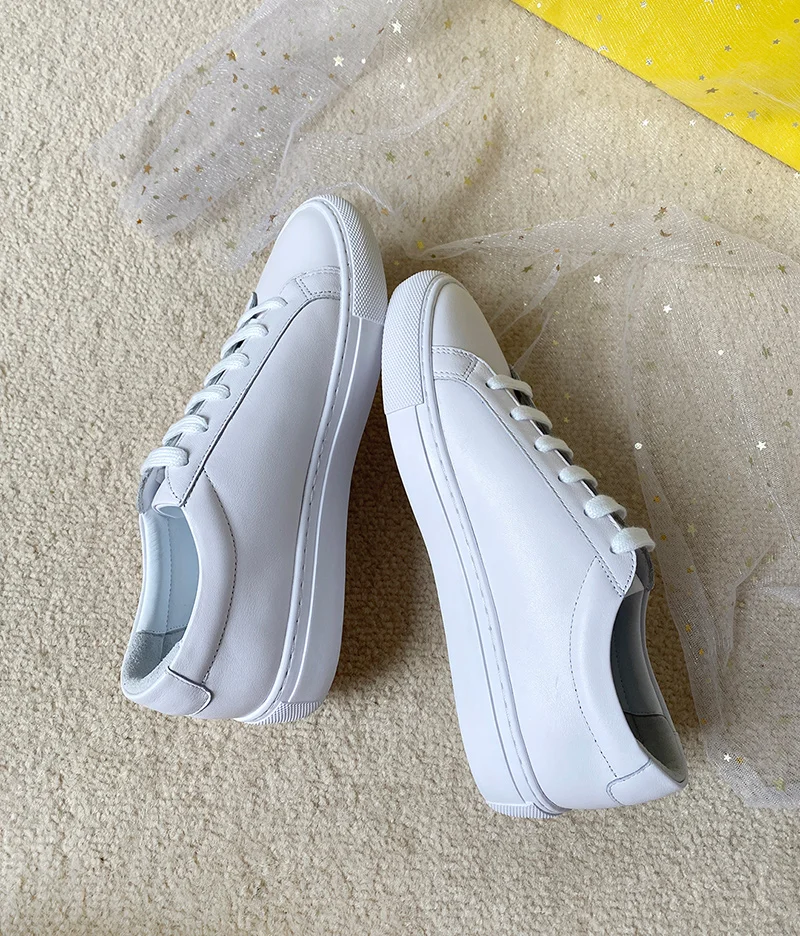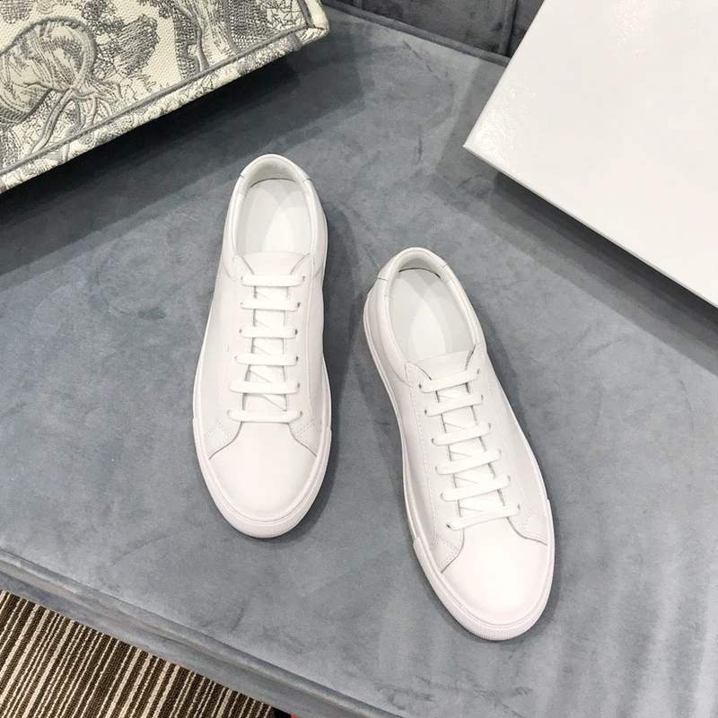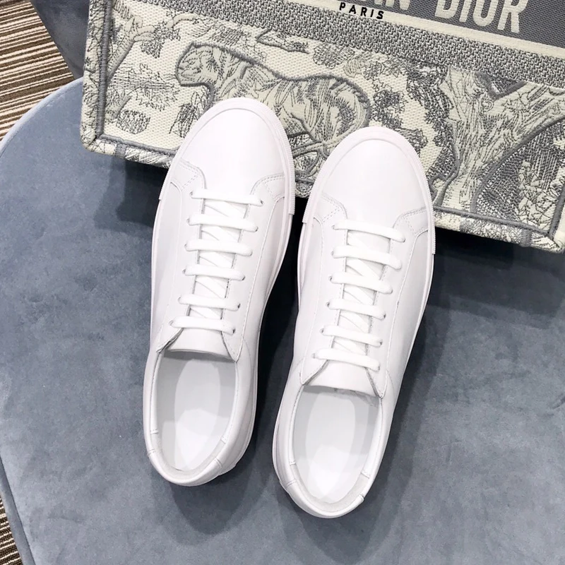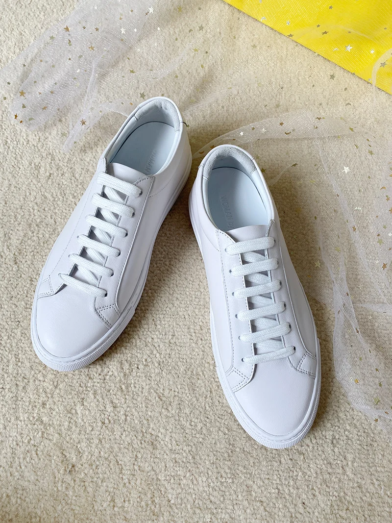 DONNAIN Unisex White Flat Common Casual Sneaker Women Minimalist Genuine Leather Lace Up Classic Daily Running Shoes For Men