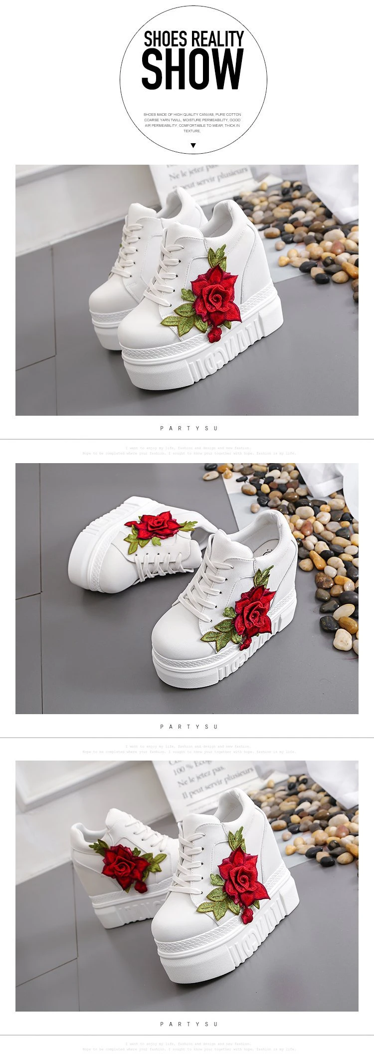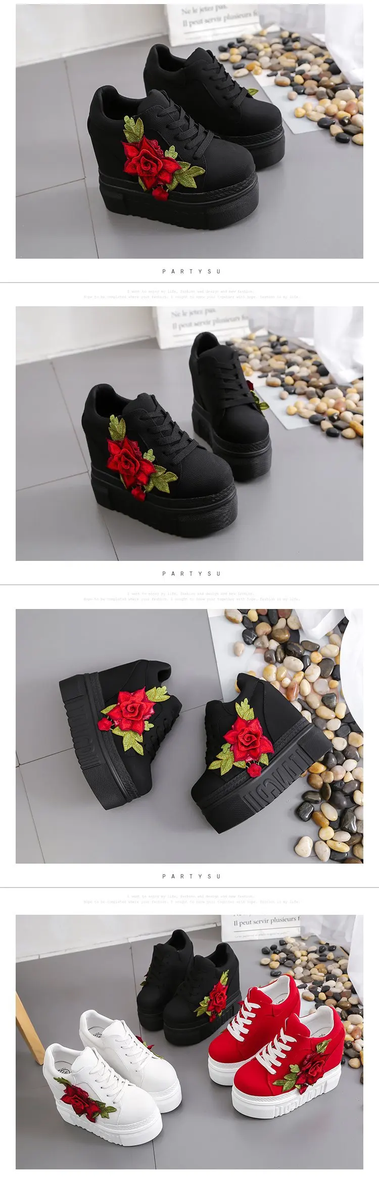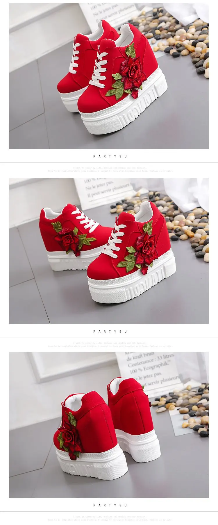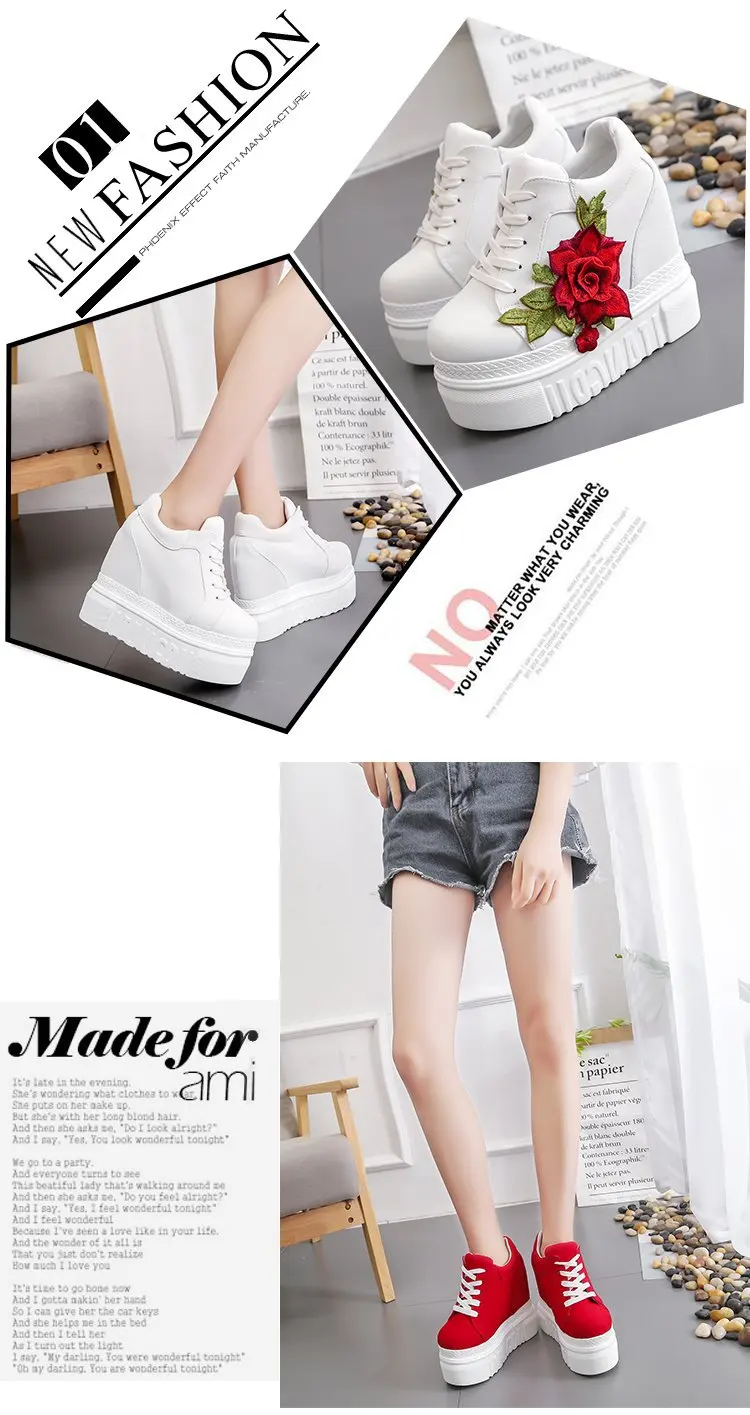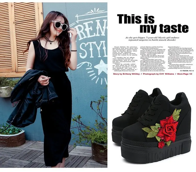 Embroidered Flowers Canvas Sneakers Autumn Women High Wedge Sneaker Fashion White/black/red Platform Woman Sports Casual Shoes