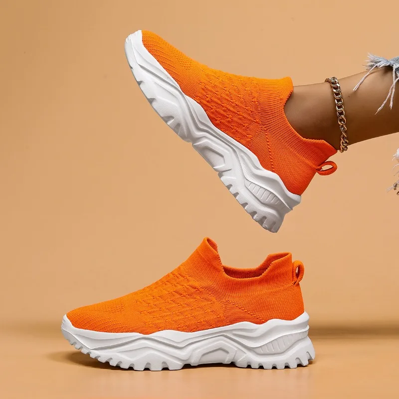 European and American Women's Sports Shoes 2024 New Mesh Socks Shoes Versatile One Foot Lazy Vulcanized Shoes Zapatos De Mujer