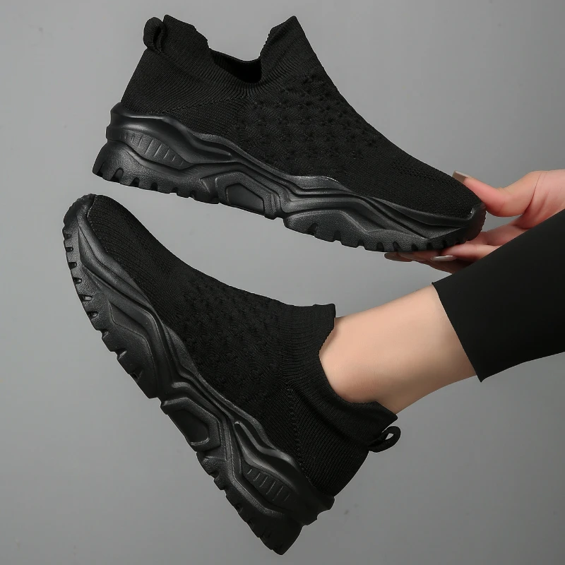 European and American Women's Sports Shoes 2024 New Mesh Socks Shoes Versatile One Foot Lazy Vulcanized Shoes Zapatos De Mujer