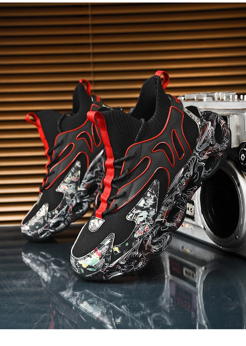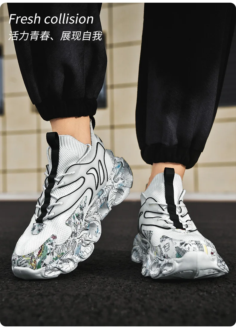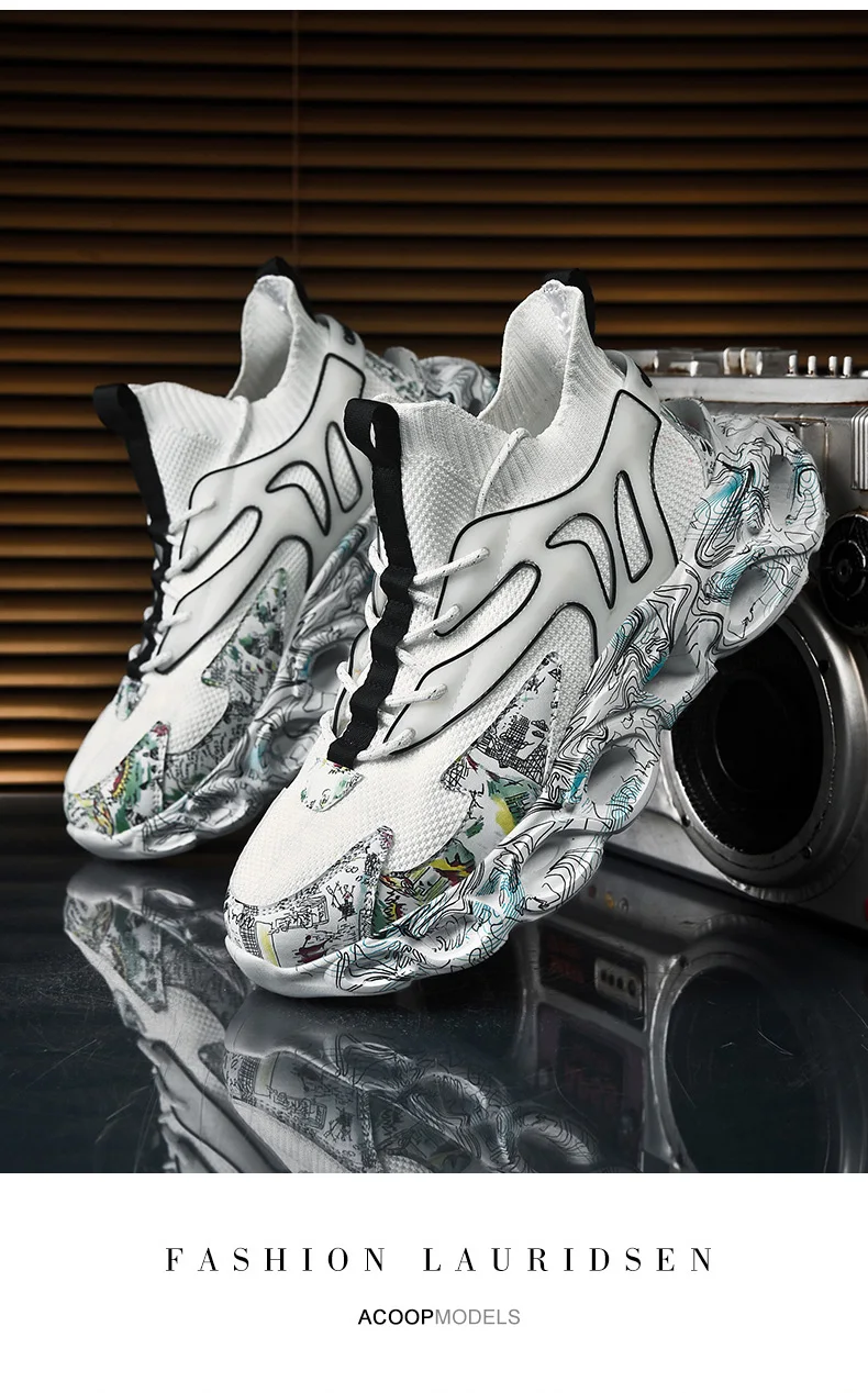 Fashion Graffiti Running Shoes Men Sock Jogging Sports Shoes Brand Design Sneakers Mesh Breathable Walking Shoes Male Footwear