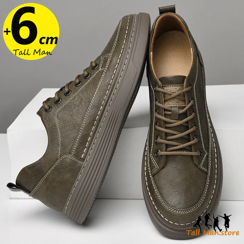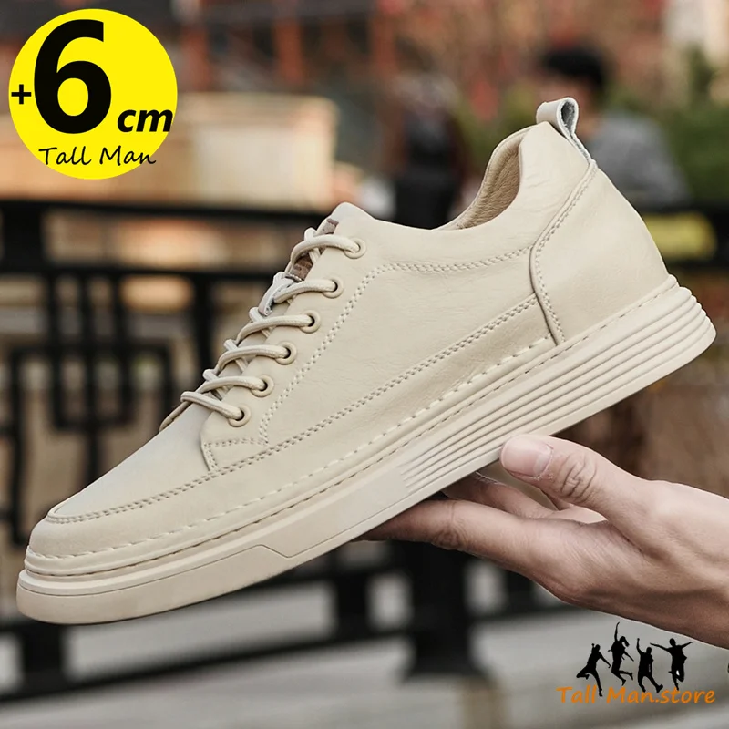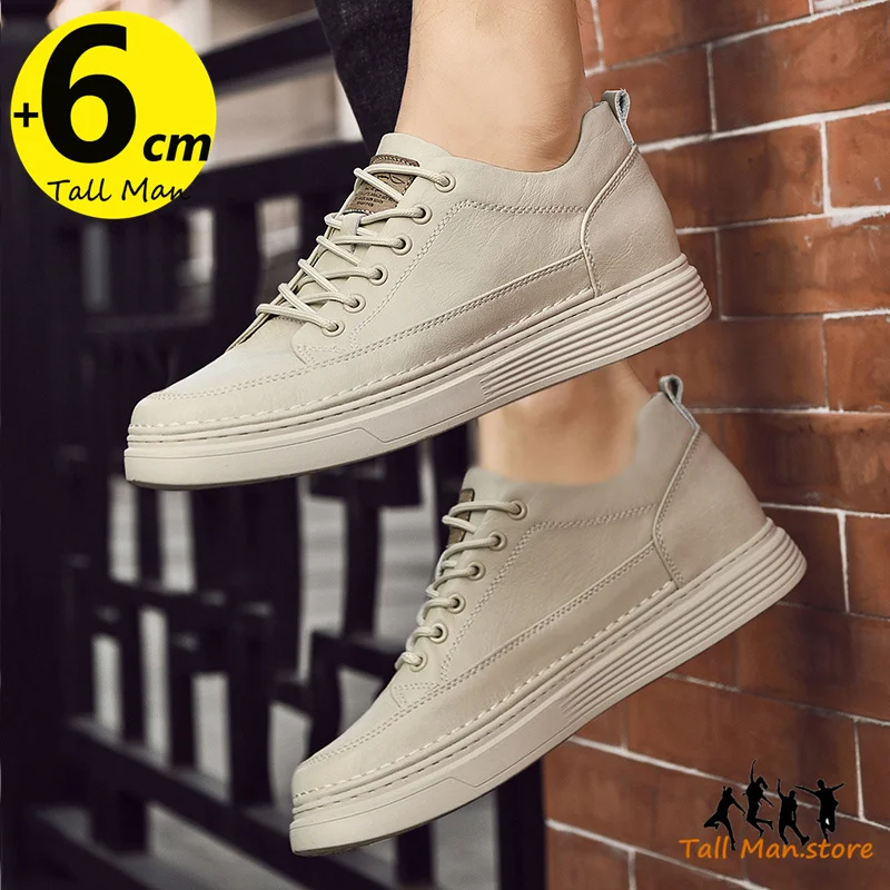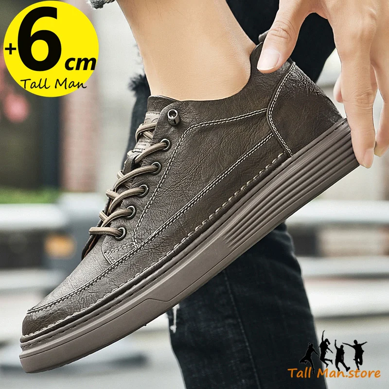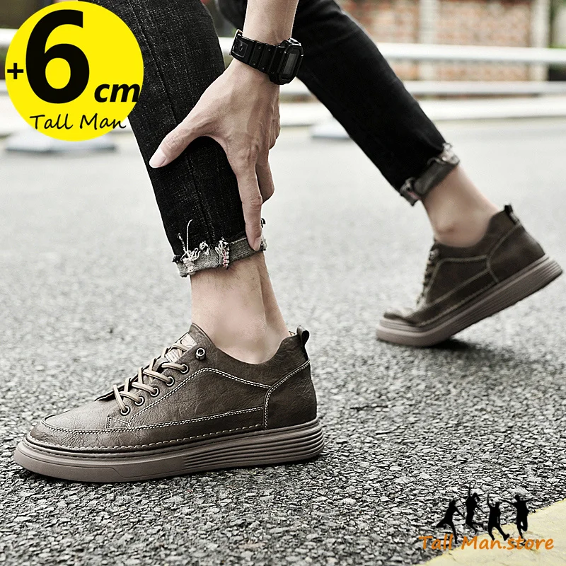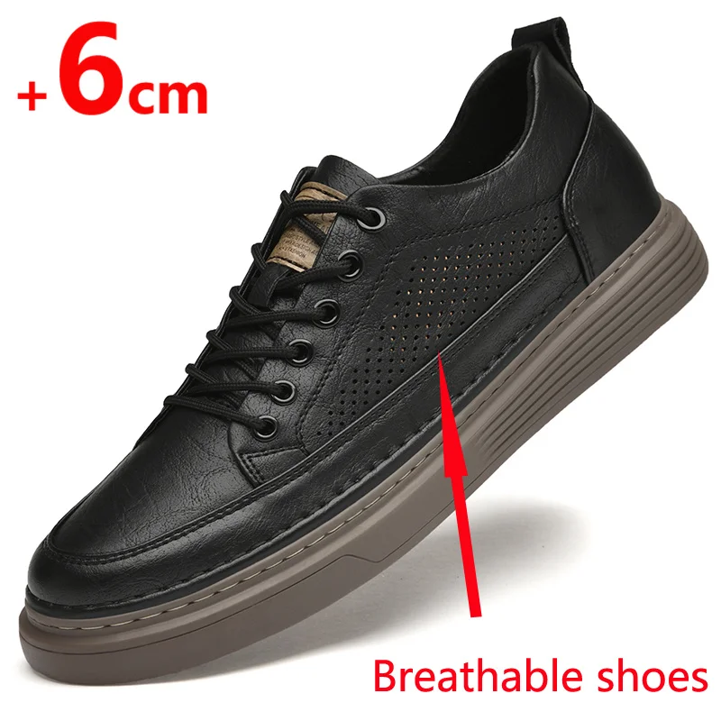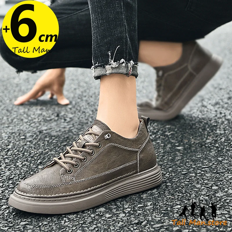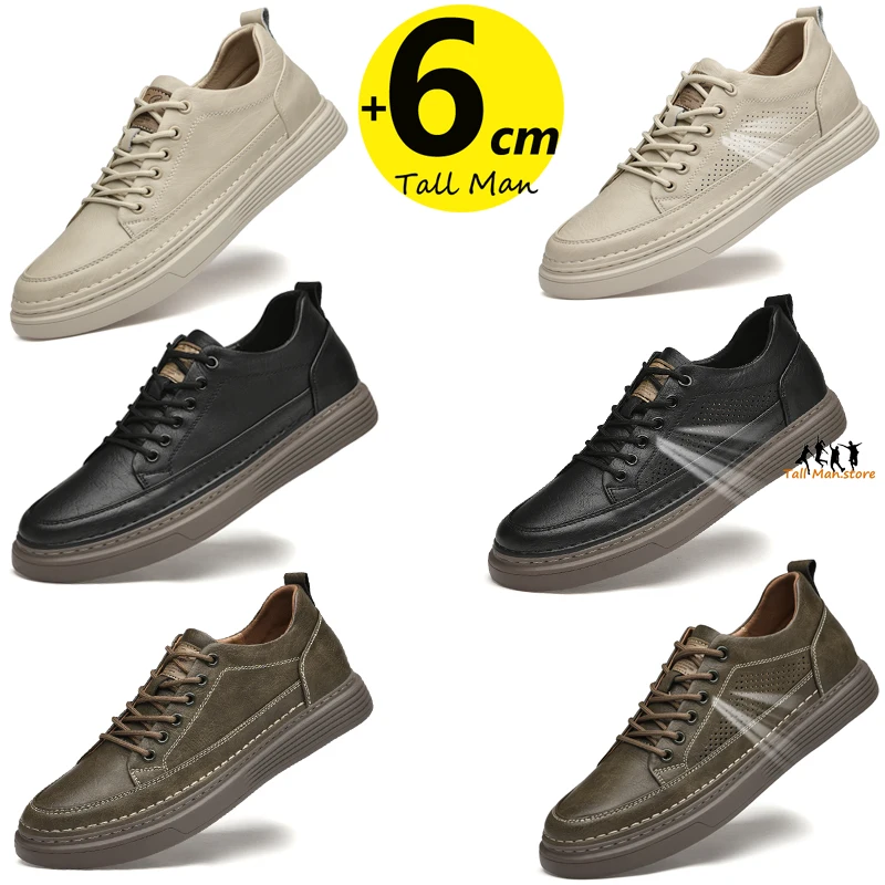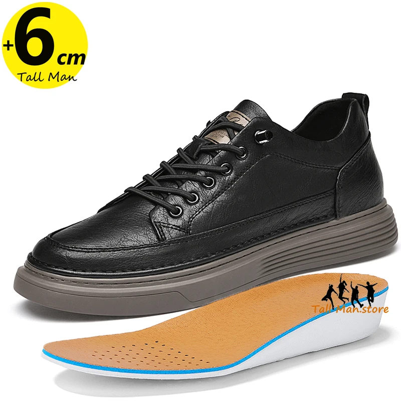 Fashion Men Sneakers Elevator Shoes Leather Height Increase Insoles 6CM Man Daily Life Lift