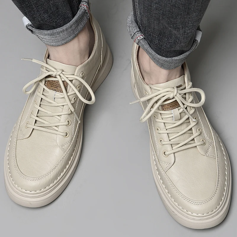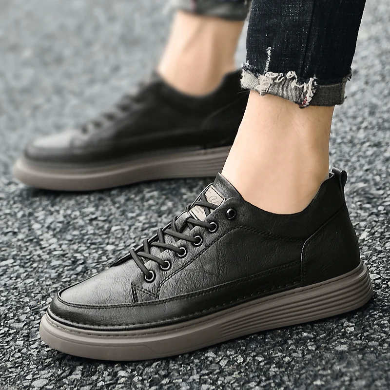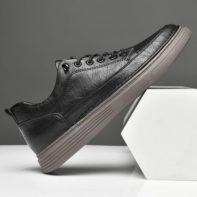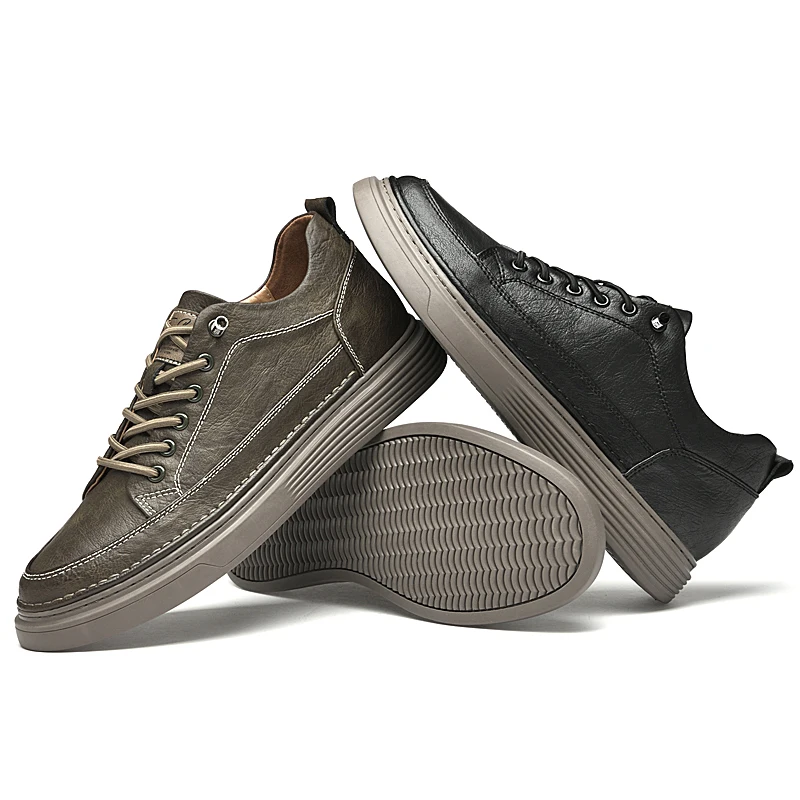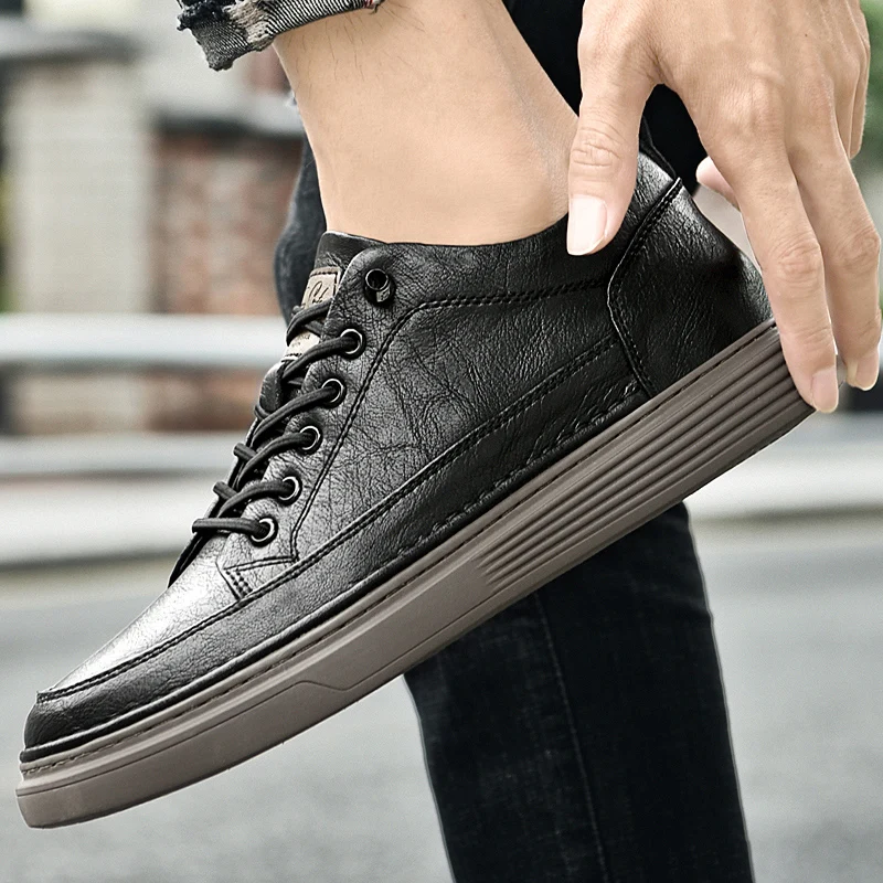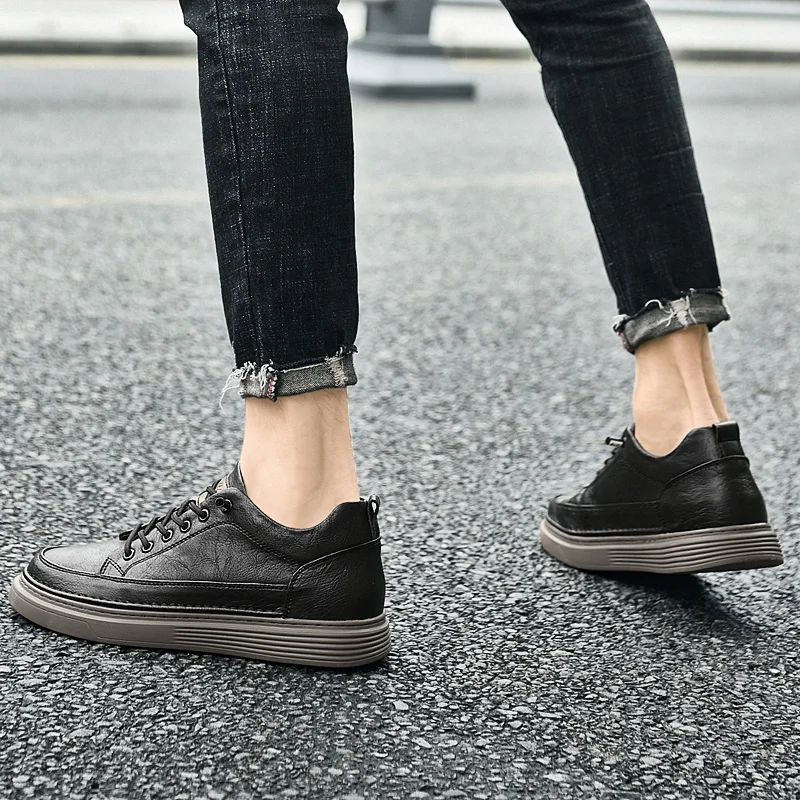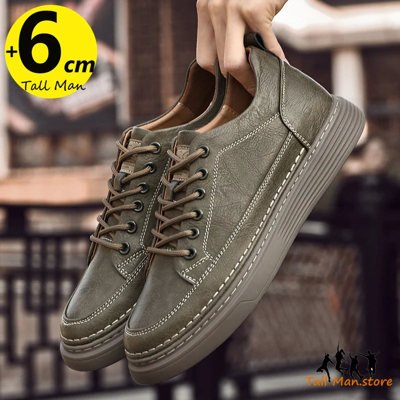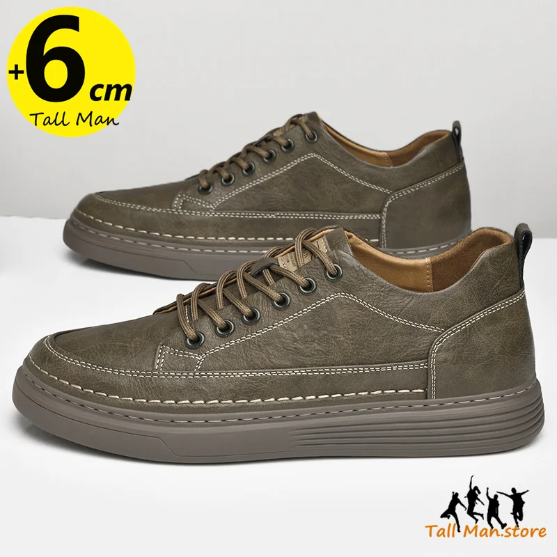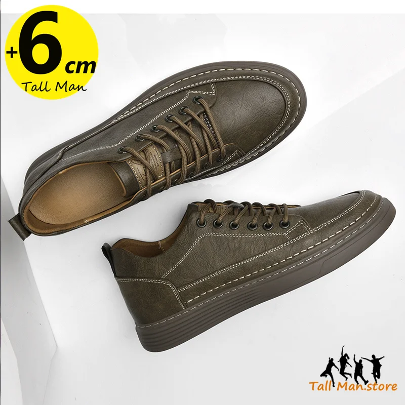 Fashion Men Sneakers Elevator Shoes Leather Height Increase Insoles 6CM Man Daily Life Lift