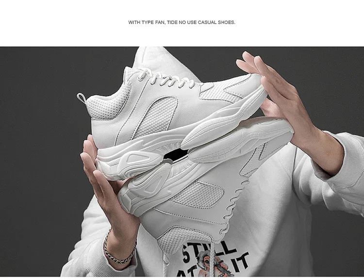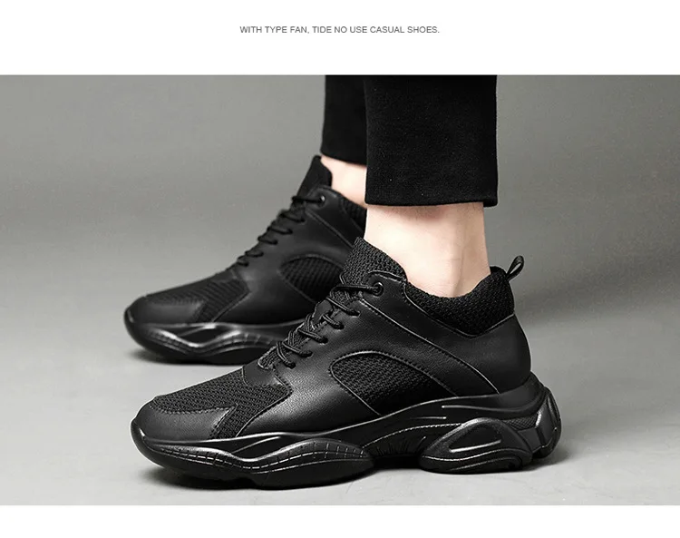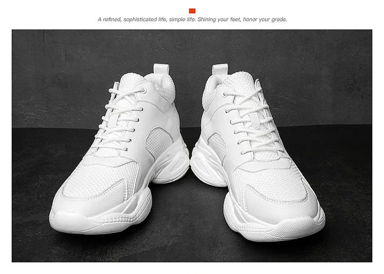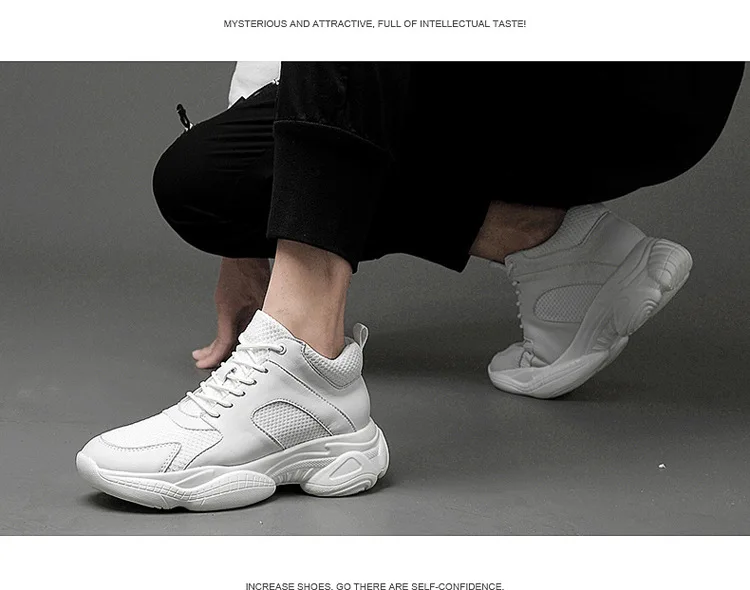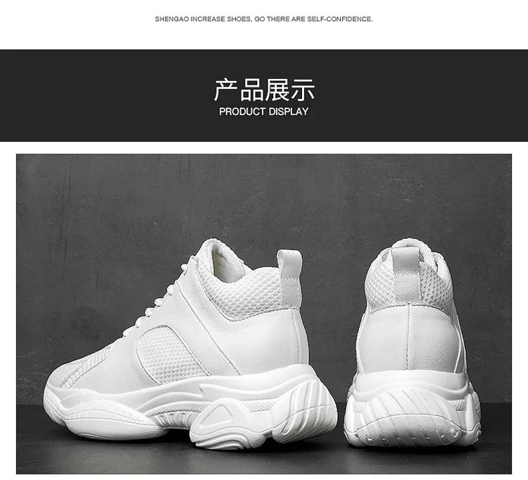 Fashion Sneakers Man Elevator Shoes Height Increase Insole 8cm White Black Taller Shoes Men Breathable Leisure Sports Plus Size