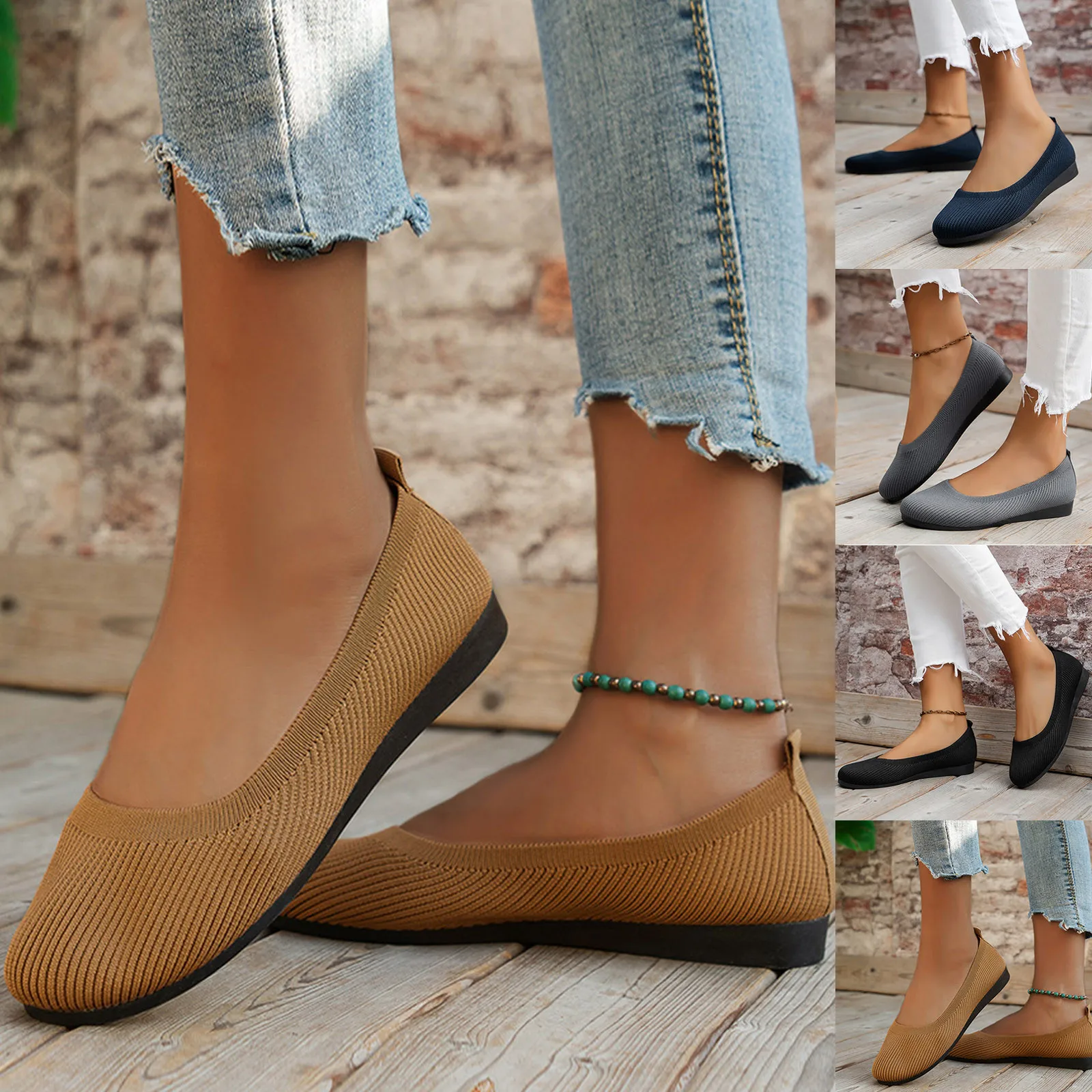 Fashion Spring And Summer Women Casual Shoes Flat Bottom Round Toe Fly Woven Mesh Breathable Slip On Lightweight Comfortable Solid Color Elegant