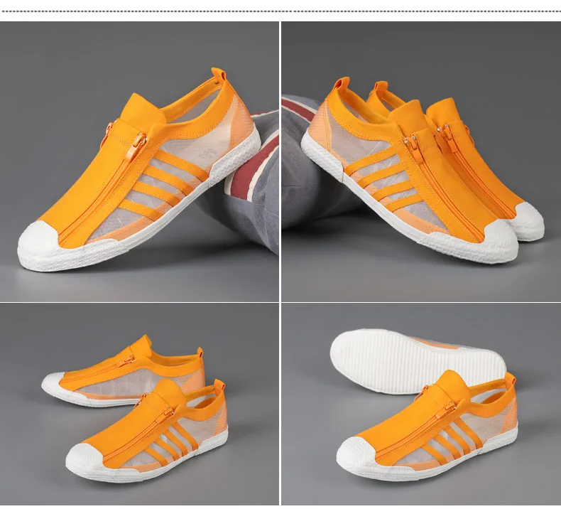 - Fashion Yellow Men's Summer Shoes Loafers Transparent Breathable Mens Canvas Sneakers Flat Vulcanized Shoes Men Casual Sneakers