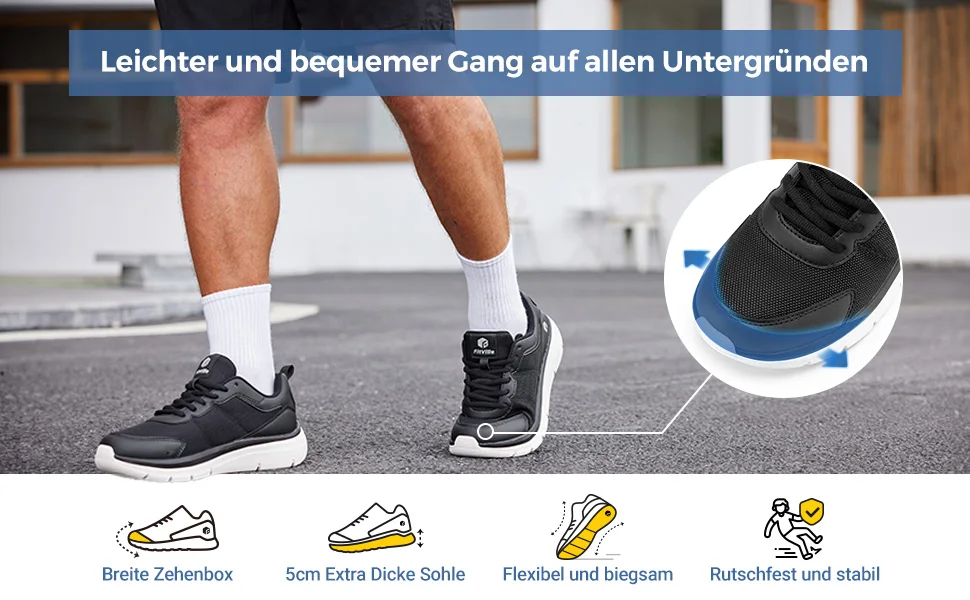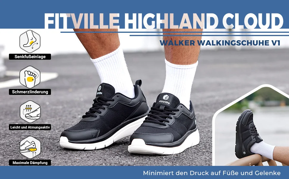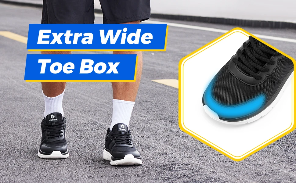 FitVille Wide Width Men's Walking Shoes Cushioning Lightweight Breathable Sneakers Shoes for Plantar Fasciitis Pain Relief