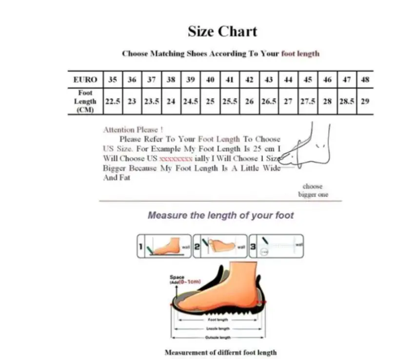 Please note 1. Choose the size according to your foot length (don't/don't choose the size according to the regular size in your country!!! 2. If your feet are a bit wide or the instep is a bit thick, it is better to choose a size