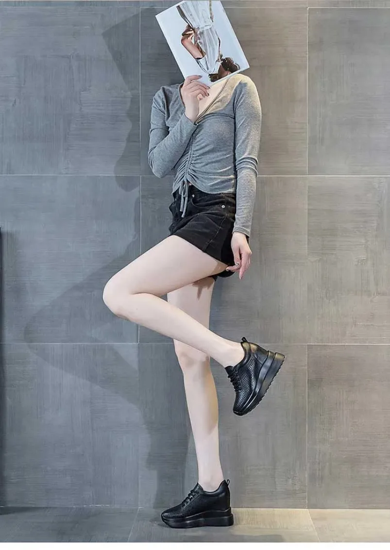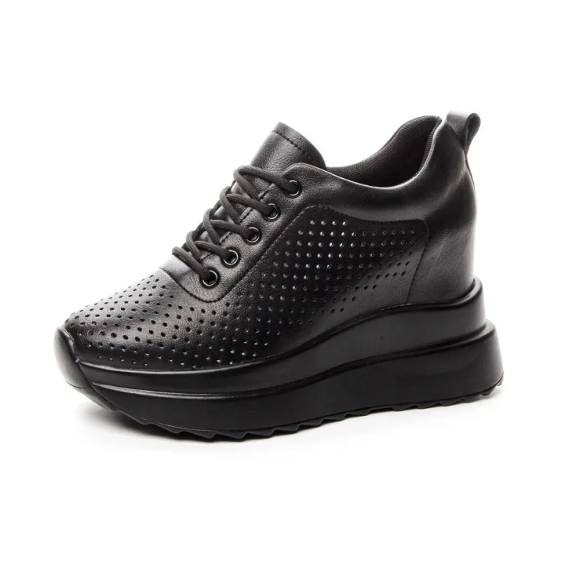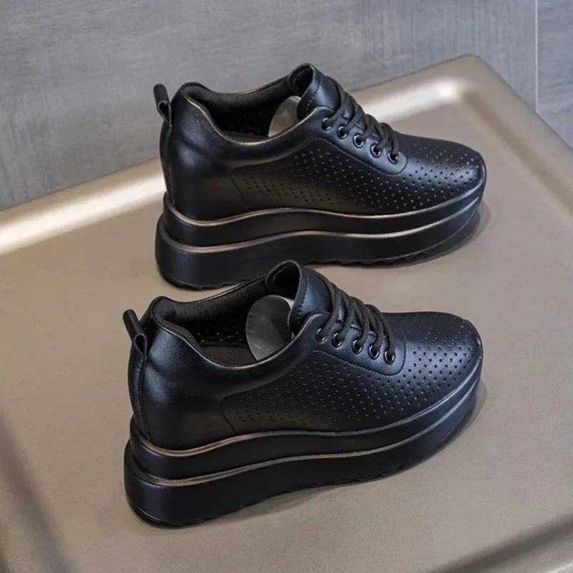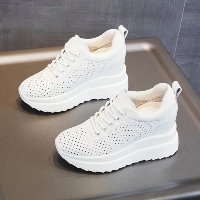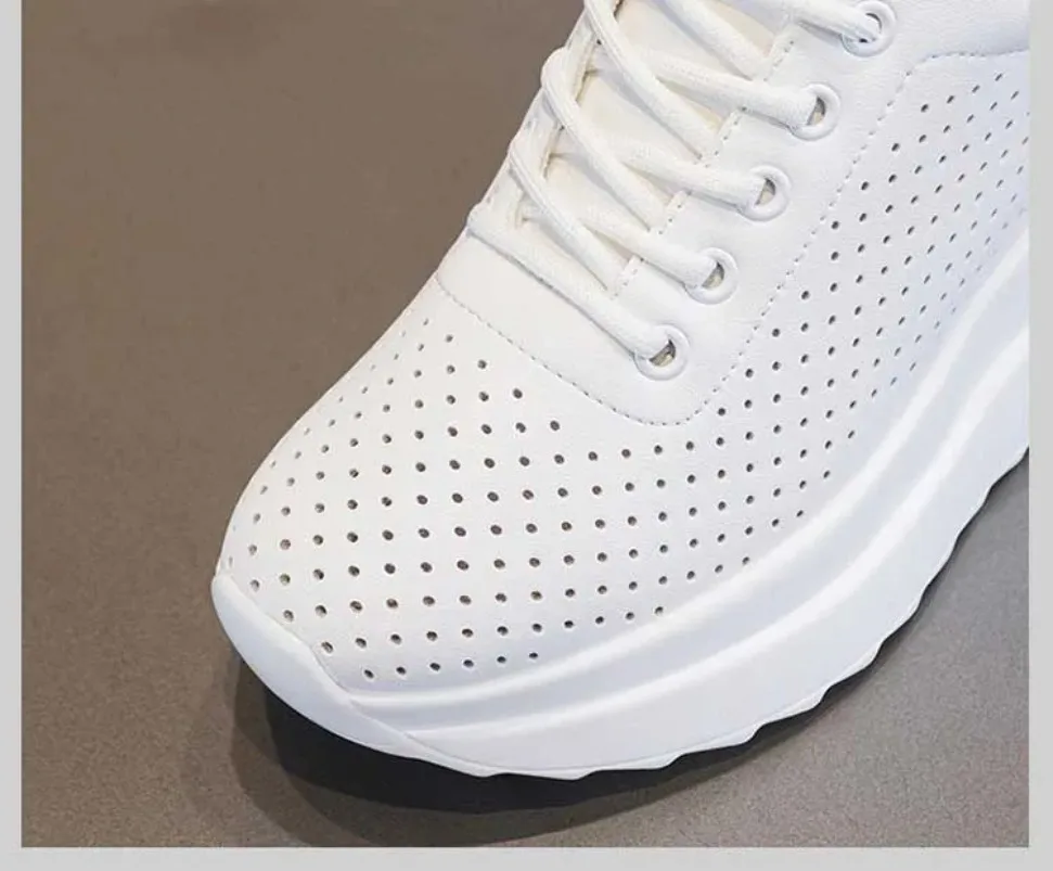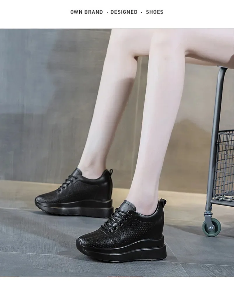 Fujin 10cm Genuine Leather Vulcanized Platform Wedge Casual Women Summer Shoes Fashion Sneakers Hollow Heels Increase Shoes