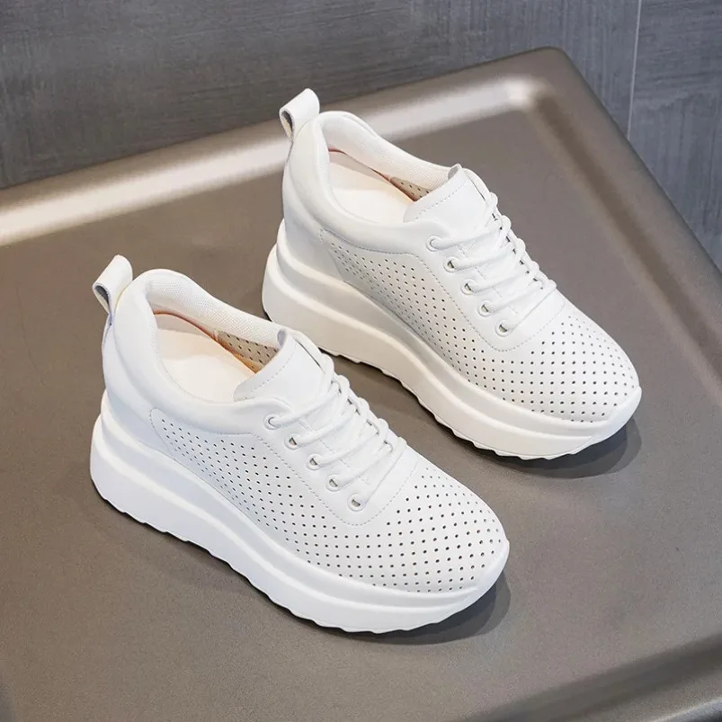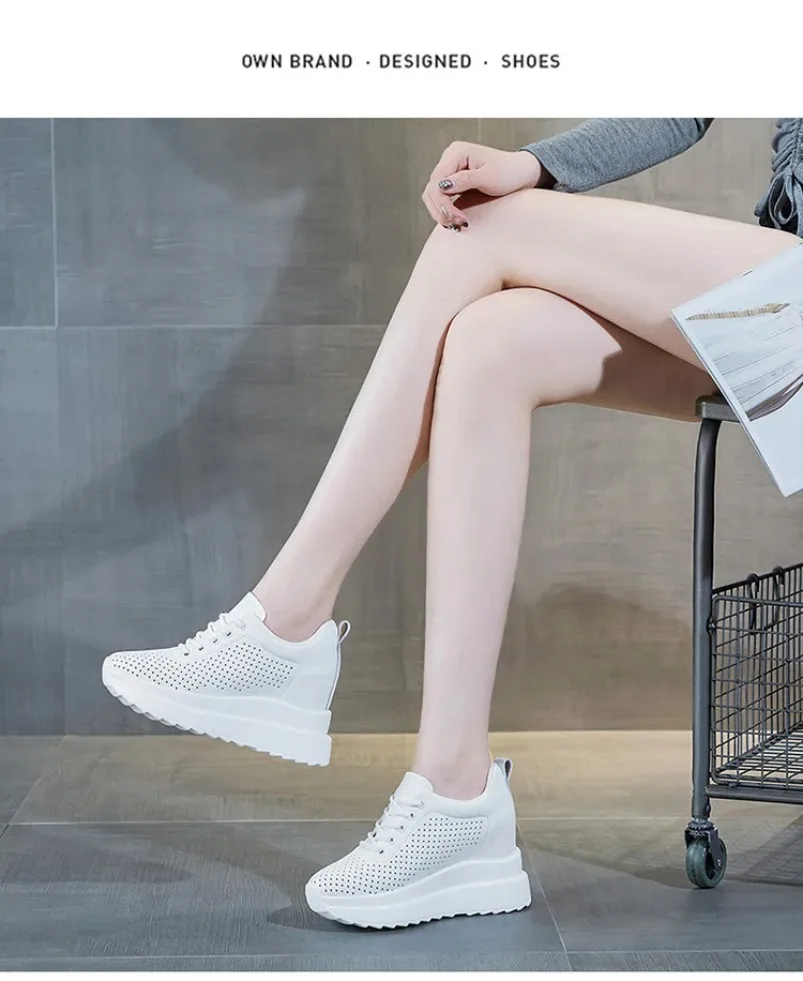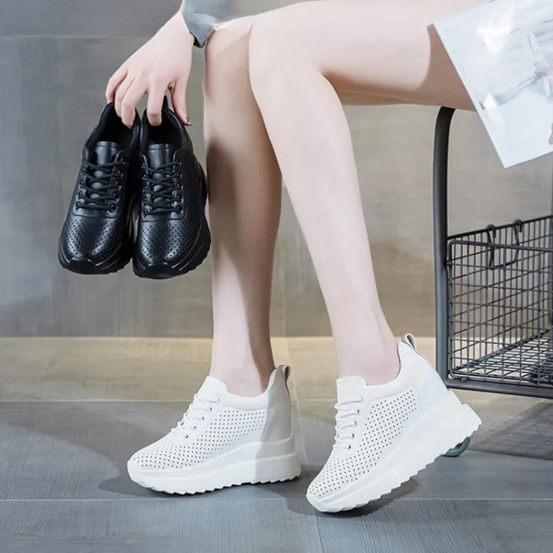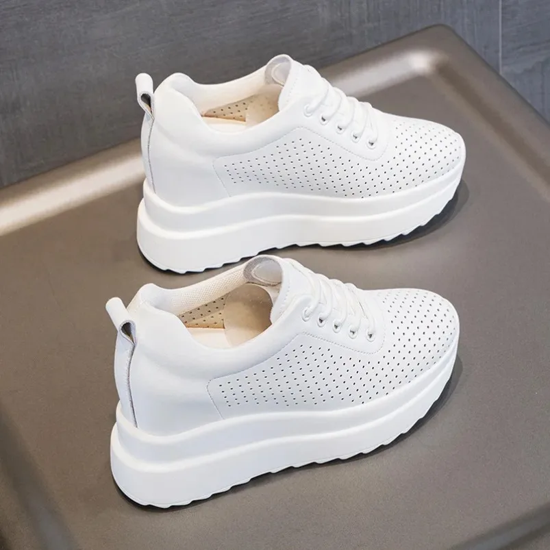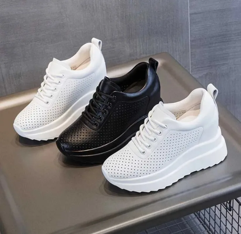 Fujin 10cm Genuine Leather Vulcanized Platform Wedge Casual Women Summer Shoes Fashion Sneakers Hollow Heels Increase Shoes