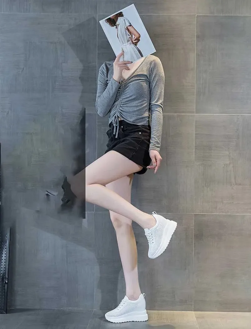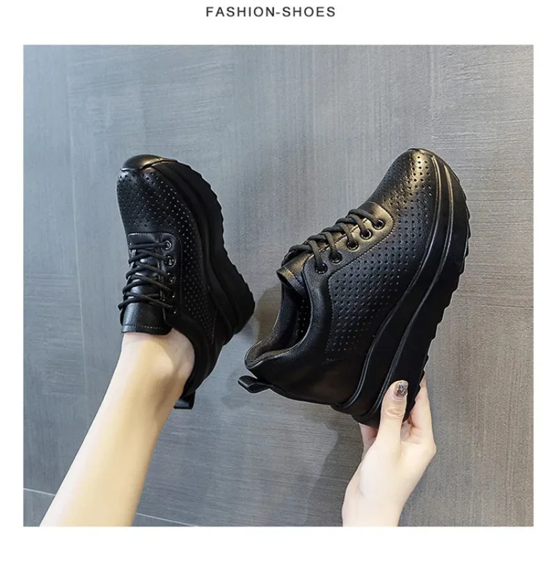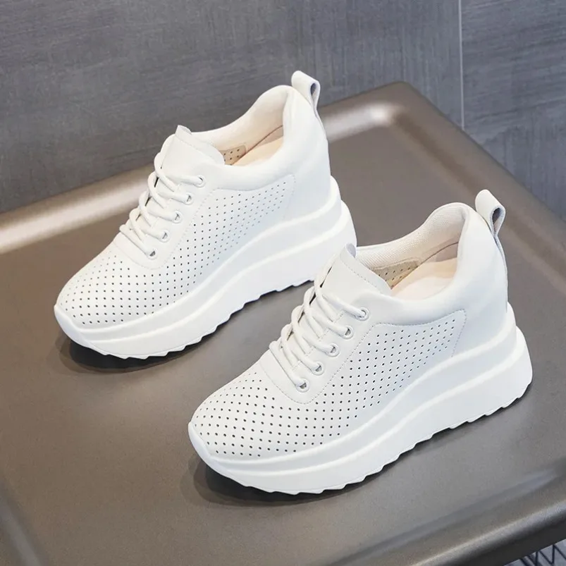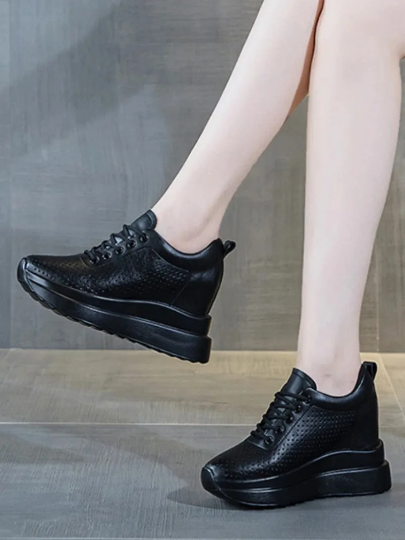 Fujin 10cm Genuine Leather Vulcanized Platform Wedge Casual Women Summer Shoes Fashion Sneakers Hollow Heels Increase Shoes