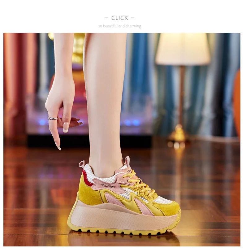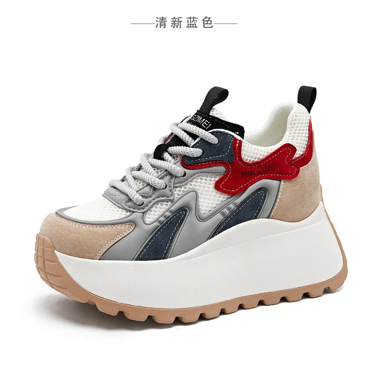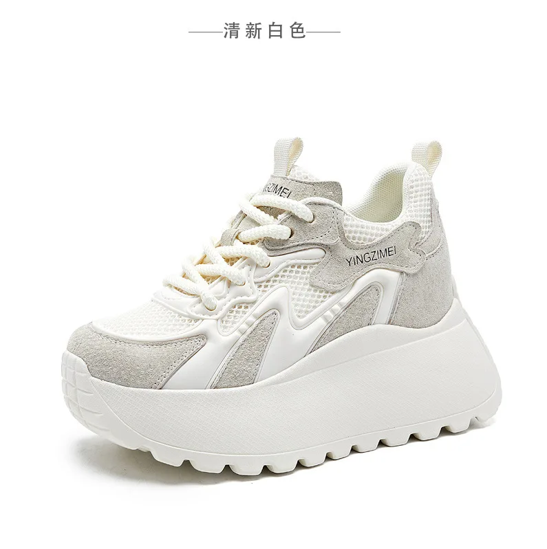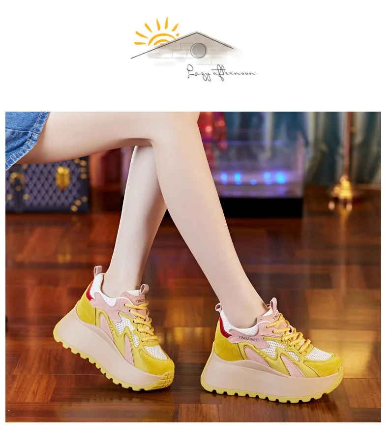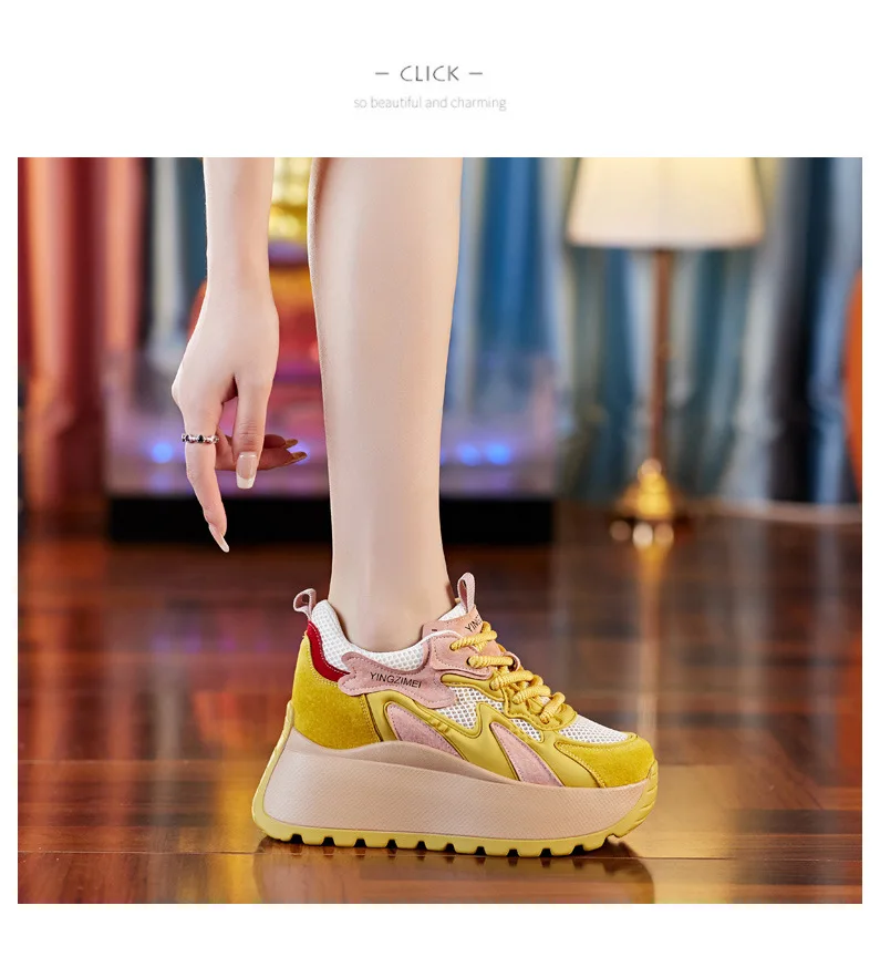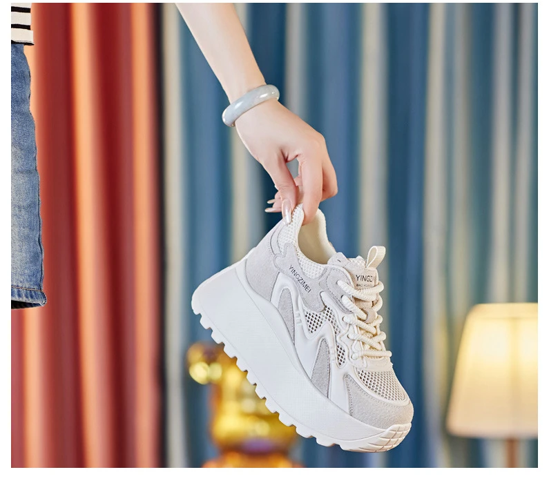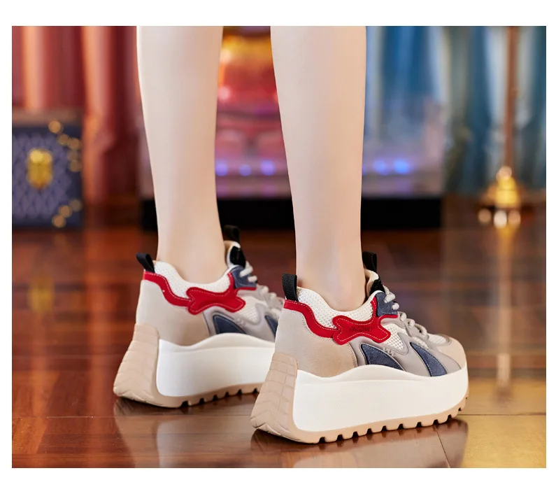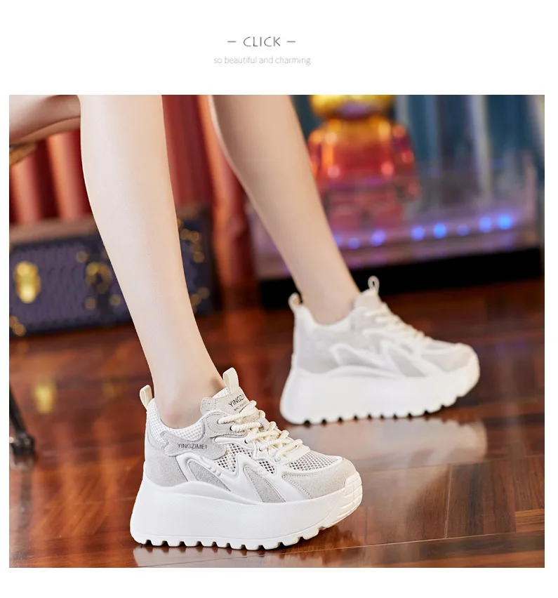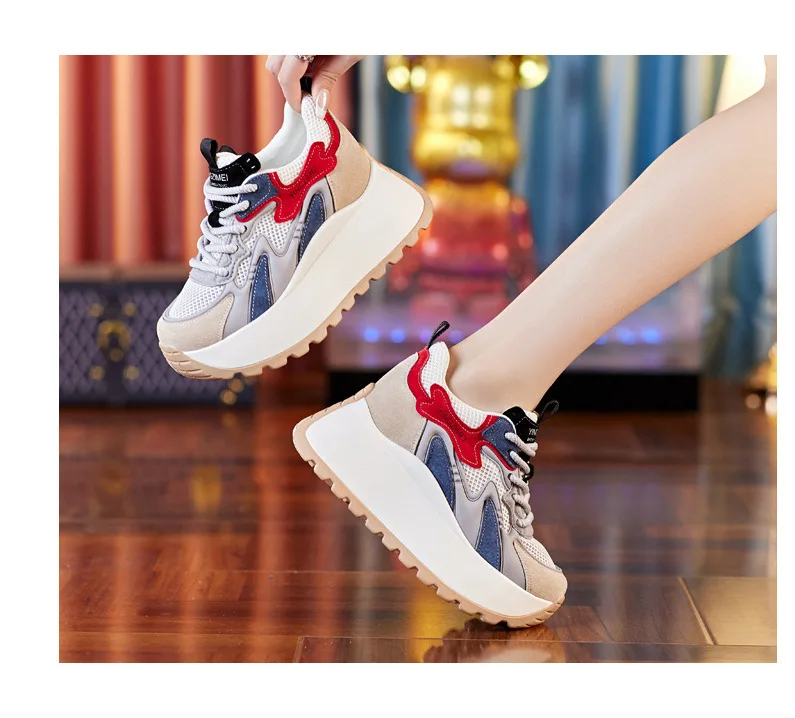 Fujin 8cm 2024 Air Mesh Leather Synthetic Chunky Sneaker Heels Comfy Platform Sandals Breathable Pumps Summer Vulcanize Shoes