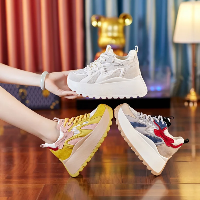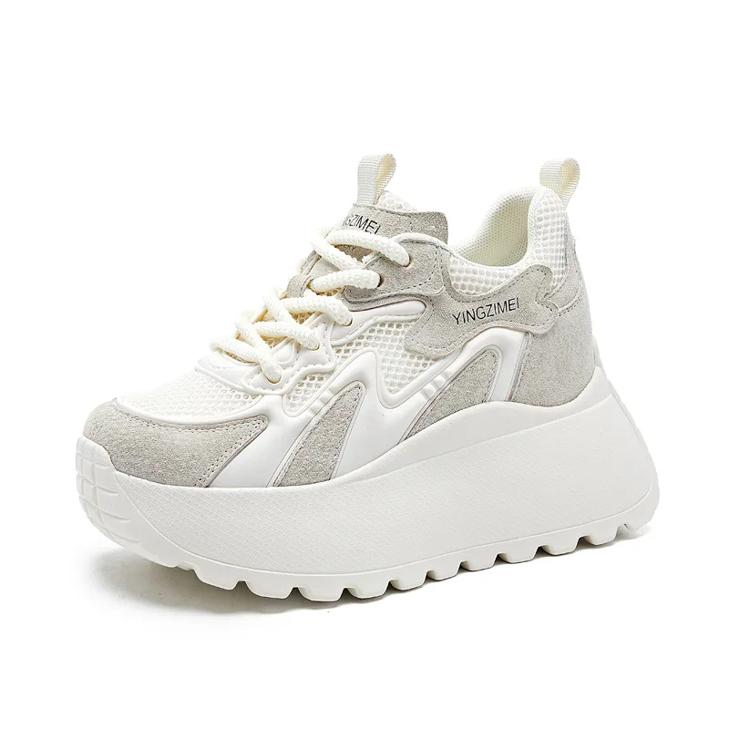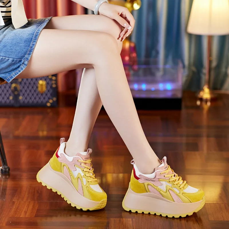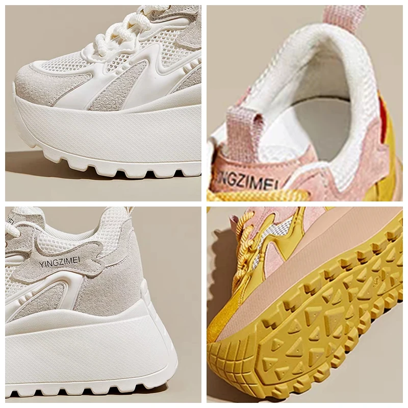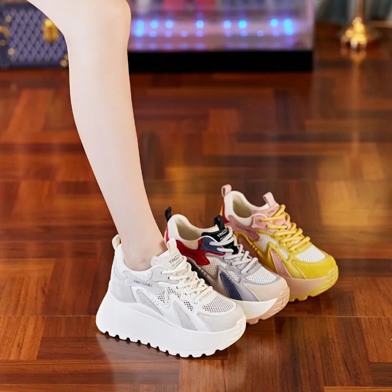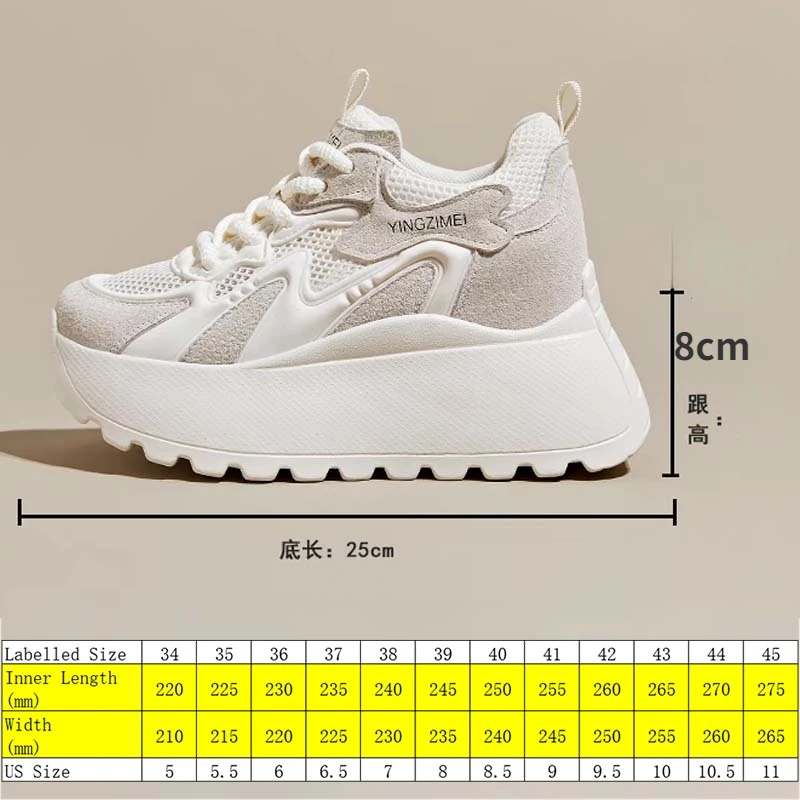 Fujin 8cm 2024 Air Mesh Leather Synthetic Chunky Sneaker Heels Comfy Platform Sandals Breathable Pumps Summer Vulcanize Shoes
