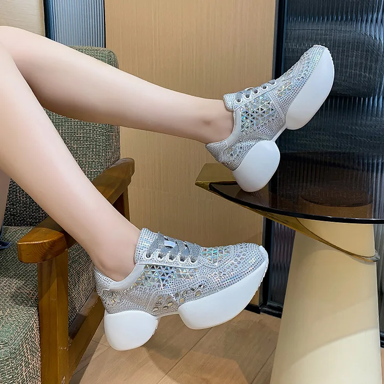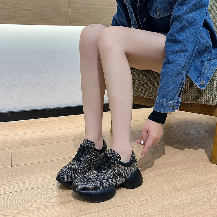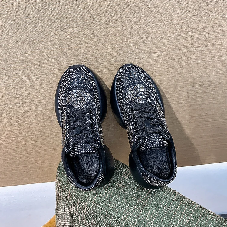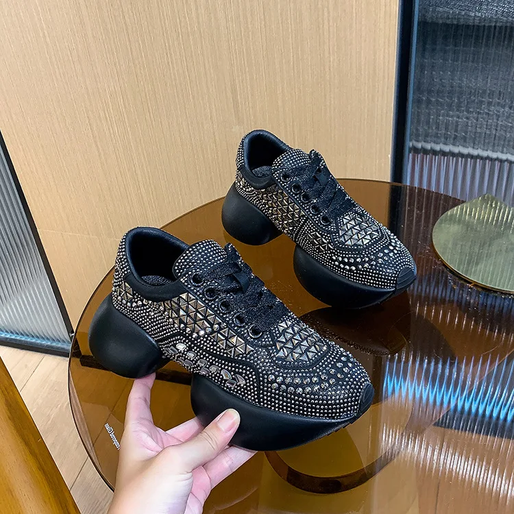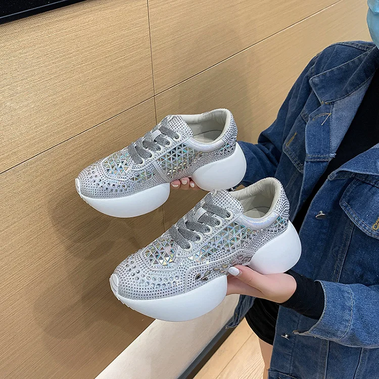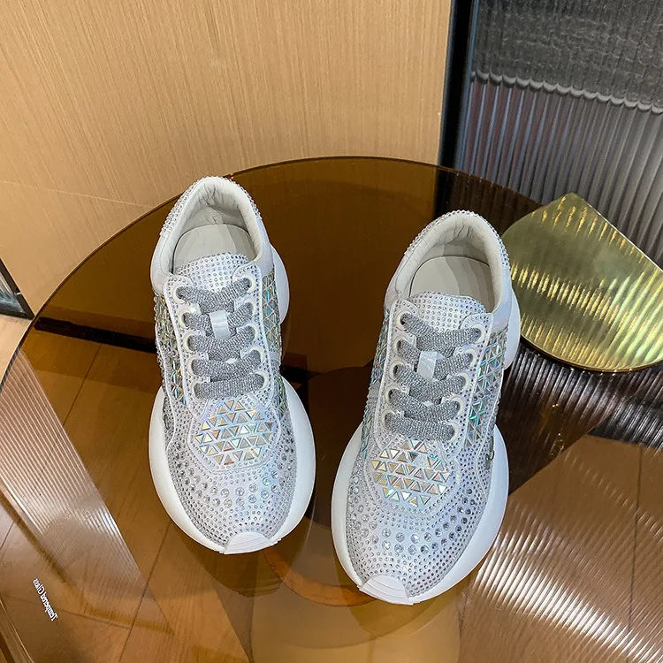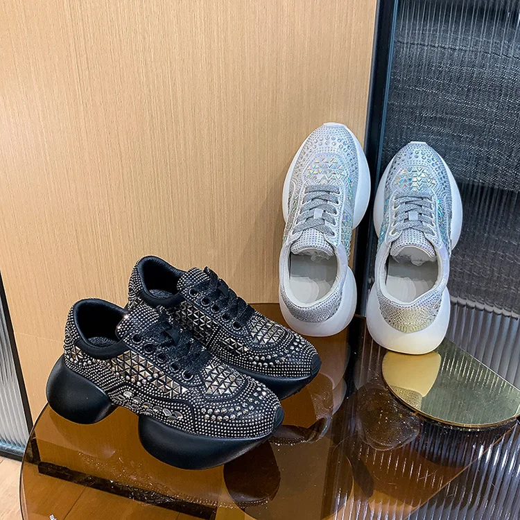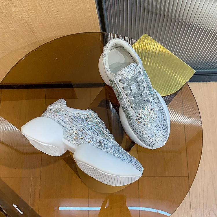 Full 2023 Autumn And Winter Seasons New Breathable Thick Sole Comfortable Water Diamond Women's Casual Princess Shoes