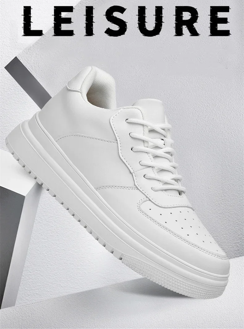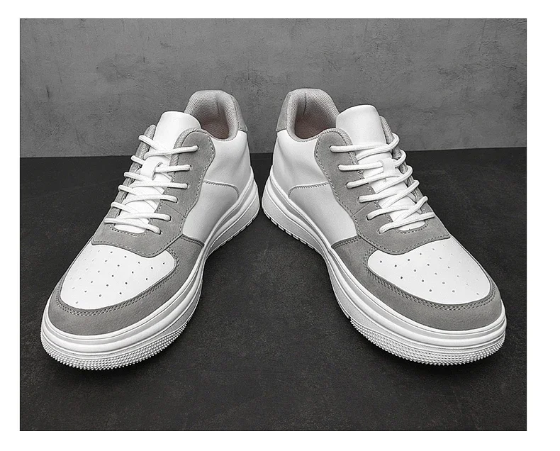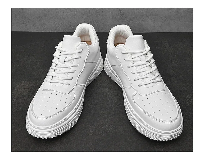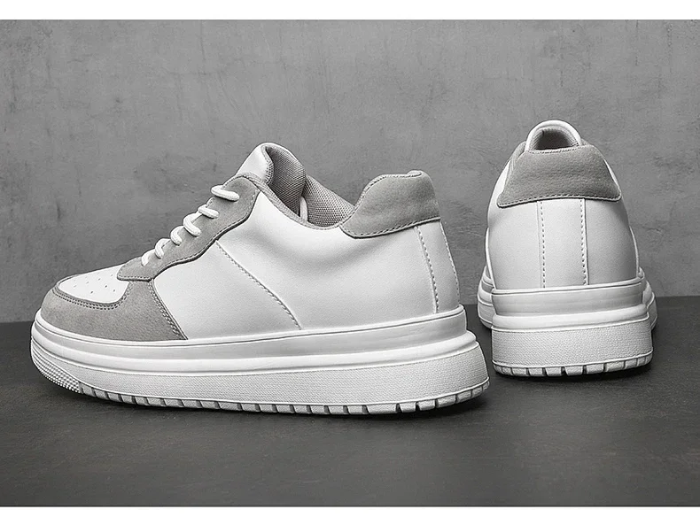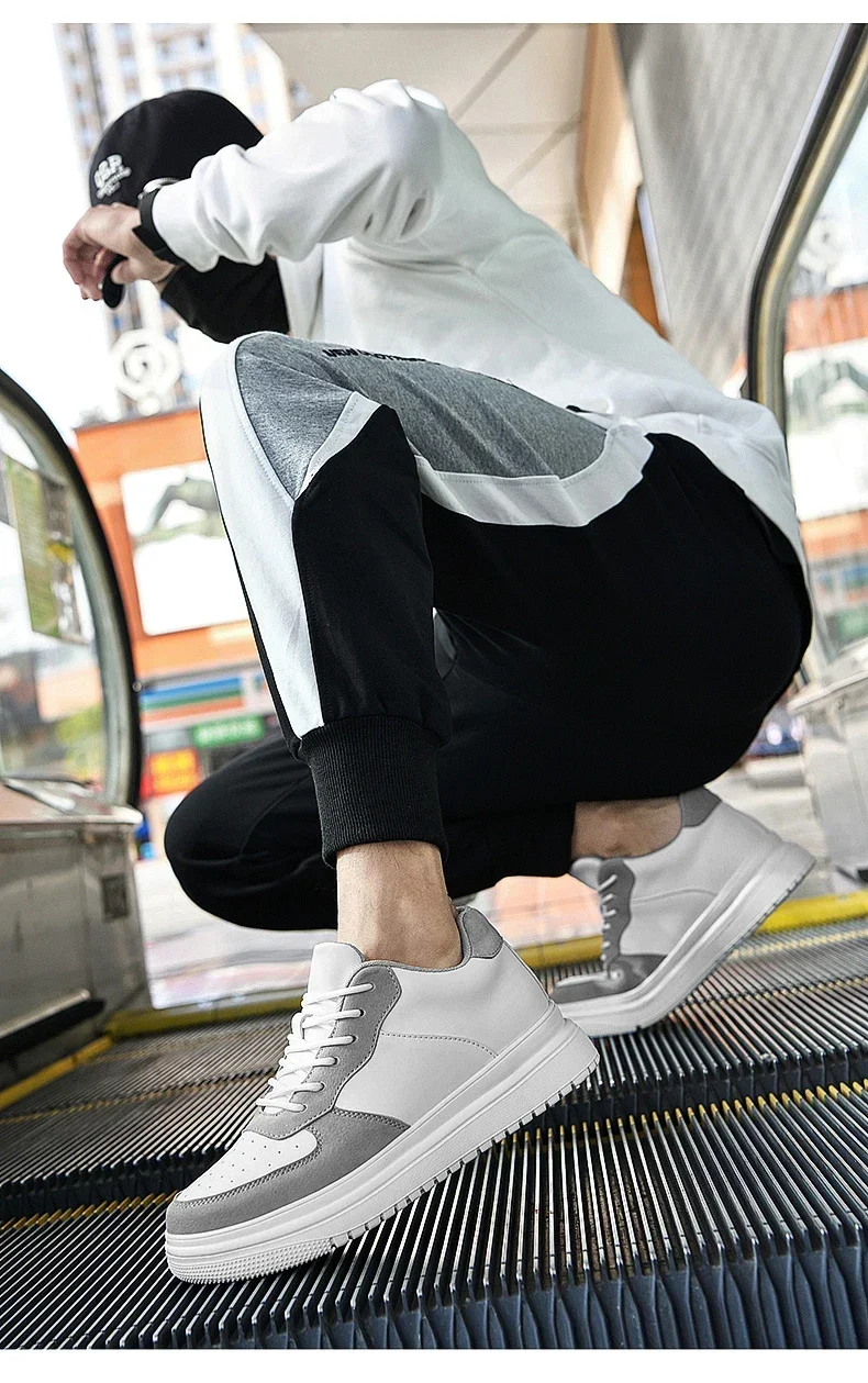 Genuine Leather Lift Sneakers Man Elevator Shoes Height Increase Insole 8cm White Taller Shoes Men Leisure Breathable Sports