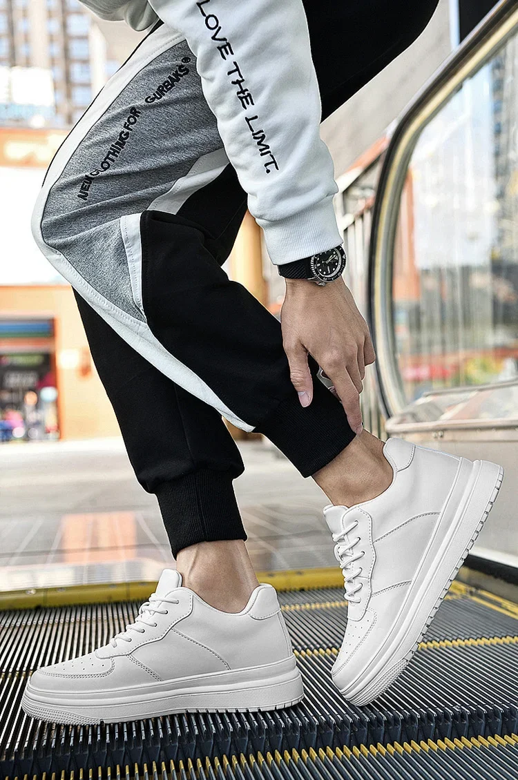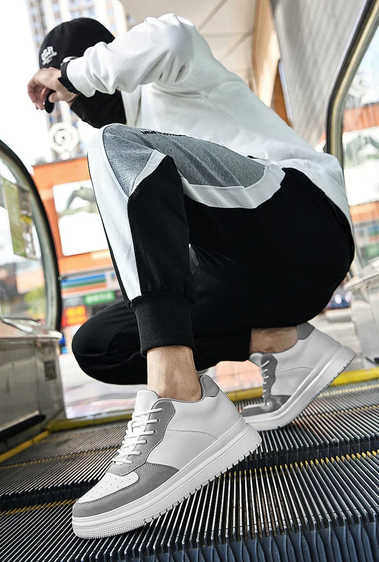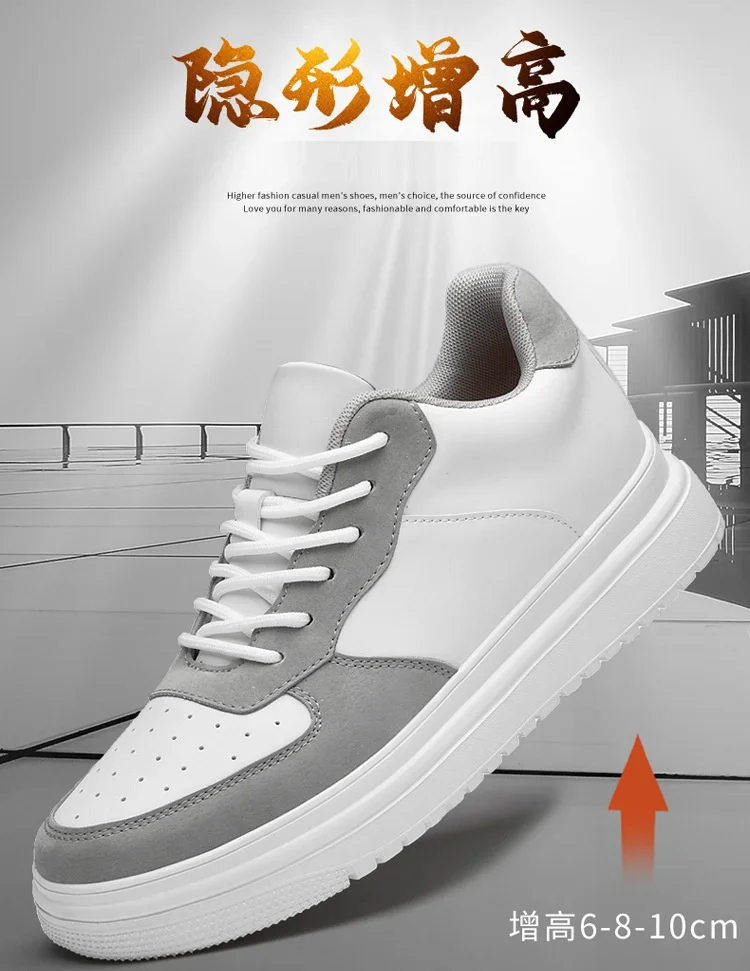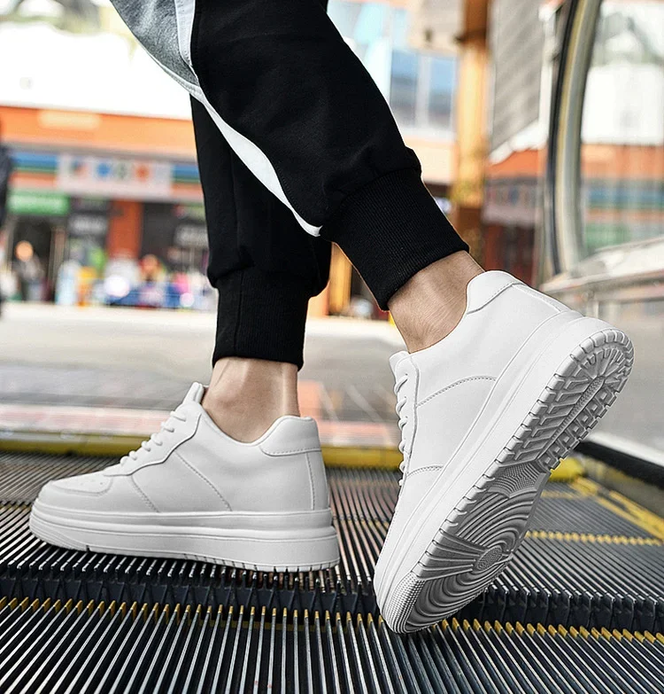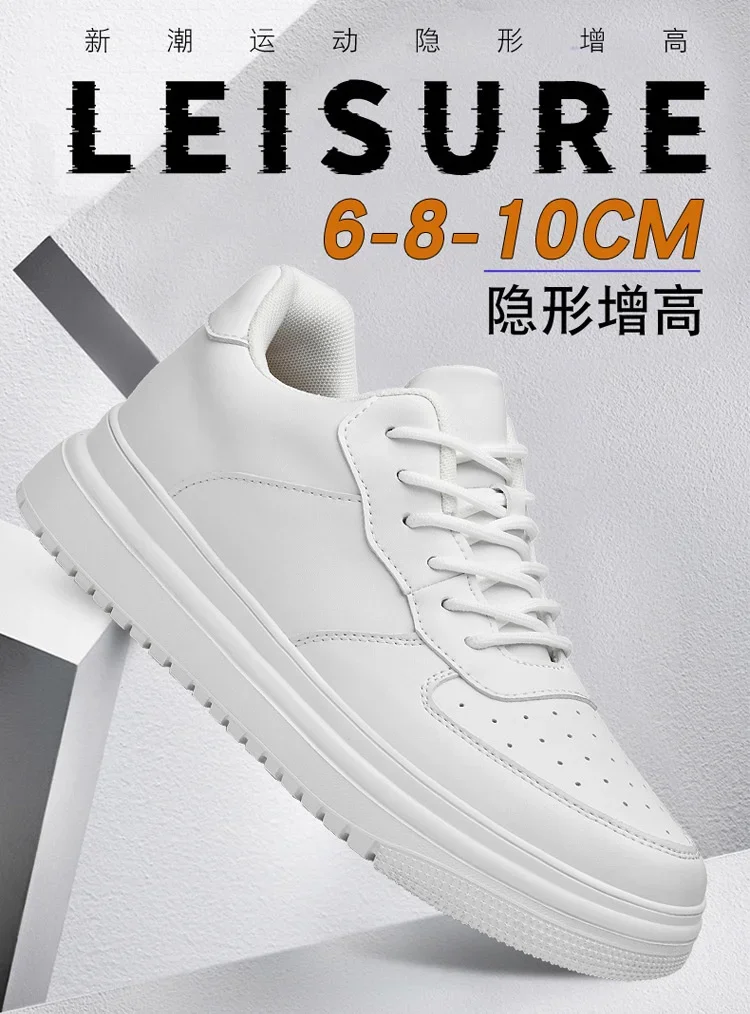 Genuine leather men sneakers elevator shoes man breathable height increasing shoes invisible increase insole 8cm taller lift