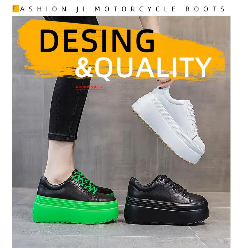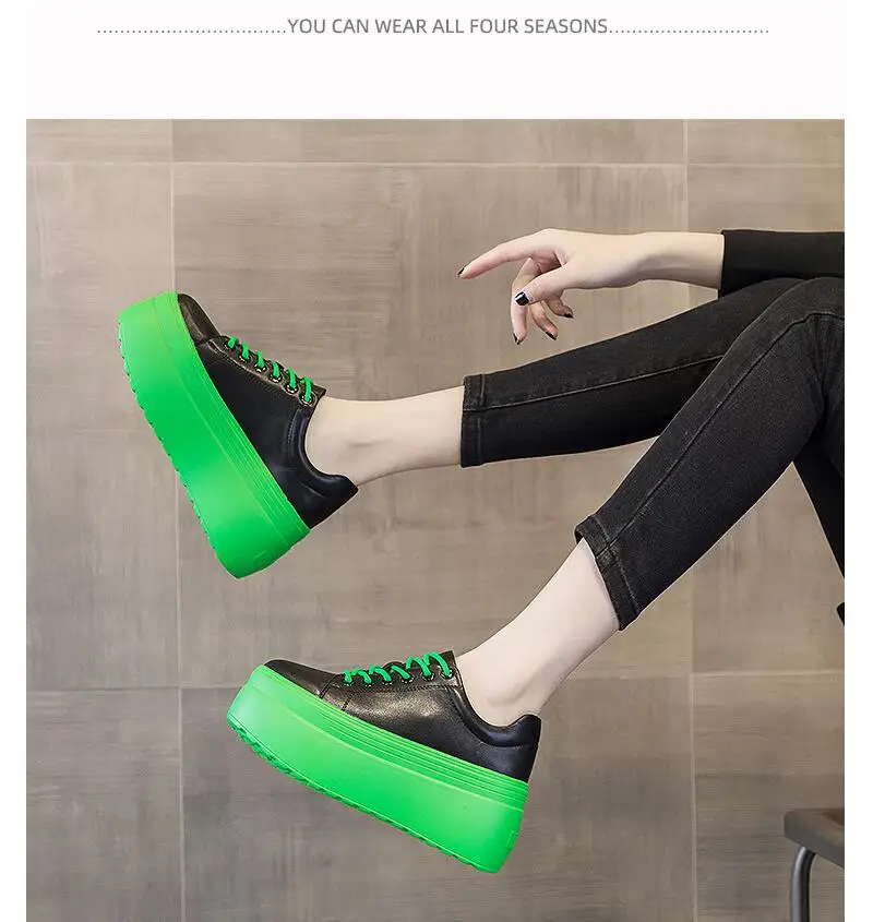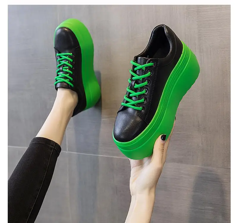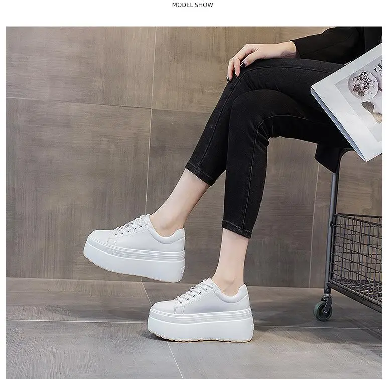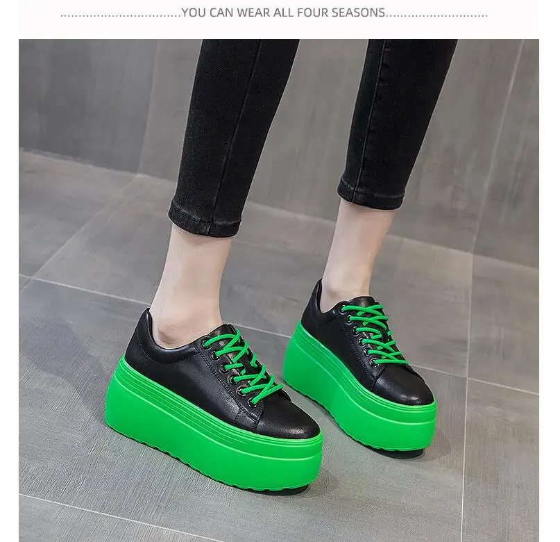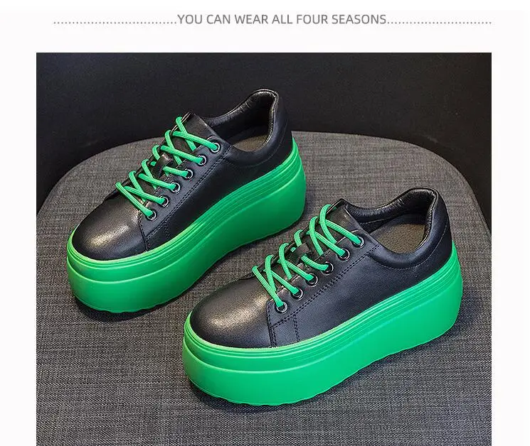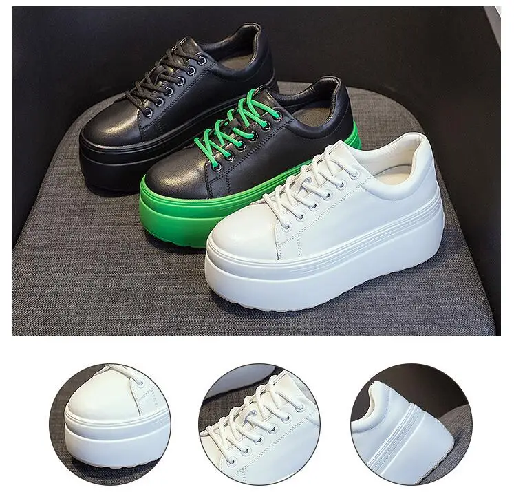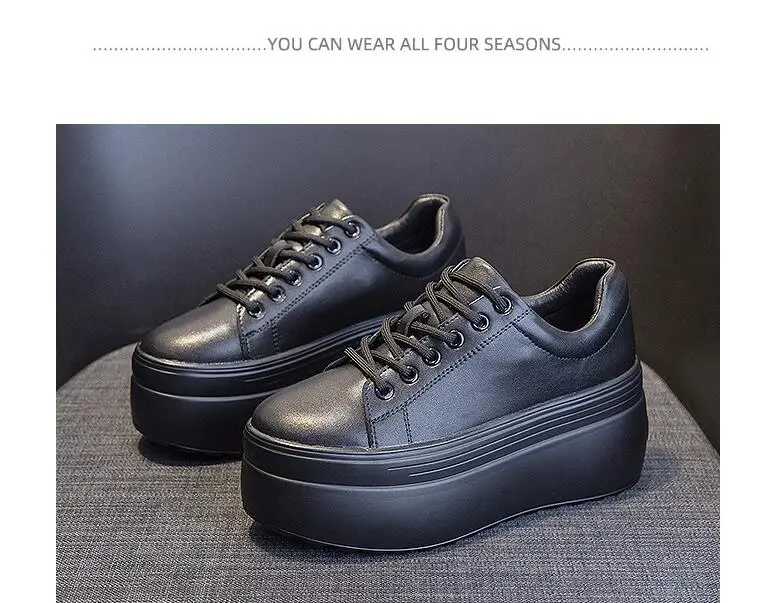 Genuine Leather Women Casual Shoes 8cm Platform Wedge Vulcanized Female Women Fashion Sneakers Chunky Spring Autumn Shoes Summer