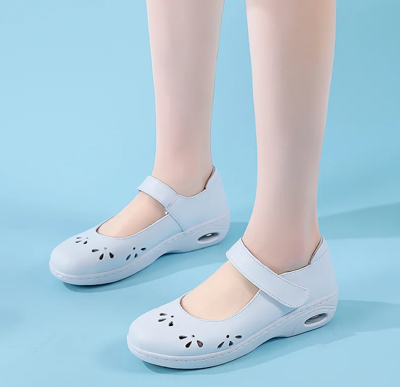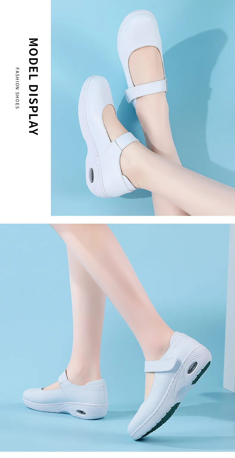 Genuine Leather Women Flats Shoes Slip on Moccasins Women Loafers Health Work Walking Soft Non Slip Hospital Nurse Shoes