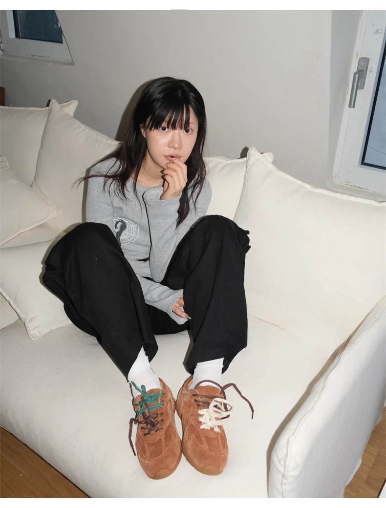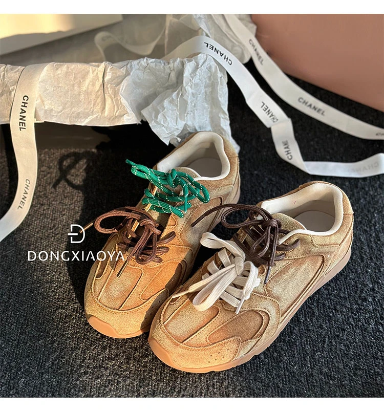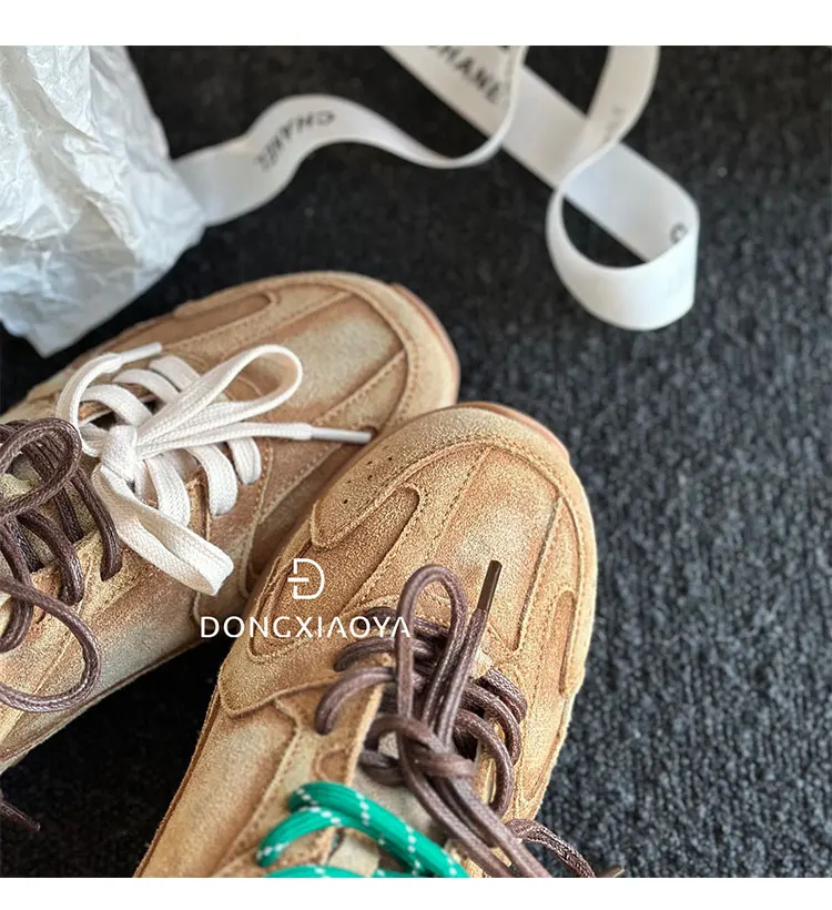 Genuine leather women's sneakers retro hit color German training shoes 2024 spring and autumn new flat casual shoes women