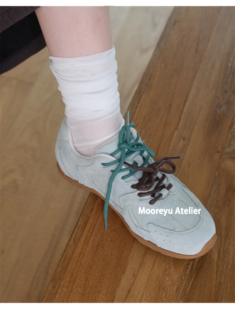 Genuine leather women's sneakers retro hit color German training shoes 2024 spring and autumn new flat casual shoes women
