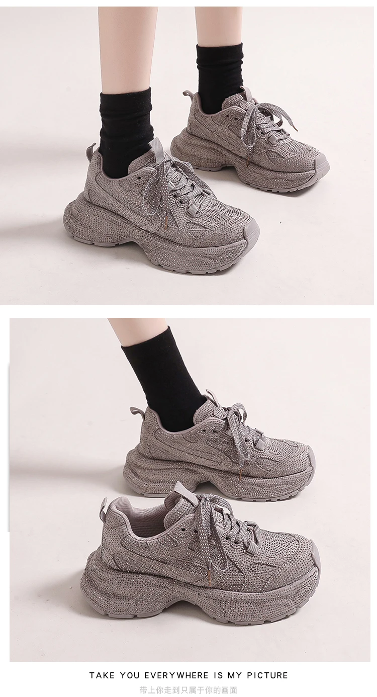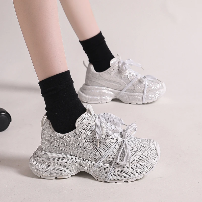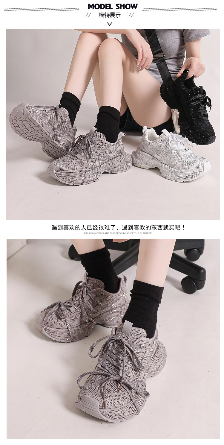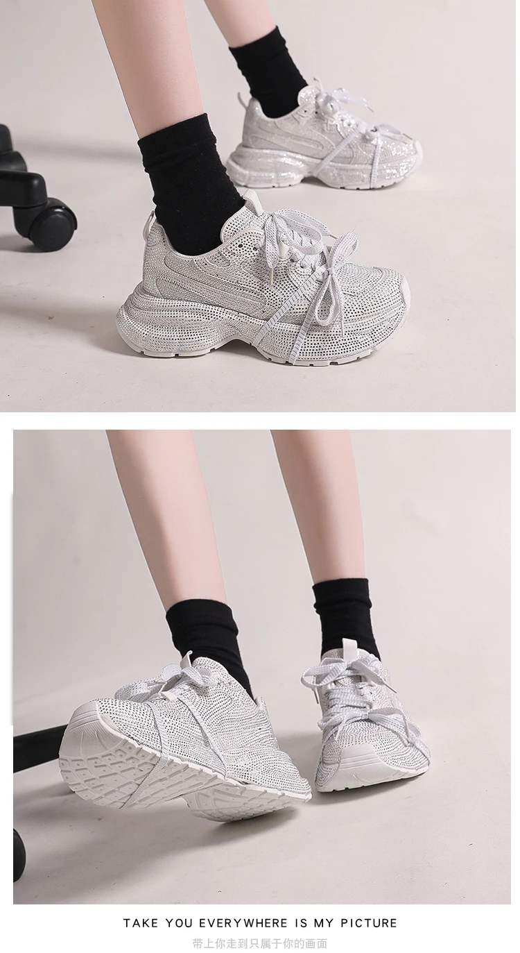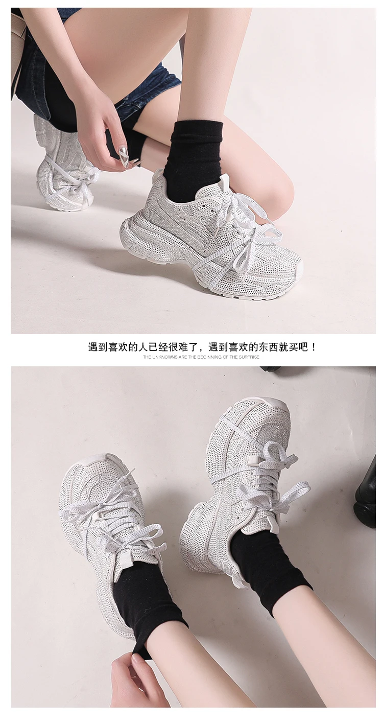 High Appearance Level Thick Sole Full Diamond Fashion All Comfortable Non-slip Breathable Sports Wear-resistant Women's Shoes