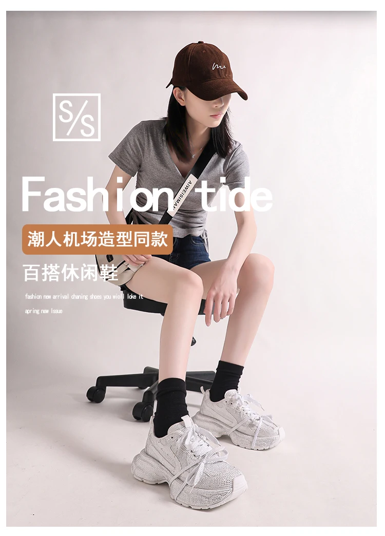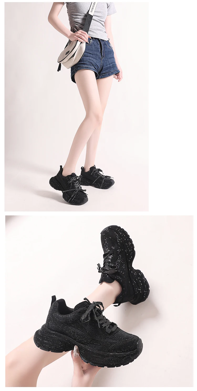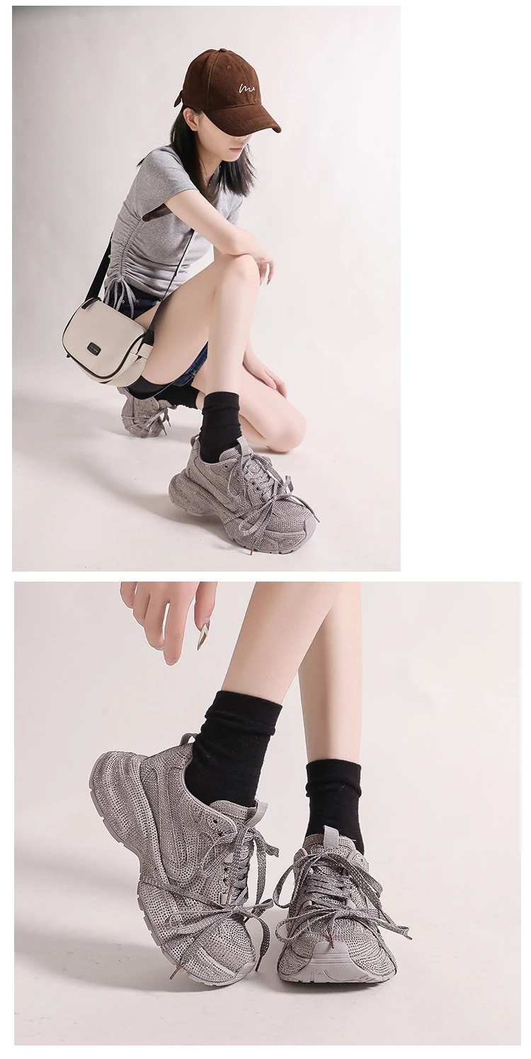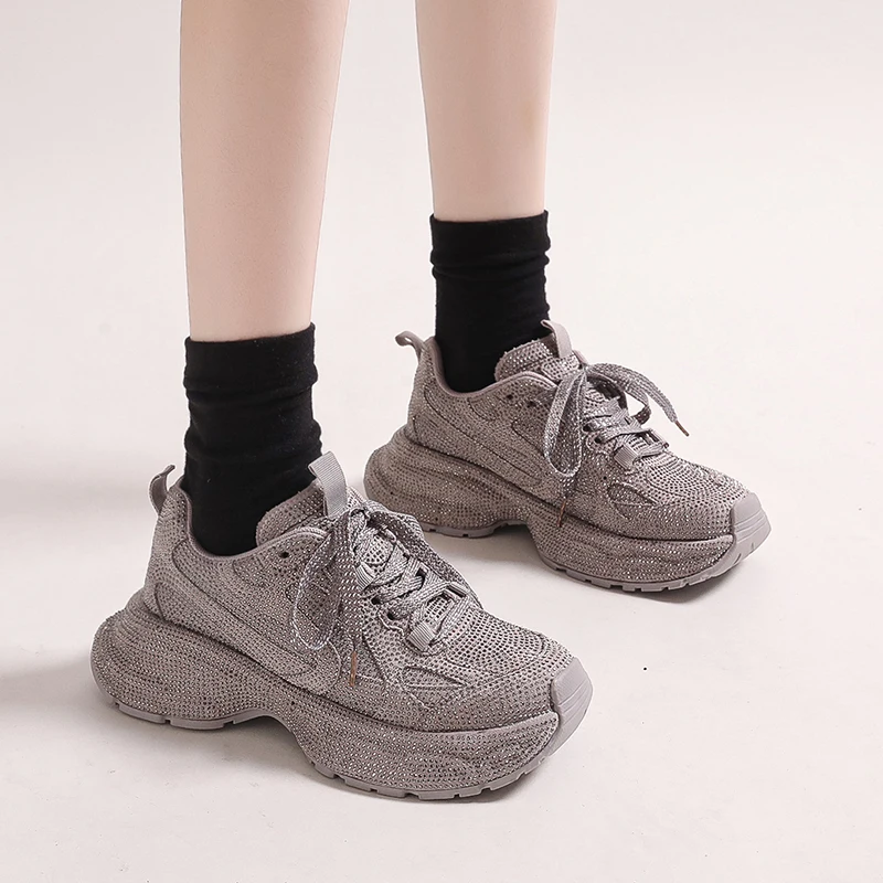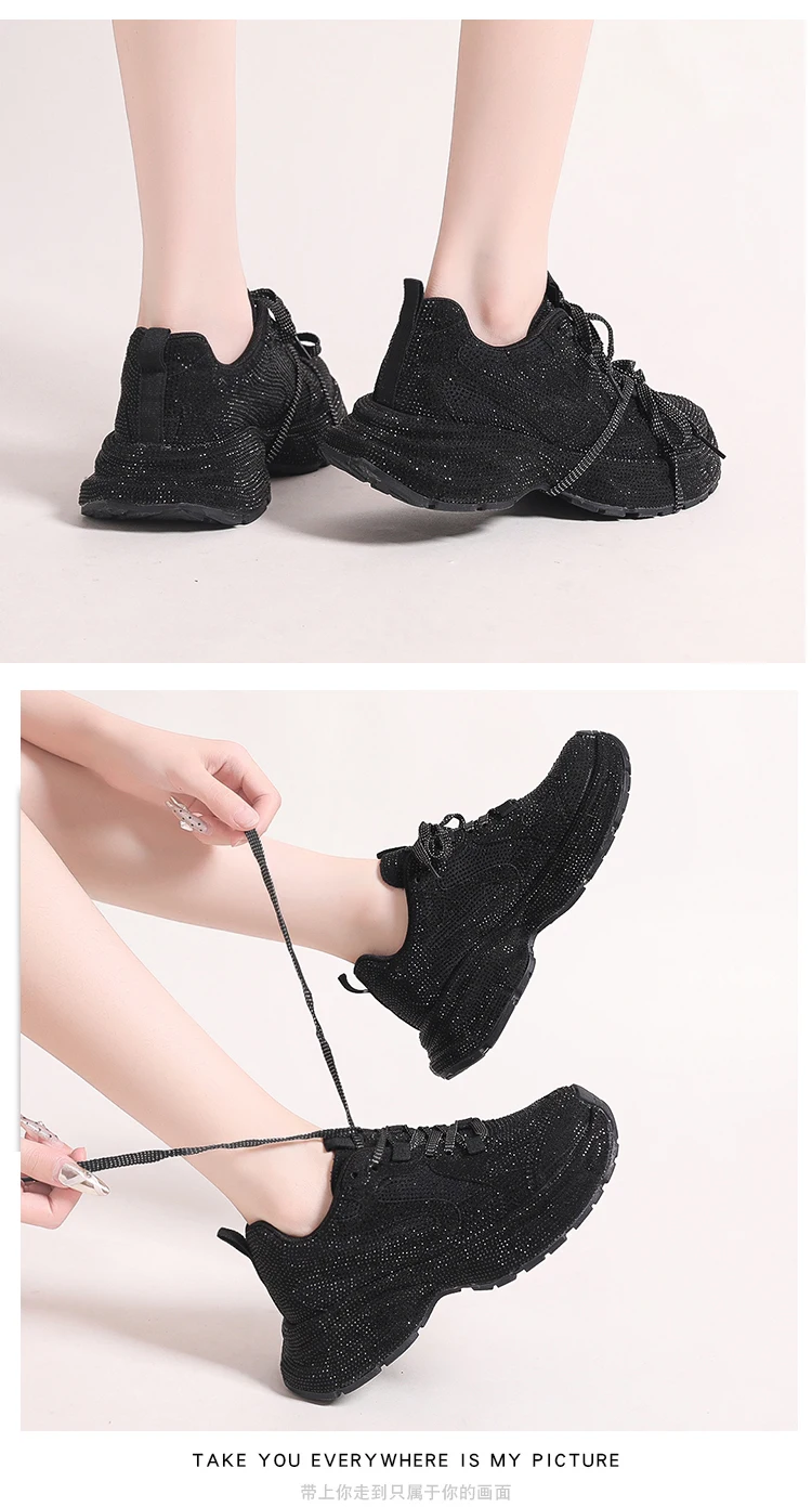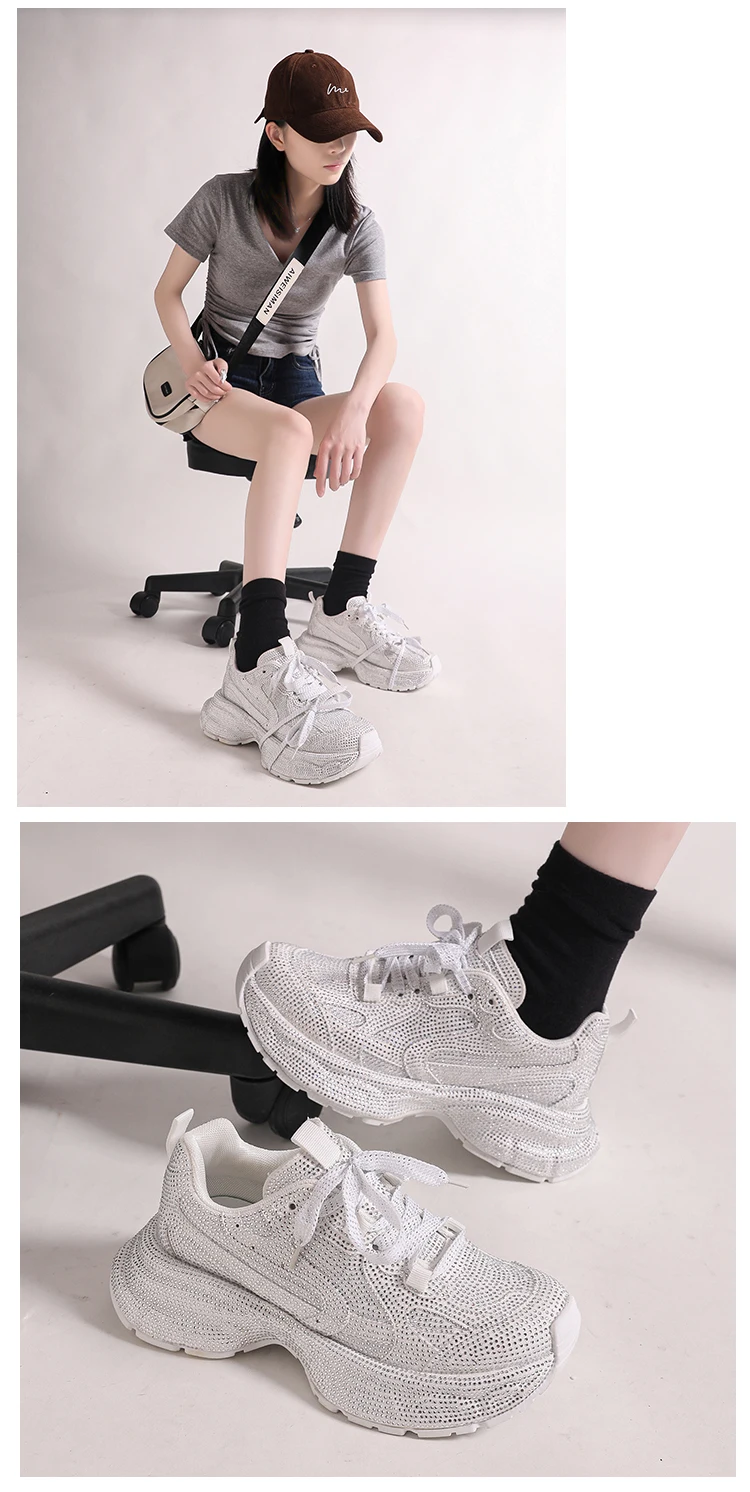 High Appearance Level Thick Sole Full Diamond Fashion All Comfortable Non-slip Breathable Sports Wear-resistant Women's Shoes