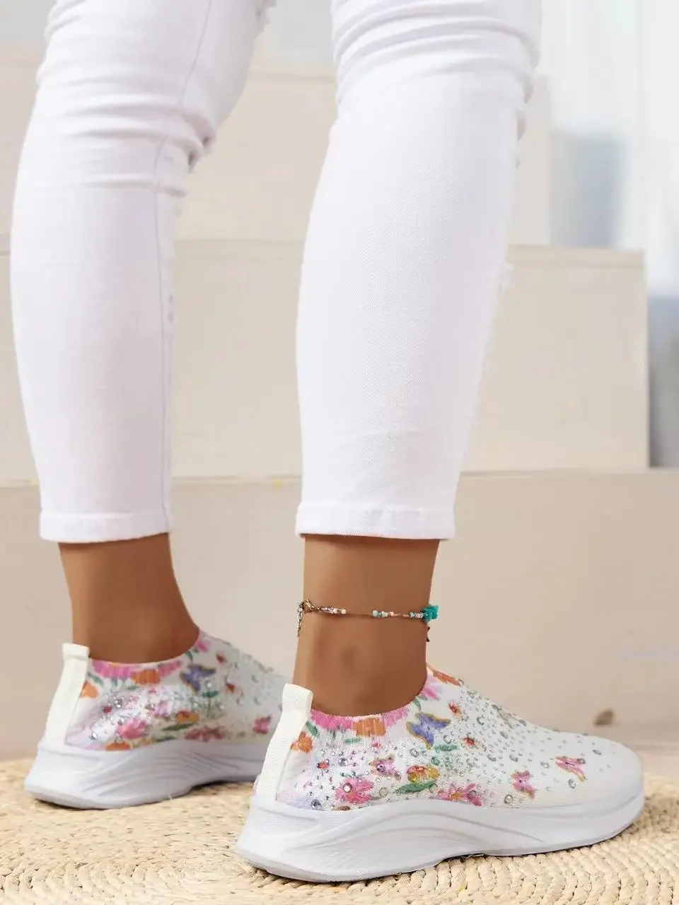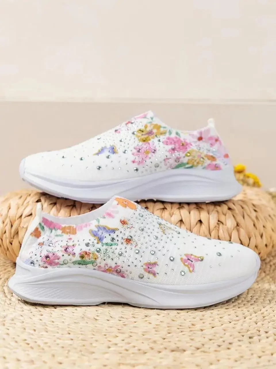 High Quality Plus Size 43 Women Shoes Comfort Breathable Casual Sneakers Women Fashion Rhinestone Flat Shoes for Women 2024