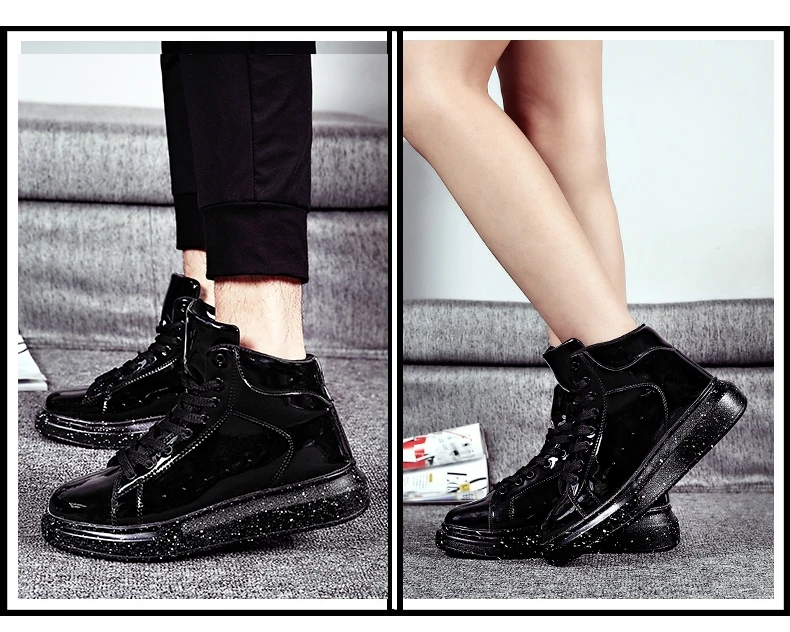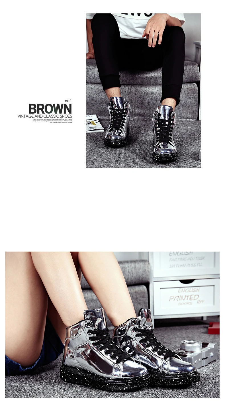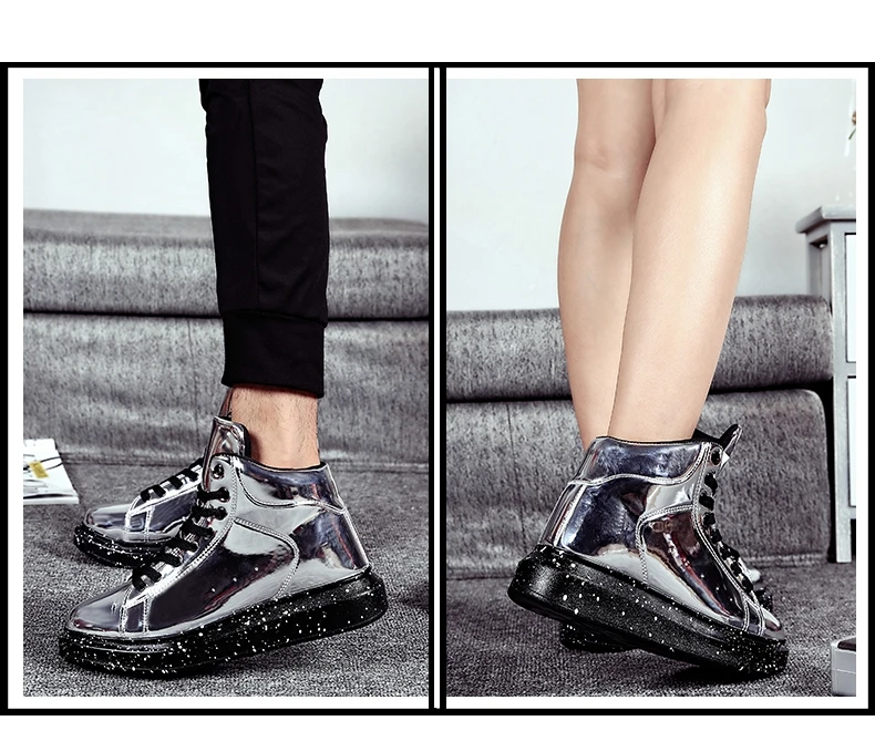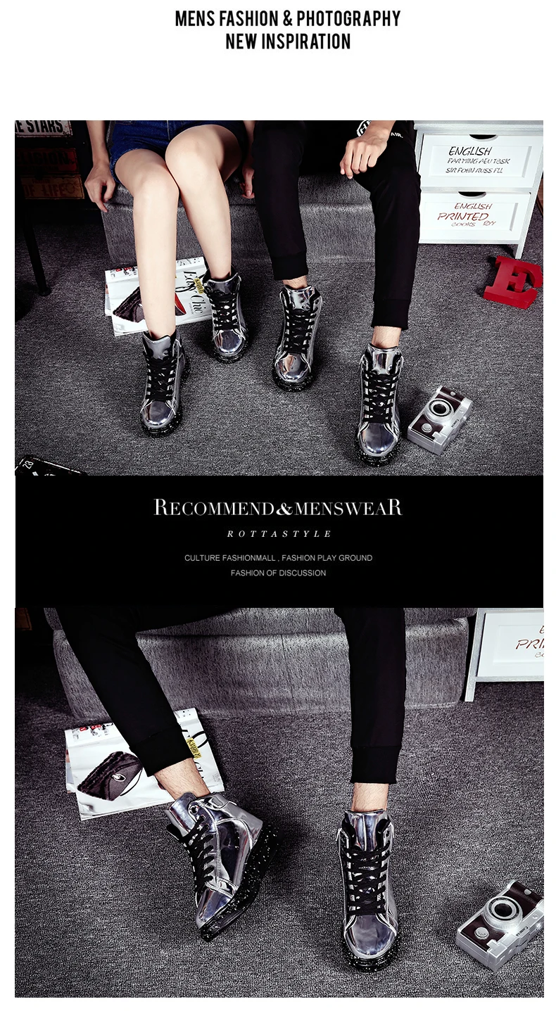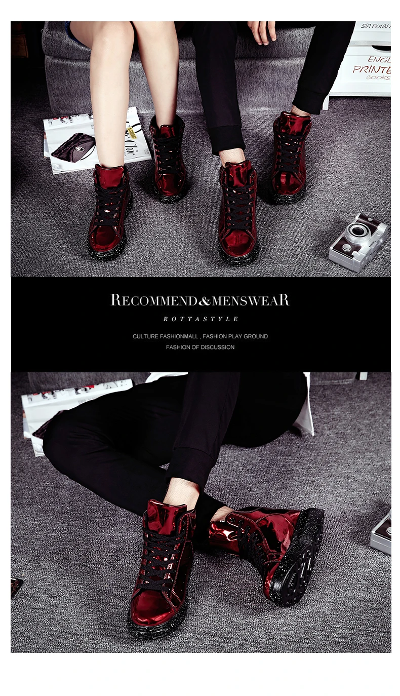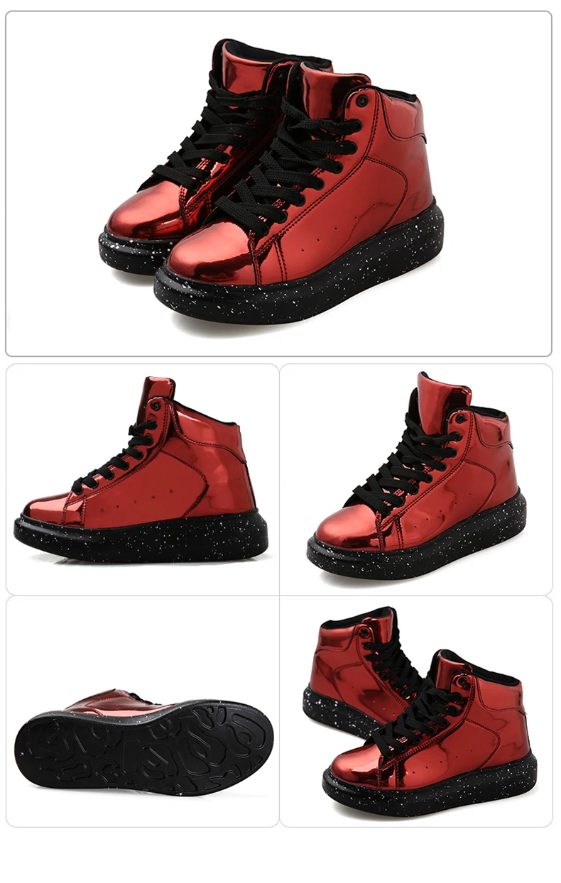 High top Fashion Glitter Casual Man Shoes Hip hop Red Shoes Men Platform Non slip Sneakers Men Couple Shoes zapatillas hombre