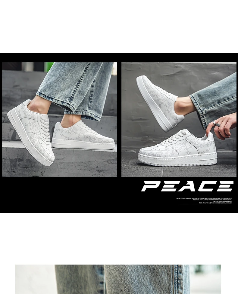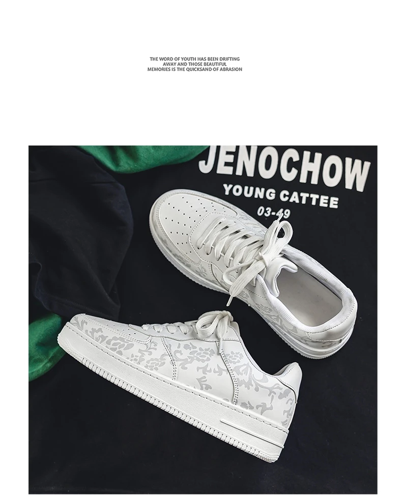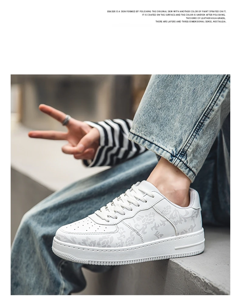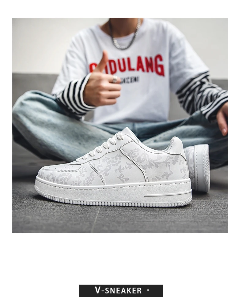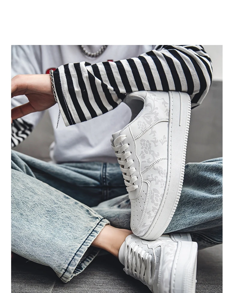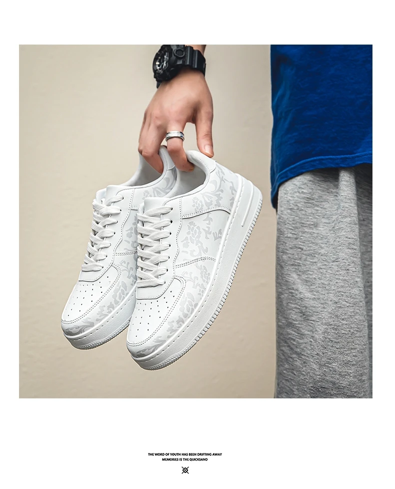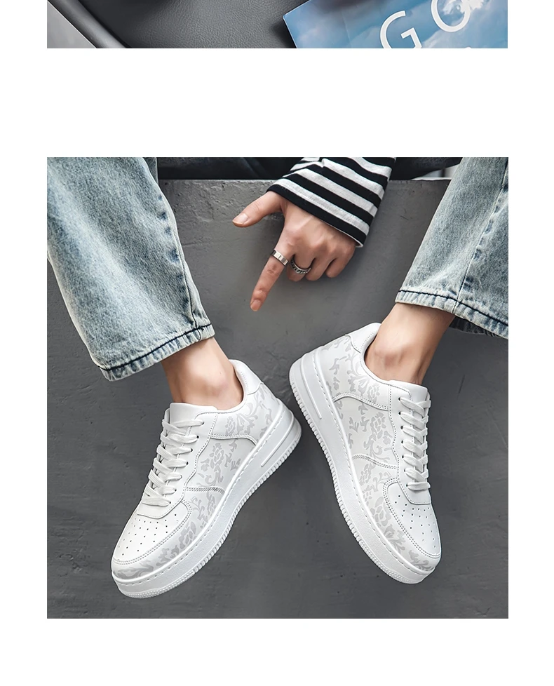 HKDQ Fashion Print Blue Men's Skateboard Shoes Leather Breathable Man Casual Sneakers Platform Non-slip Men Skateboarding Shoes