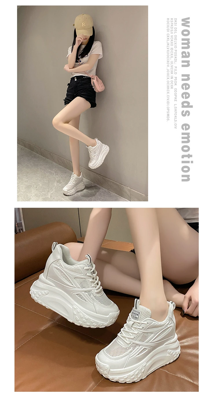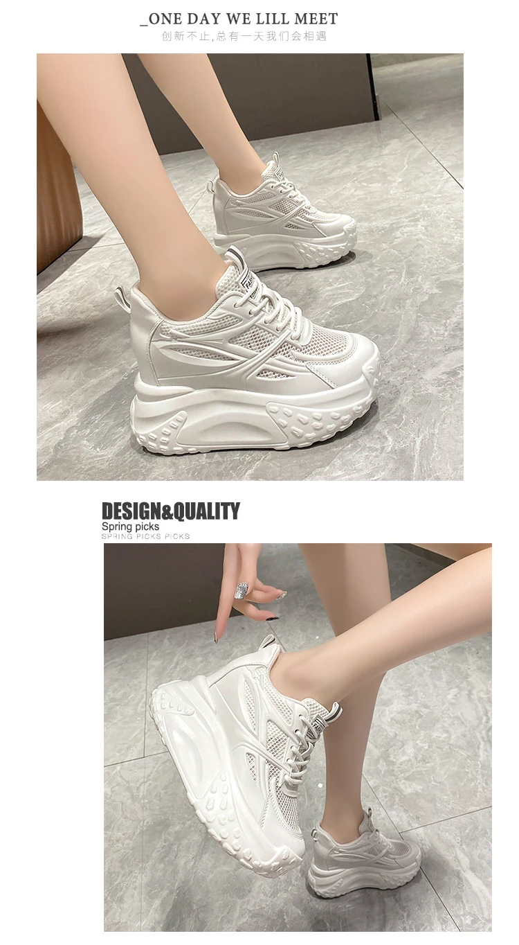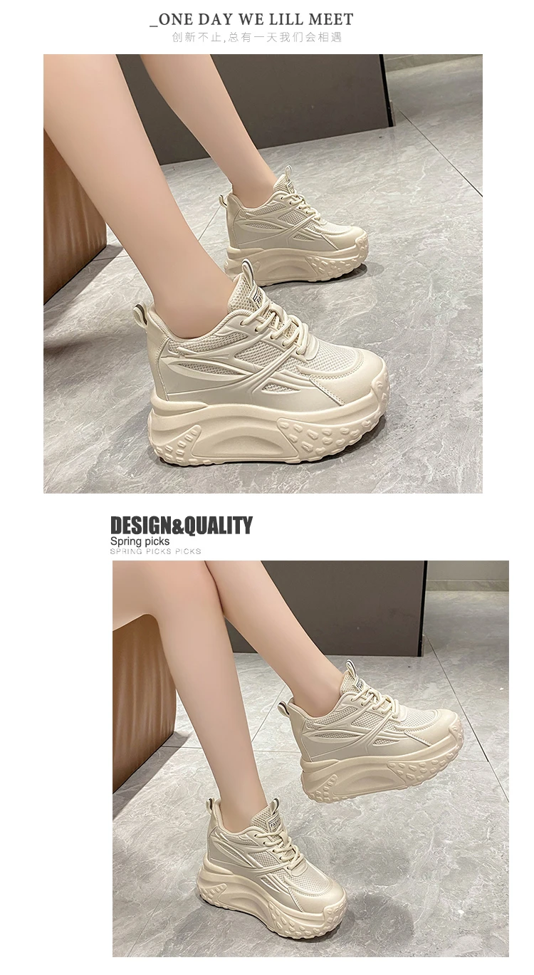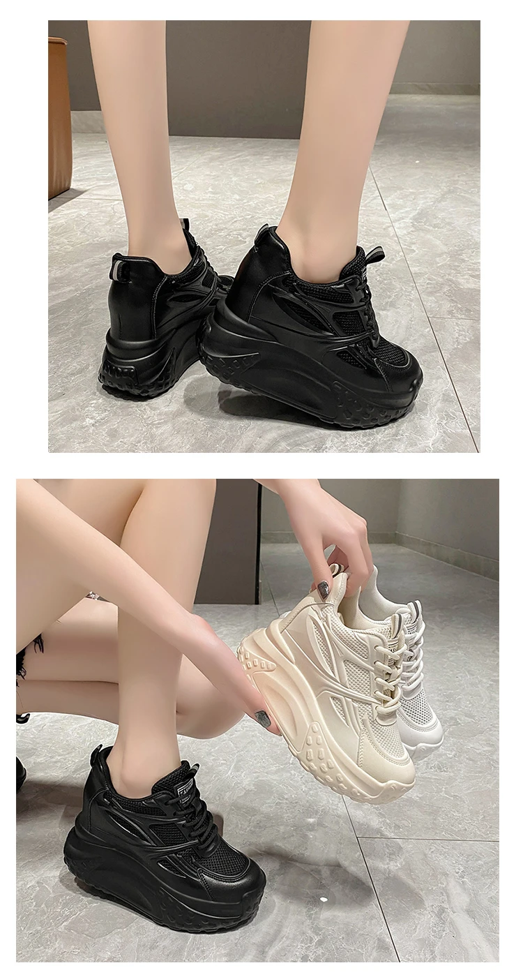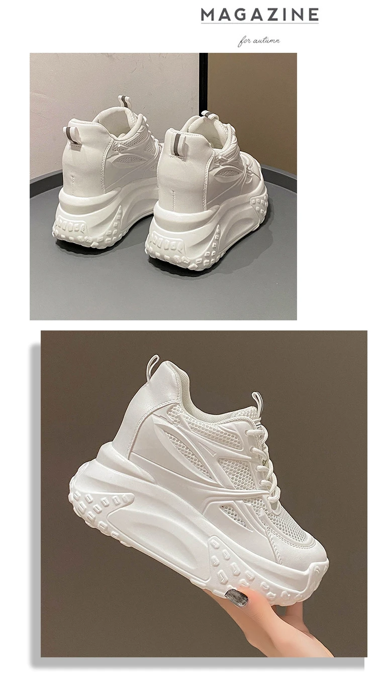Hollow High Heels 10cm Sneakers Chunky Casual Autumn Spring Platform Wedge High Fashion Breathable Women Summer Shoes